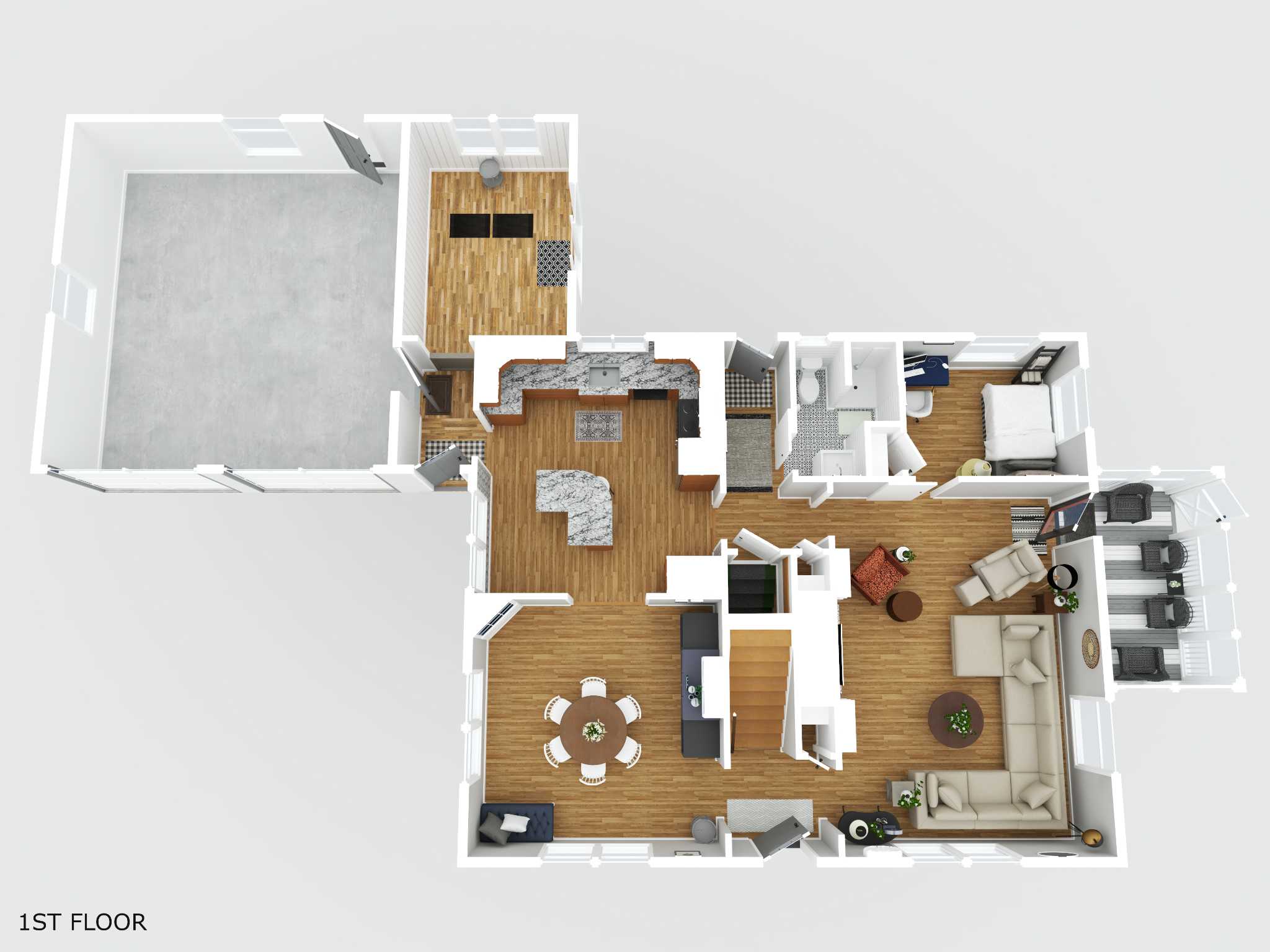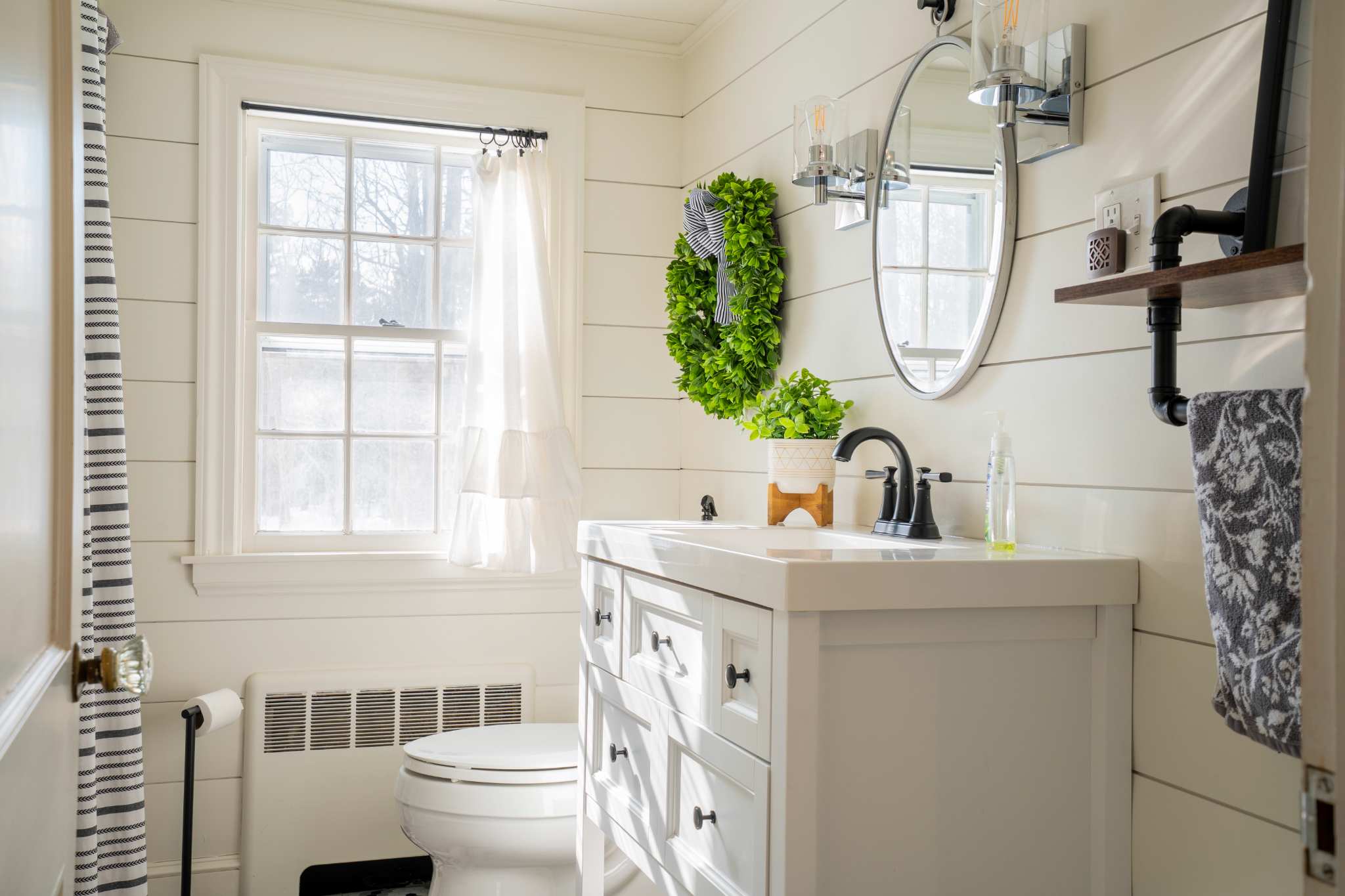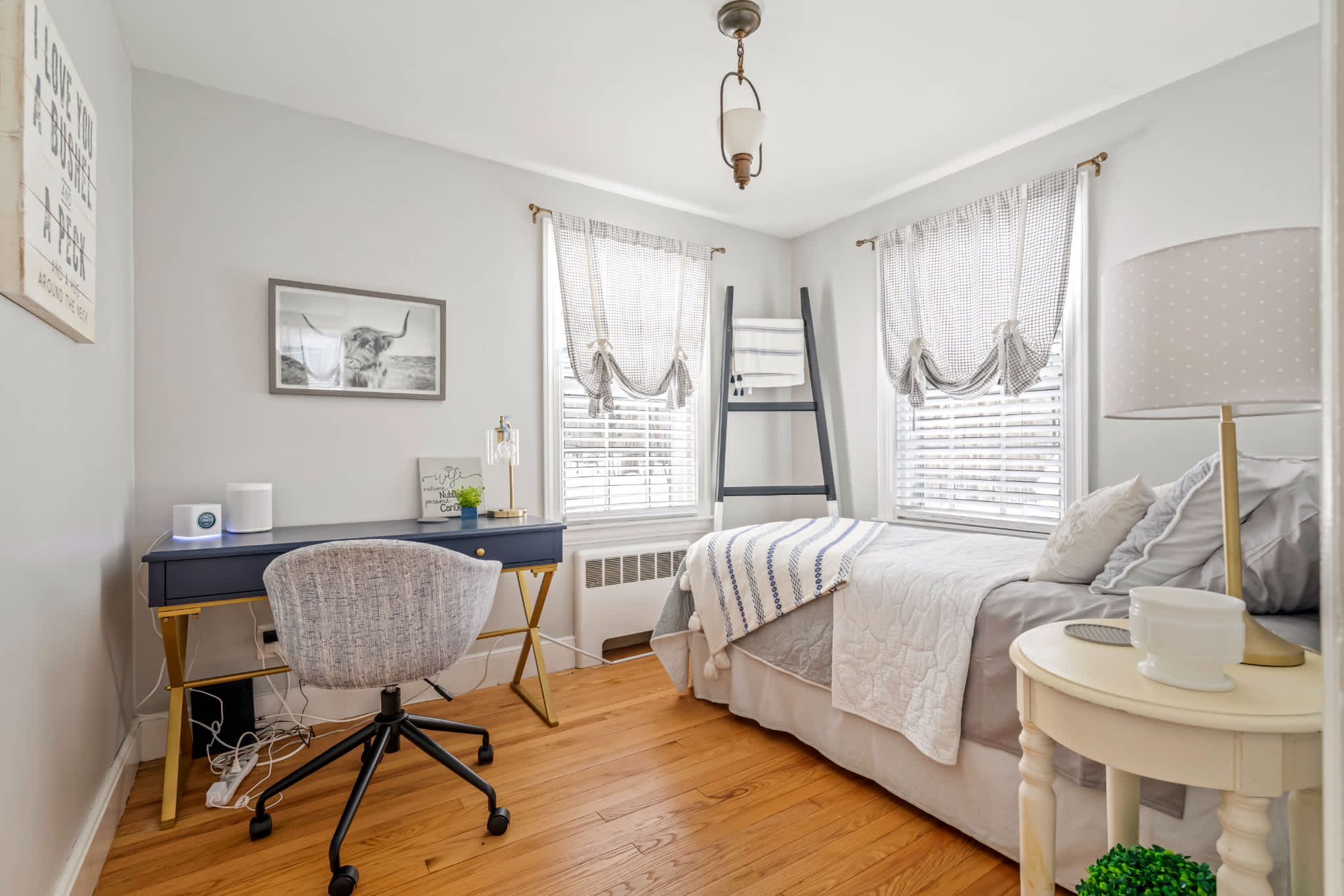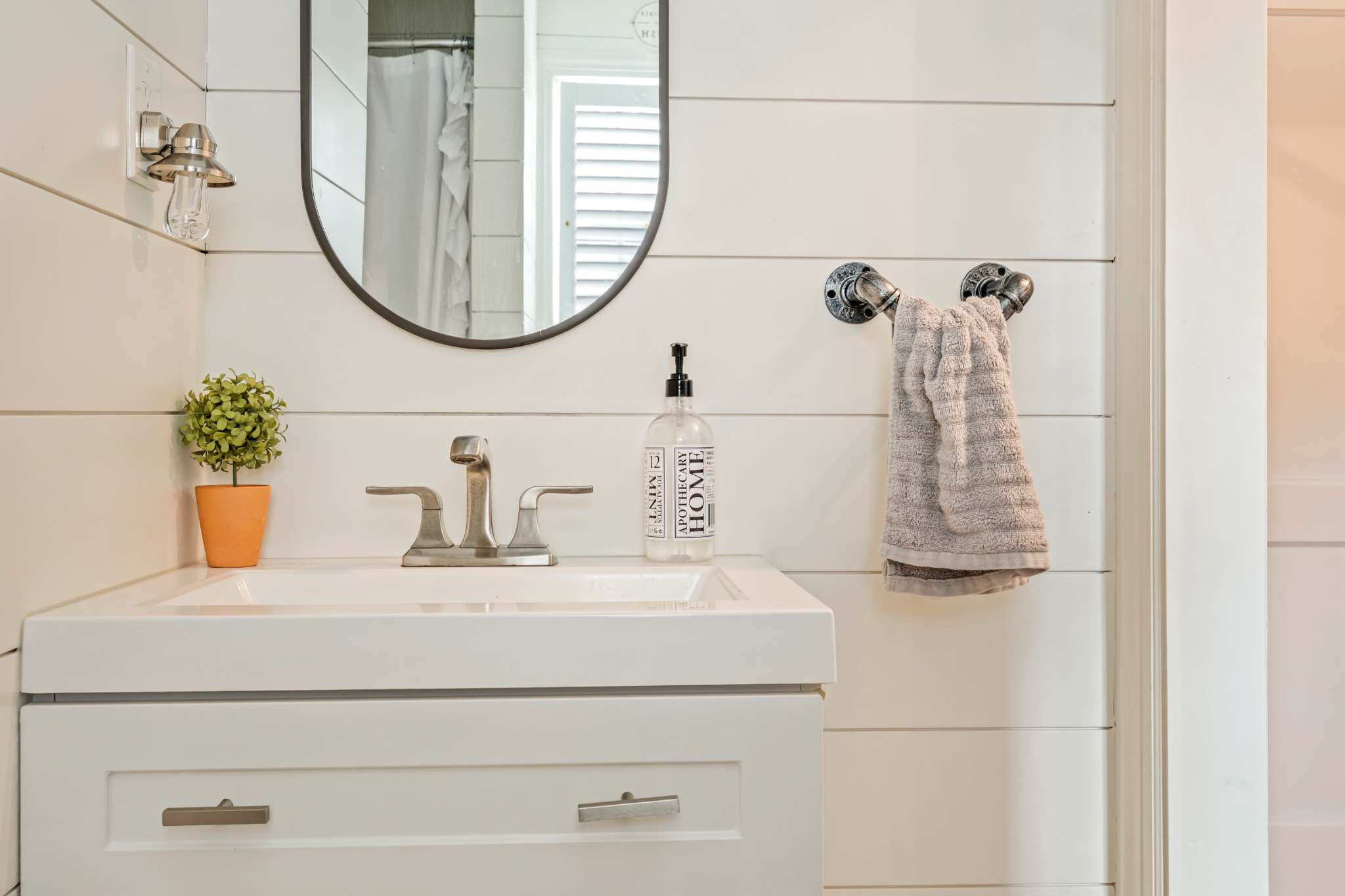 This home also includes 2 guest bathrooms, one with a single vanity and a shower/tub combo, another with a single vanity and a walk-in shower.