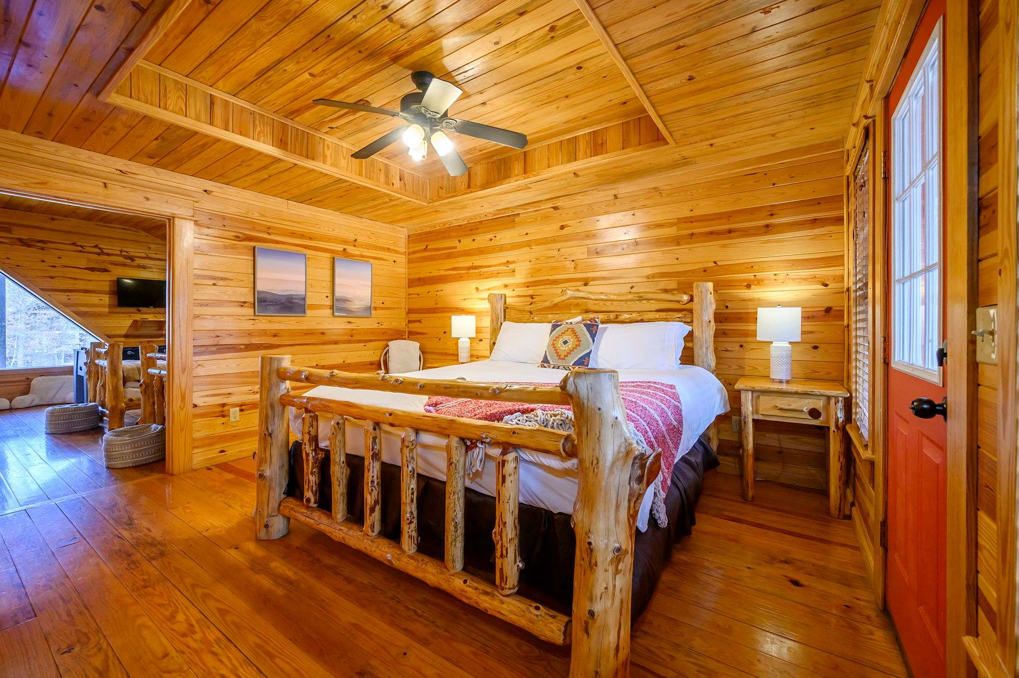 This home comfortably sleeps 6 guests between 2 private bedrooms and 2 twin size beds in the loft. The loft is only accessible through the upstairs bedroom.