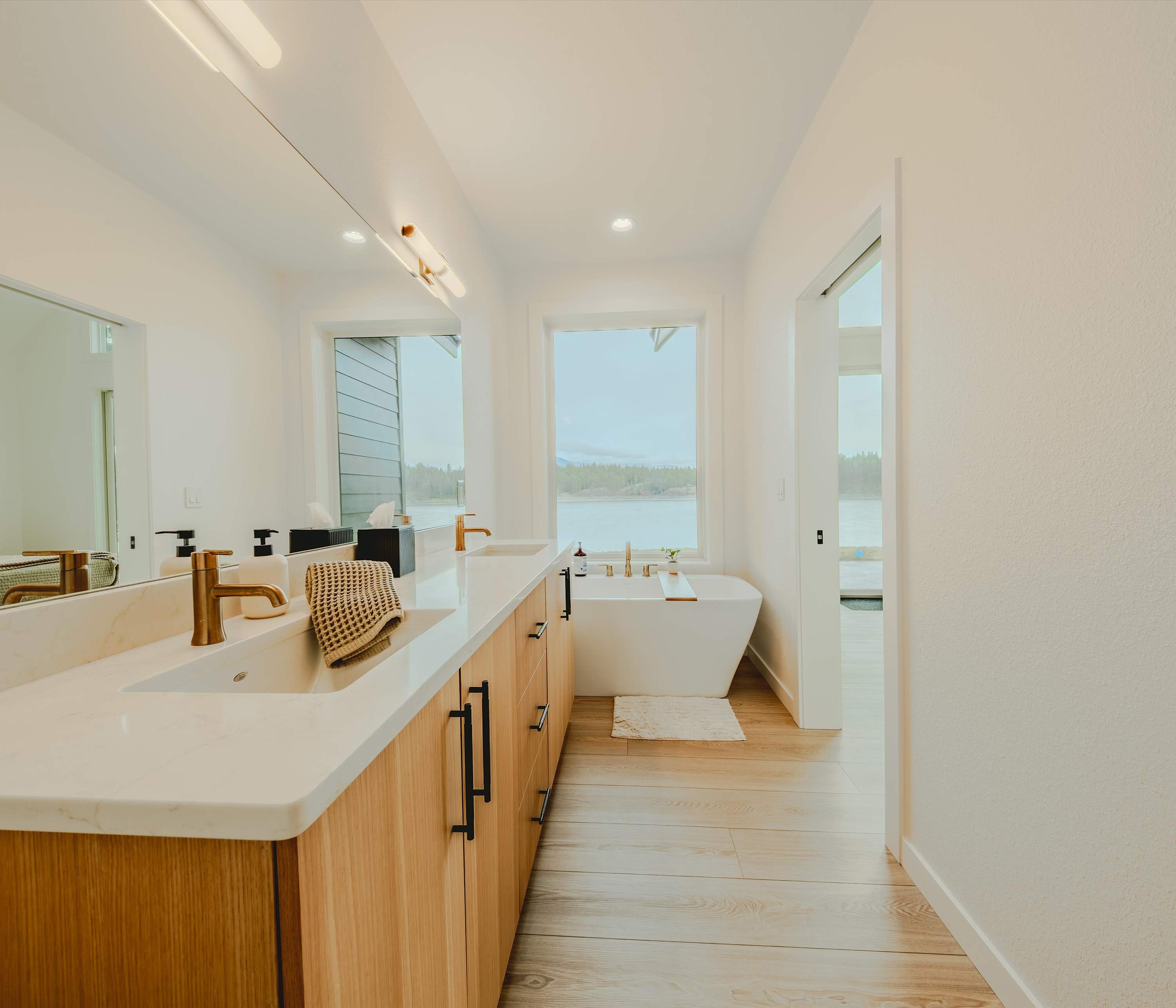 Bedroom #1 includes a king size bed and an ensuite bathroom with a dual vanity, a soaking tub, and a walk-in shower.