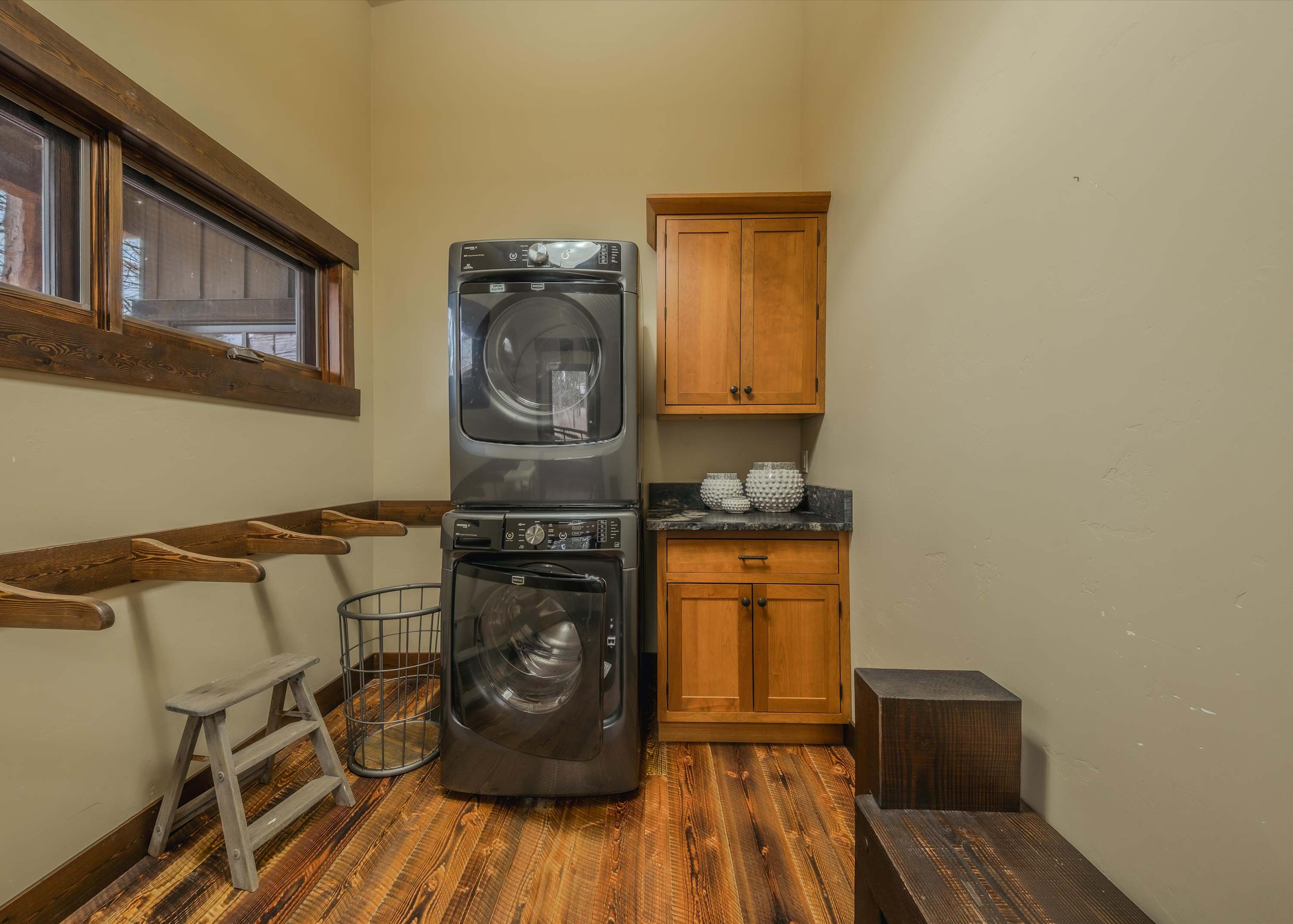 · Washer and dryer in home.