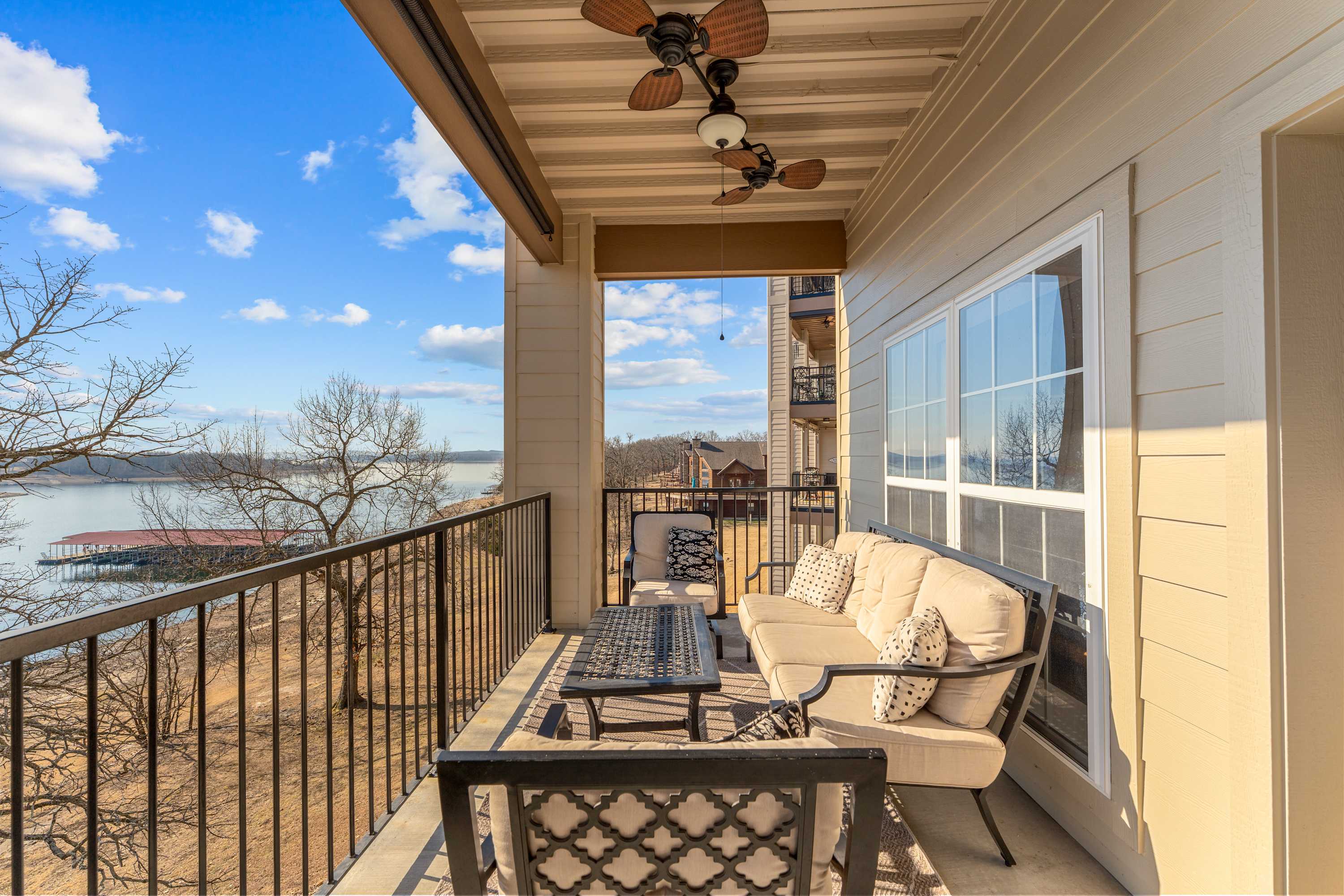 Step outside onto the private balcony and take in those beautiful lake views. Comfortable seating and a table for al fresco dining make it the ideal spot for morning coffee, sunset dinners, or simply soaking in the peaceful surroundings. At The Lakeview Condo, you get the best of lakeside living with resort-style amenities and easy access to everything Branson has to offer—making it the perfect getaway for couples, families, or friends looking to unwind by the water.
