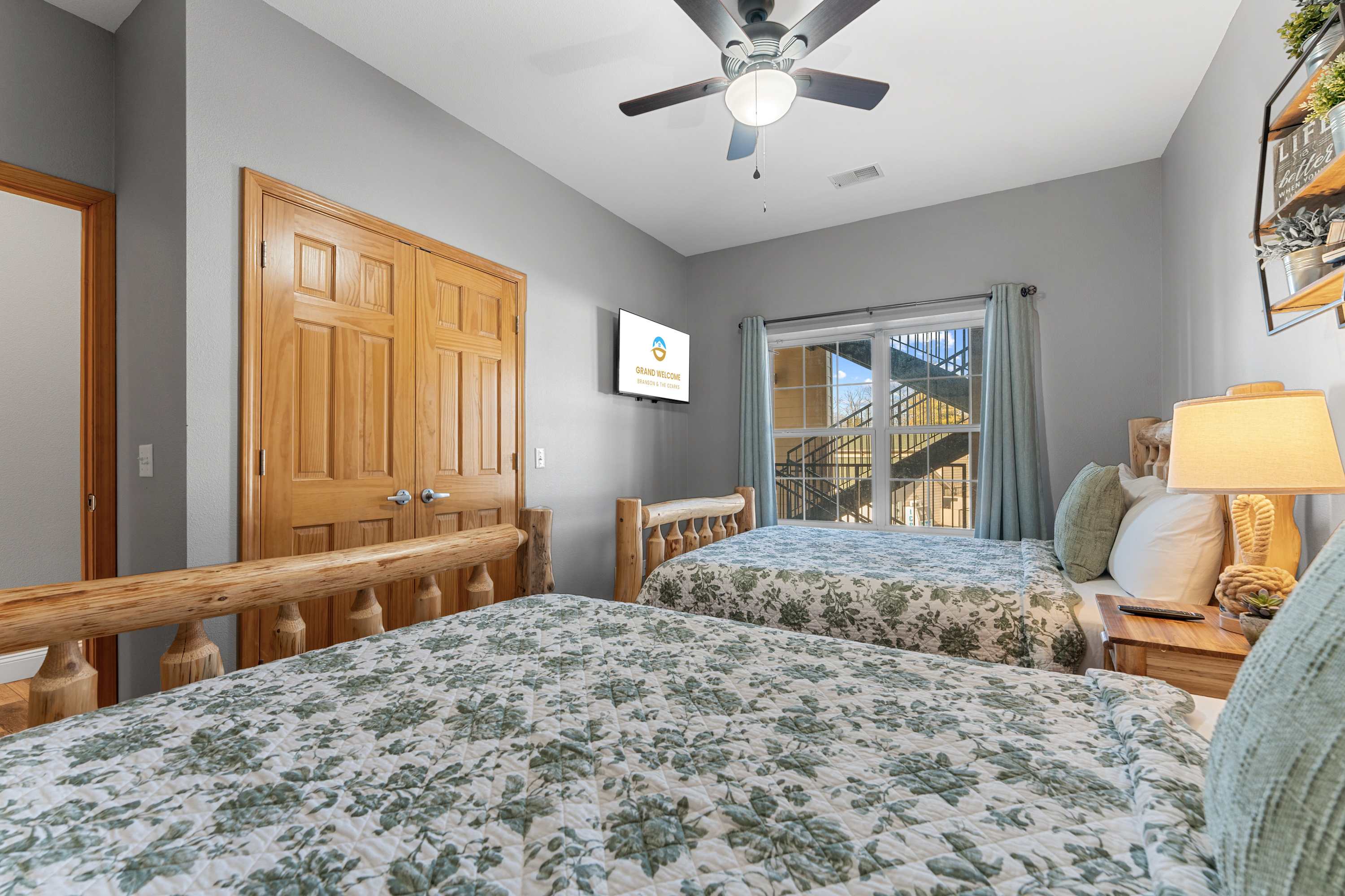 Bedroom #2 includes 2 queen size beds and a smart TV.