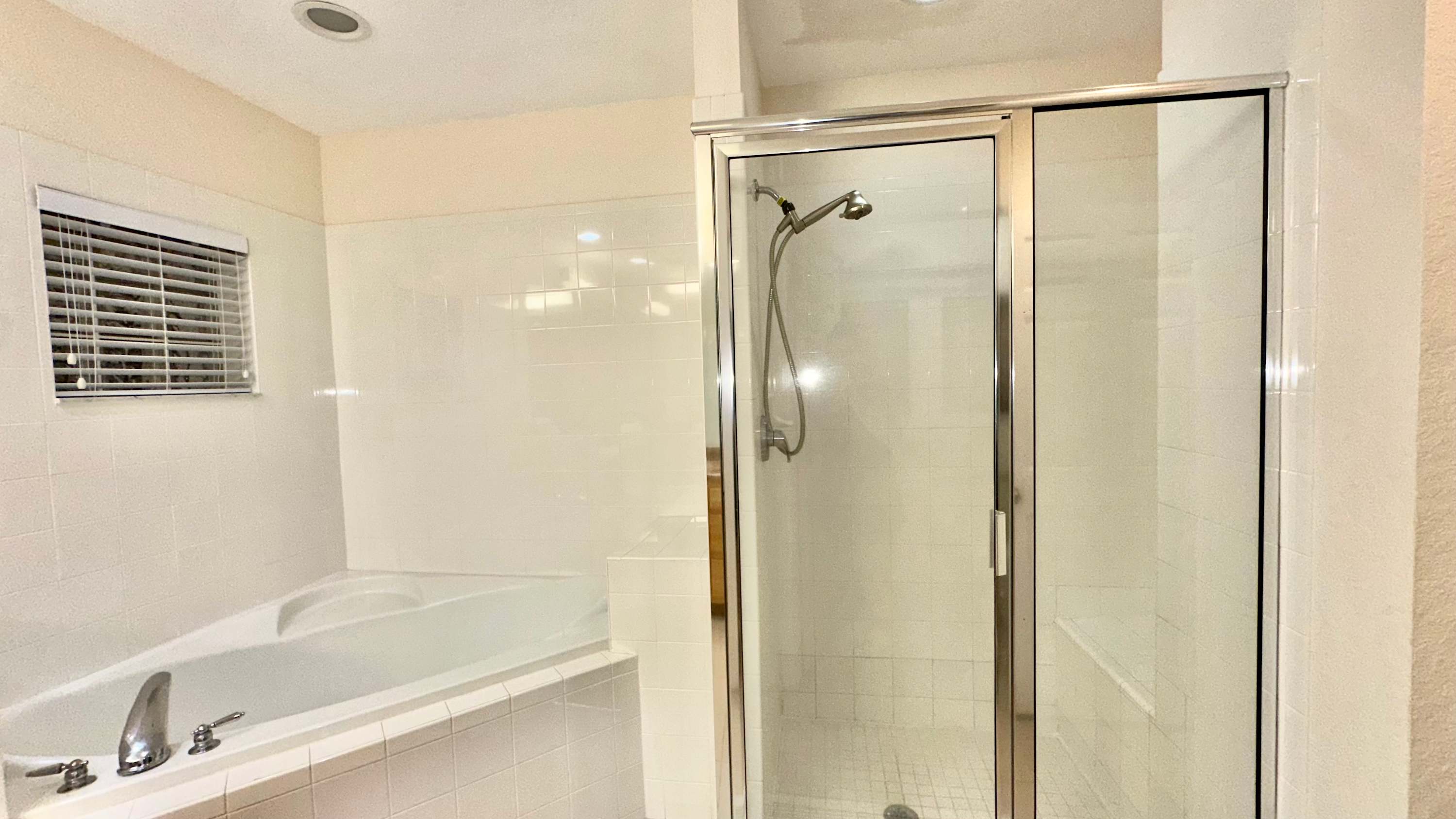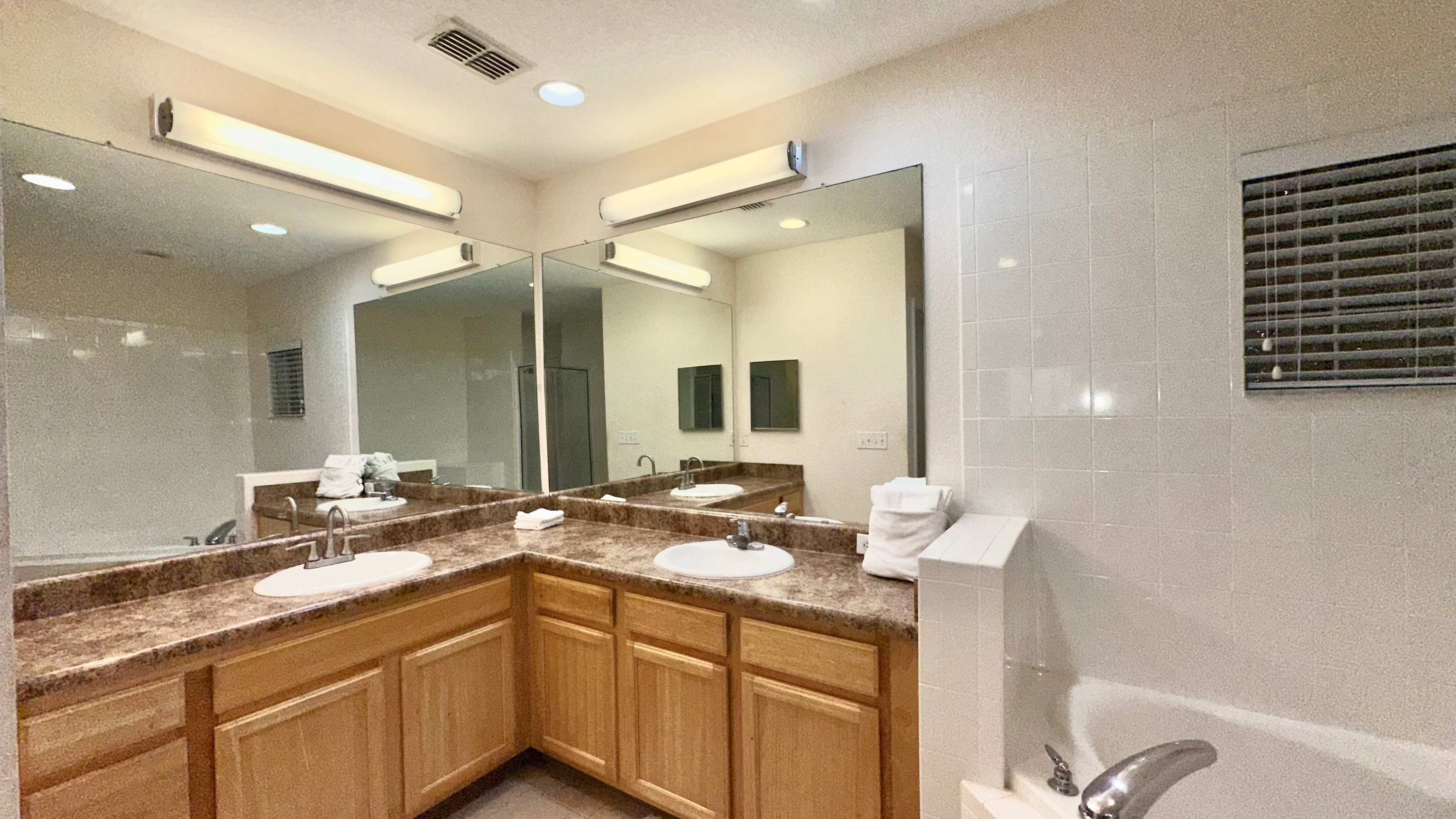This home also includes a full guest bathroom with a single vanity and a shower/tub combo.