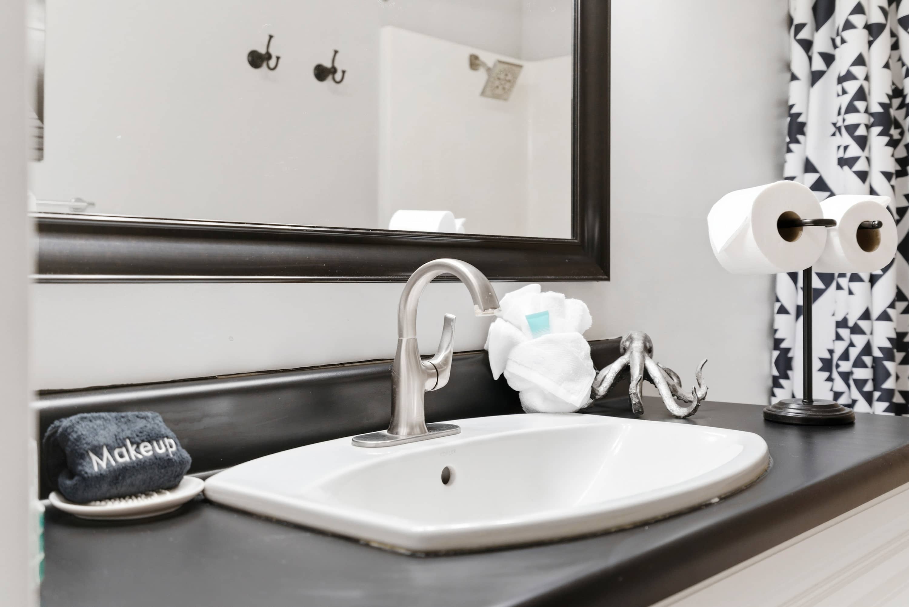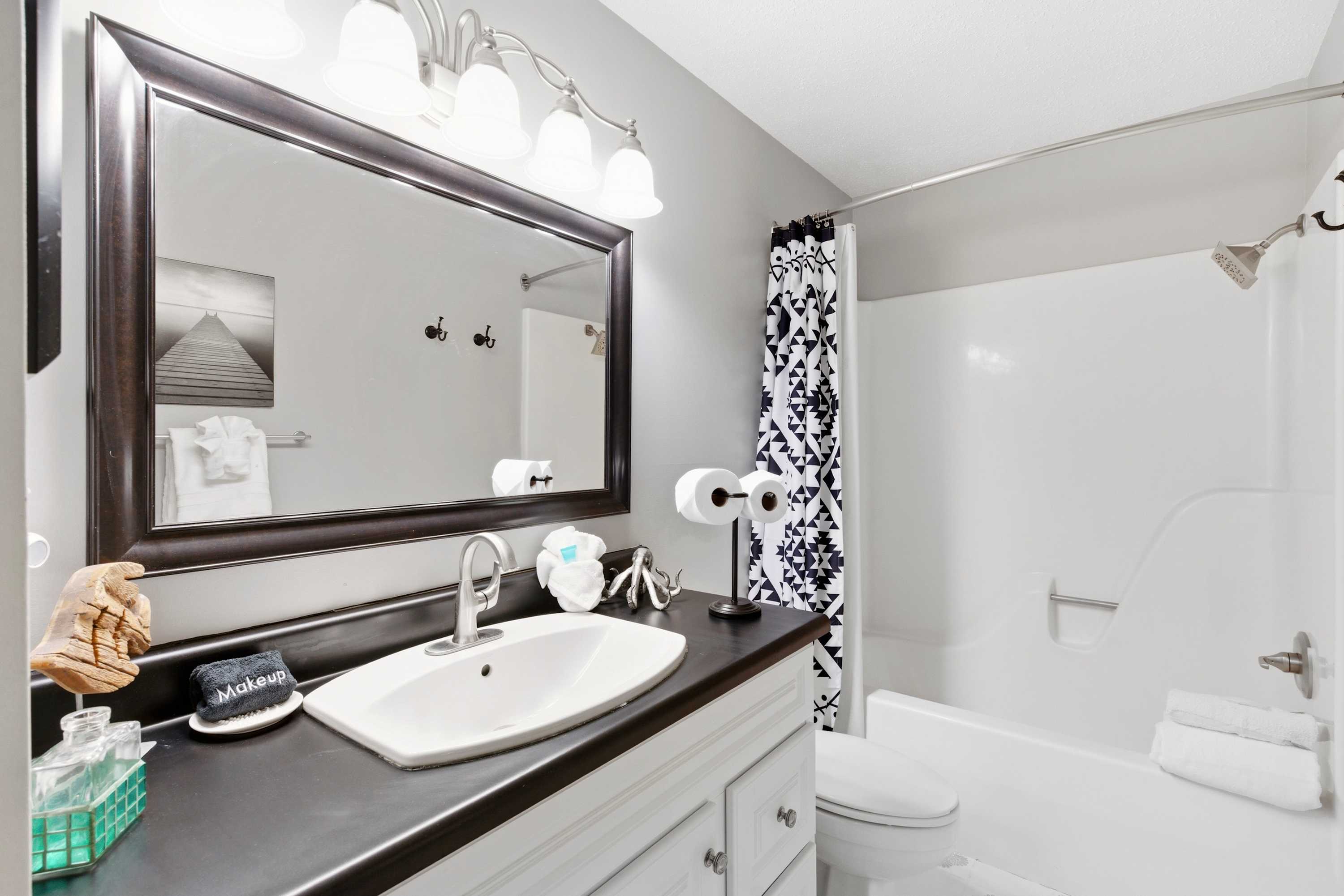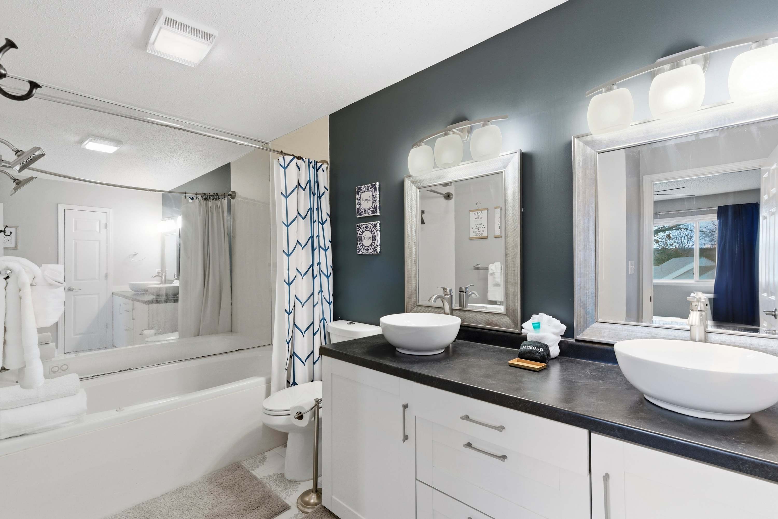 This home also includes an additional full guest bathroom with a single vanity and a shower/tub combo.