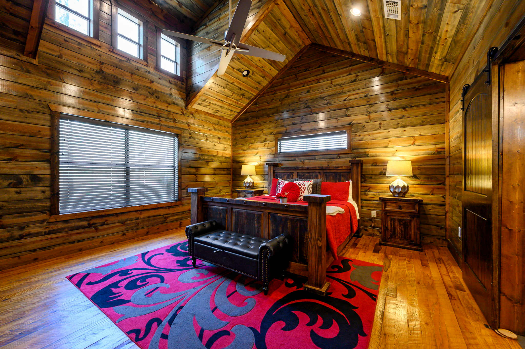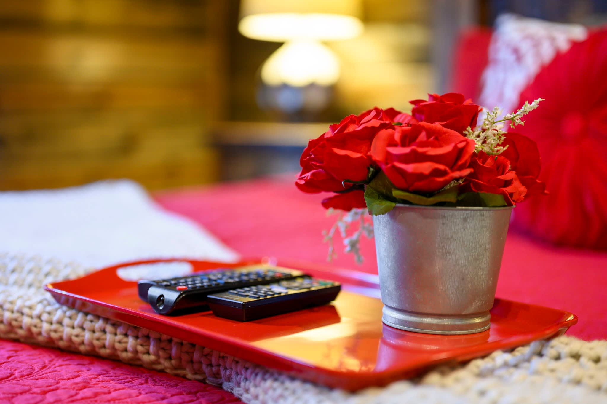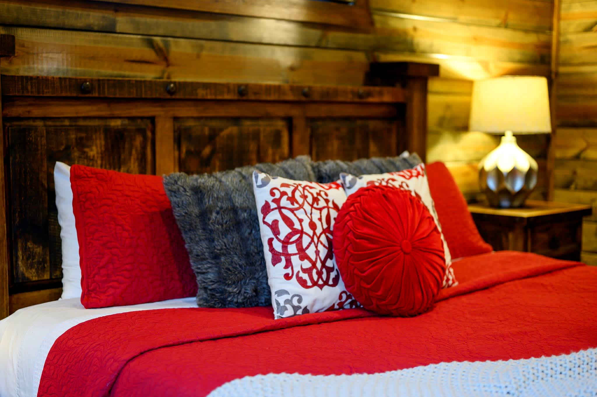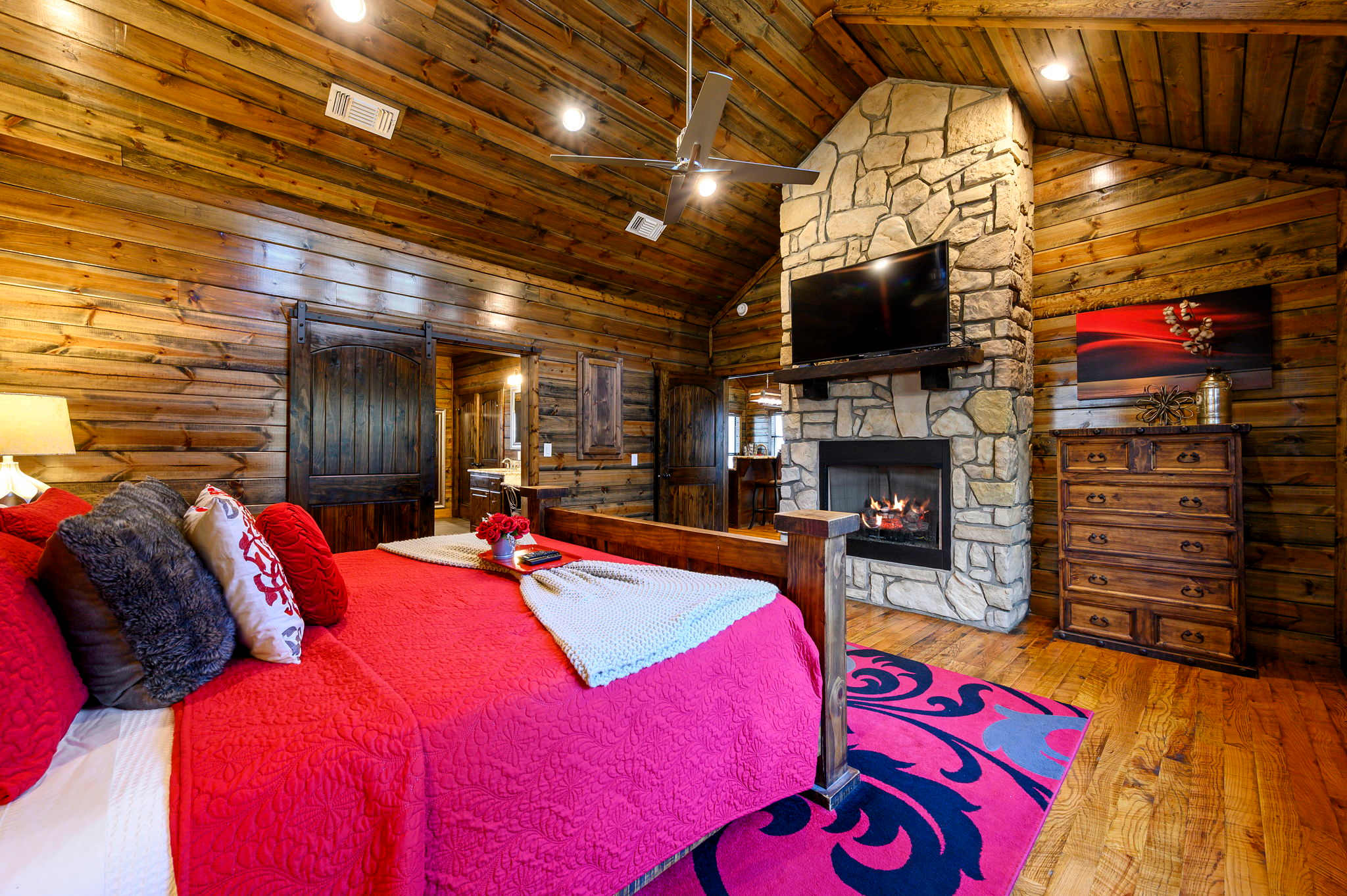 Outside is where this cabin truly steals your heart. A covered deck invites you to unwind in the bubbling hot tub, relax in comfortable seating, or fire up the grill for an easy dinner in the fresh pine-scented air. Down below, a seasonal creek winds through the backyard, creating a peaceful soundtrack for evenings spent around the fire pit. Whether you’re reconnecting, celebrating, or simply escaping the everyday, Pond Lily Creek offers the romance, comfort, and charm you’ve been dreaming of.