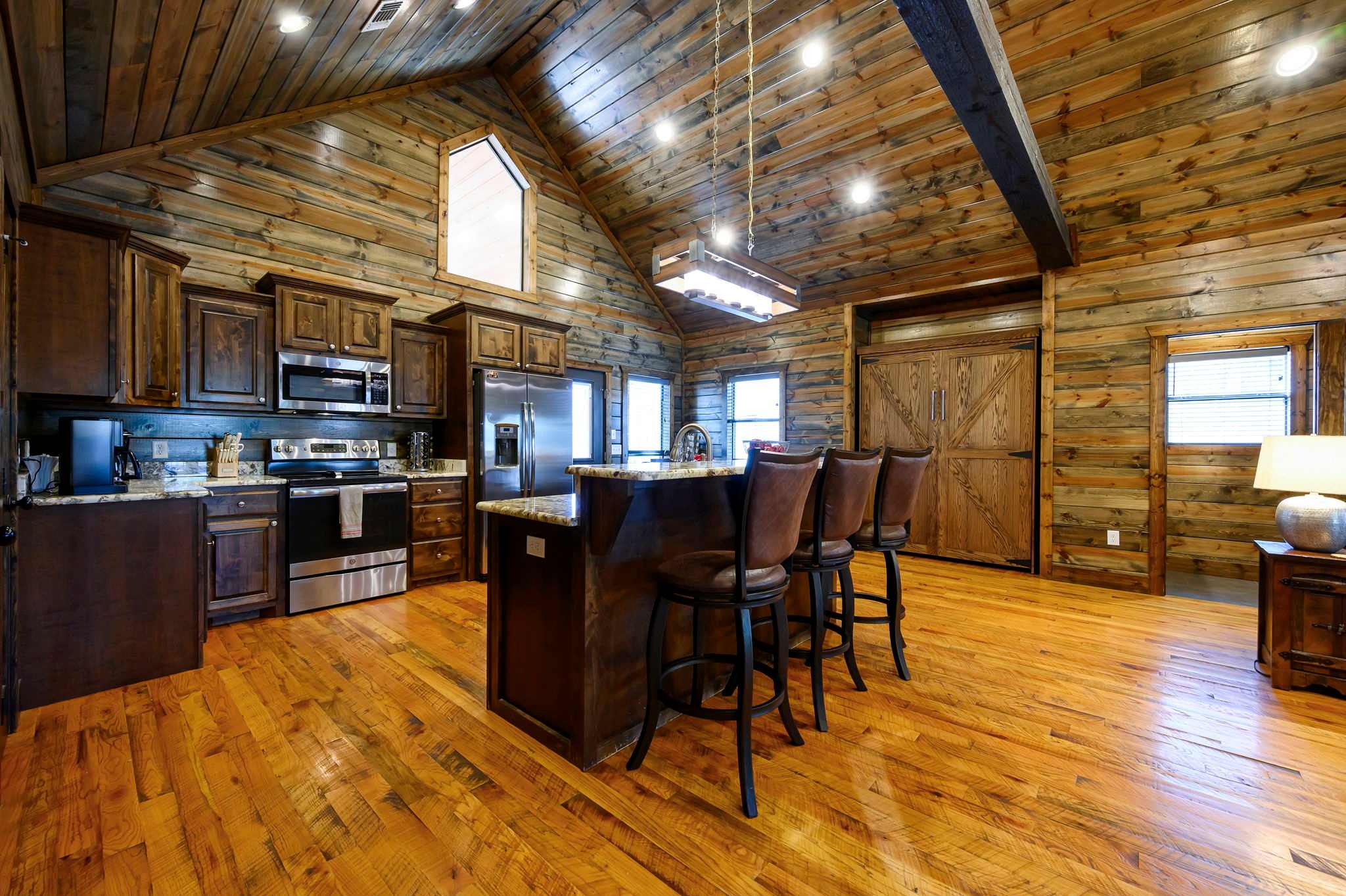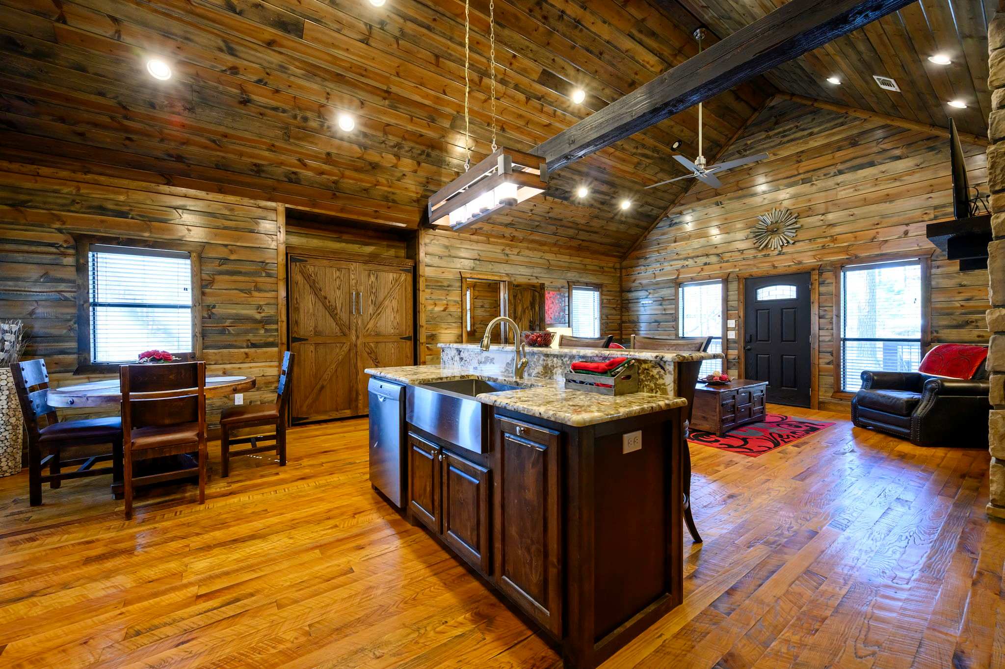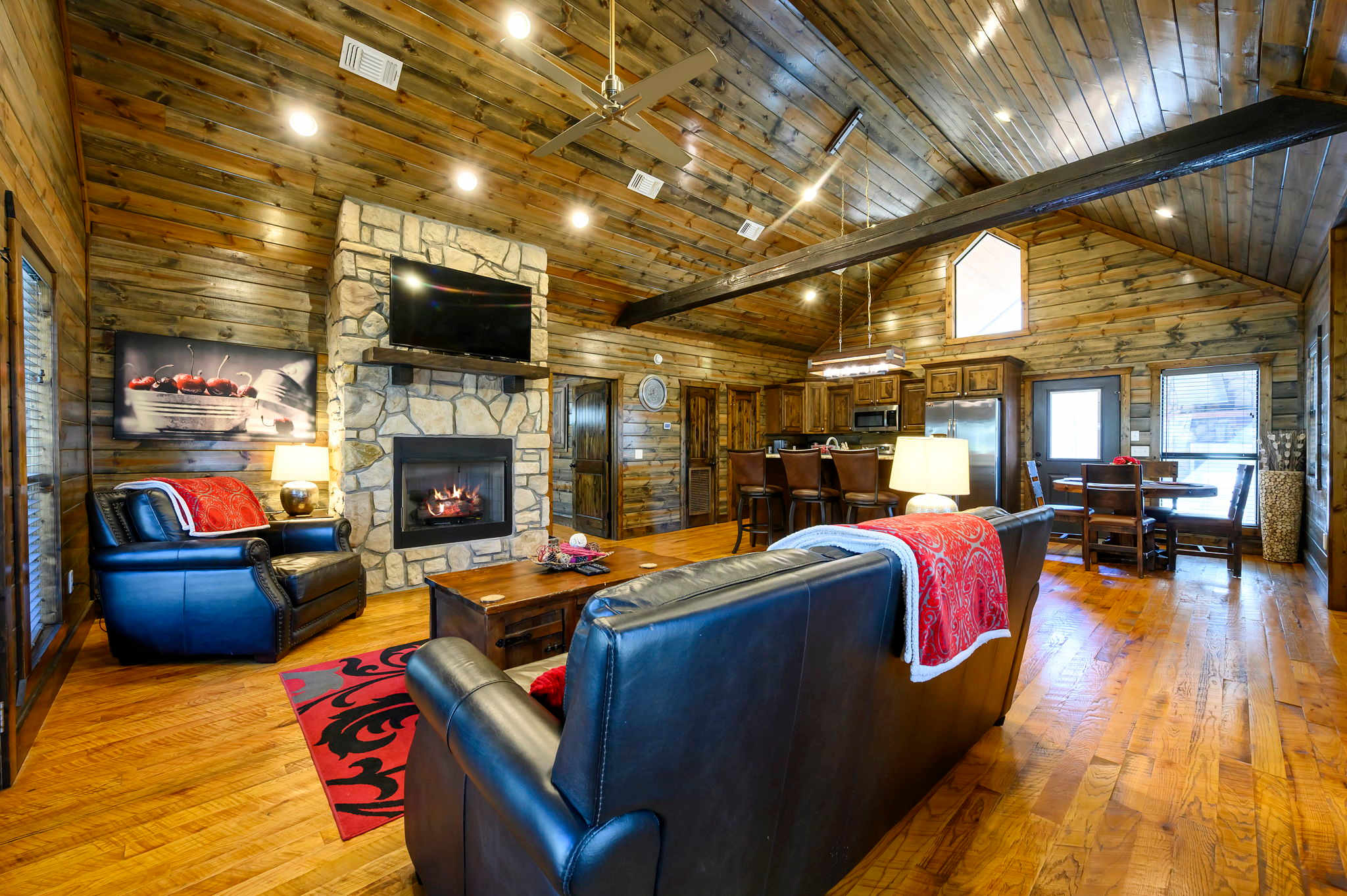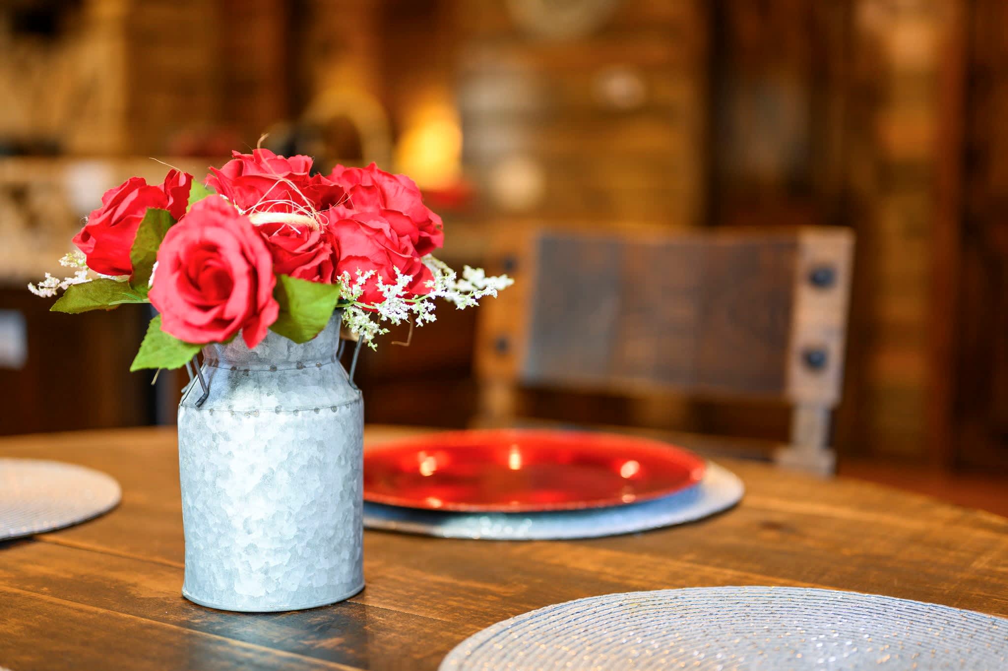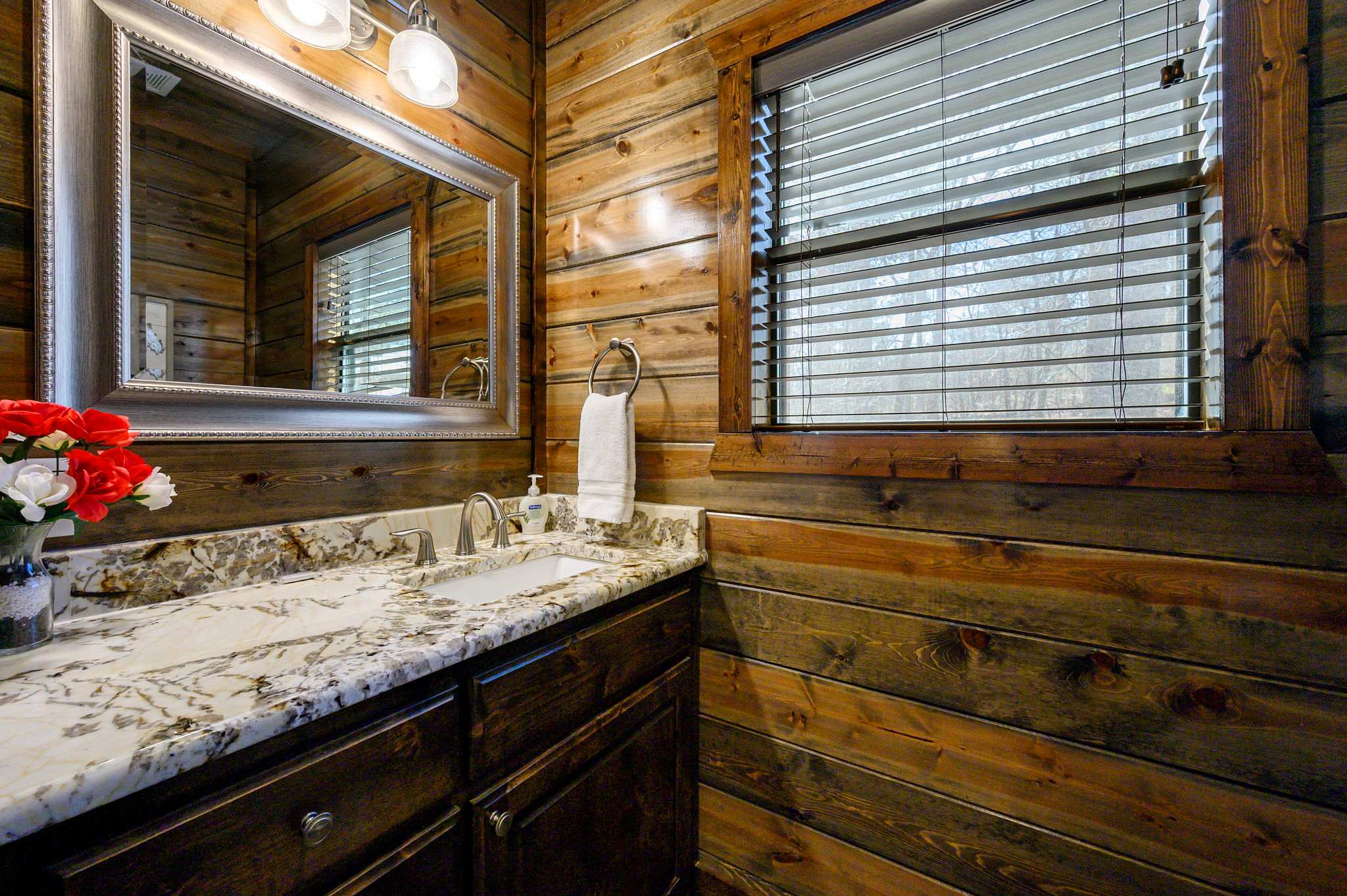 Outside is where this cabin truly steals your heart. A covered deck invites you to unwind in the bubbling hot tub, relax in comfortable seating, or fire up the grill for an easy dinner in the fresh pine-scented air. Down below, a seasonal creek winds through the backyard, creating a peaceful soundtrack for evenings spent around the fire pit. Whether you’re reconnecting, celebrating, or simply escaping the everyday, Pond Lily Creek offers the romance, comfort, and charm you’ve been dreaming of.