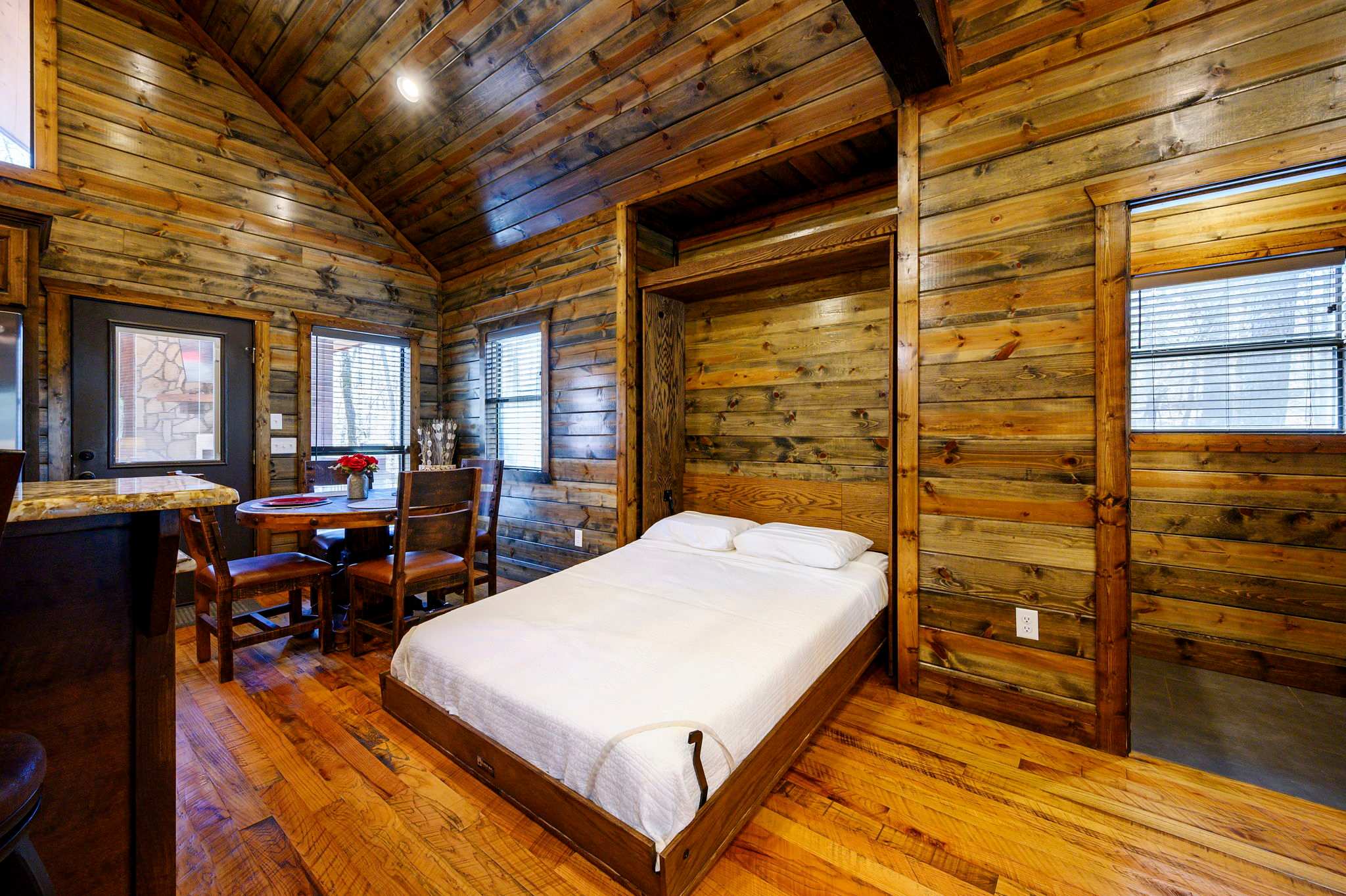 This home comfortably sleeps 4 guests between 1 private bedroom and a queen size murphy bed in the living room.