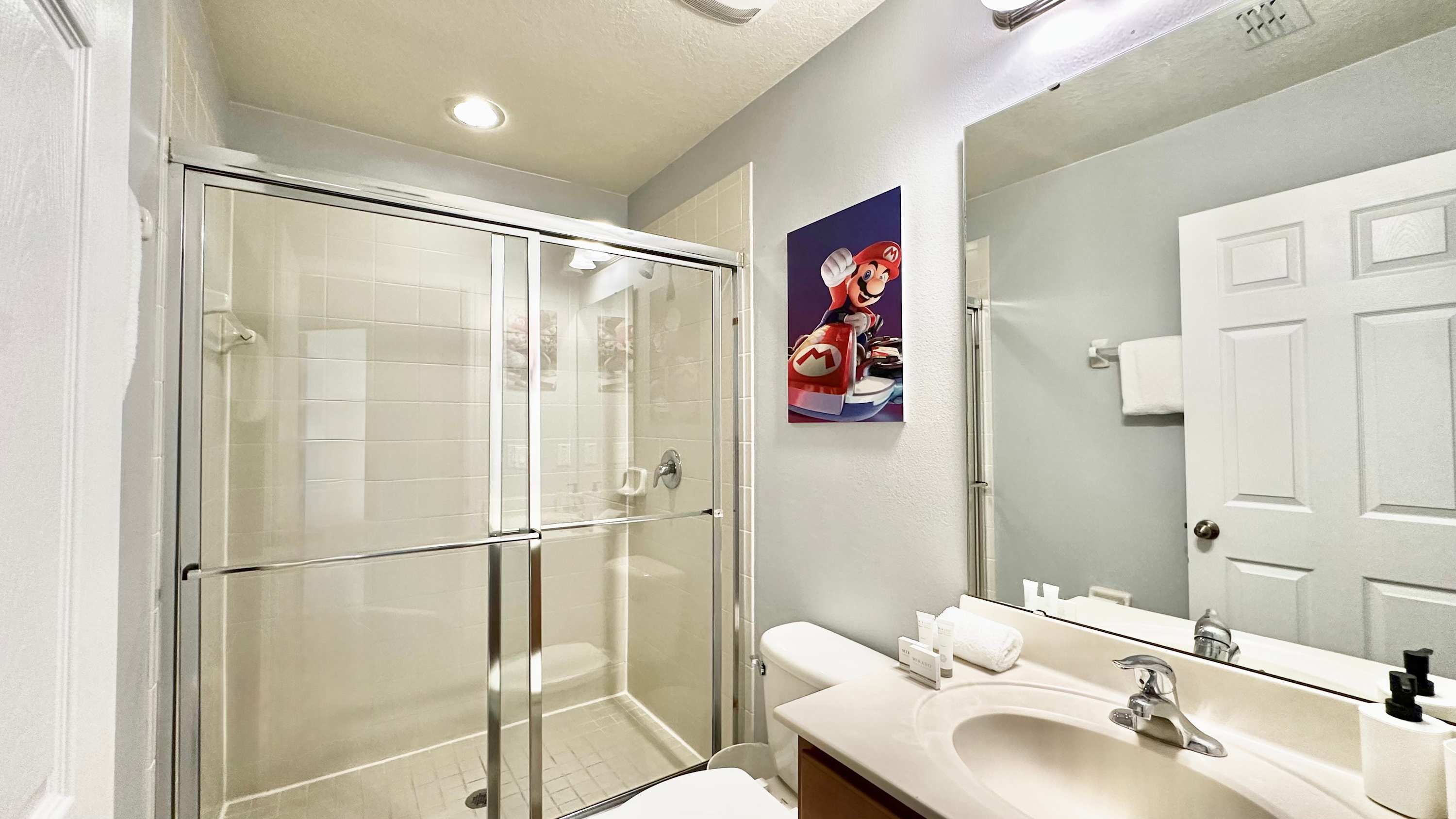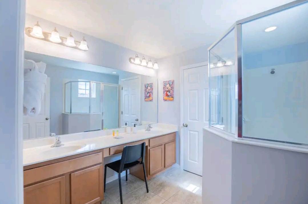This home also includes an additional full guest bathroom with a single vanity and a walk-in shower.