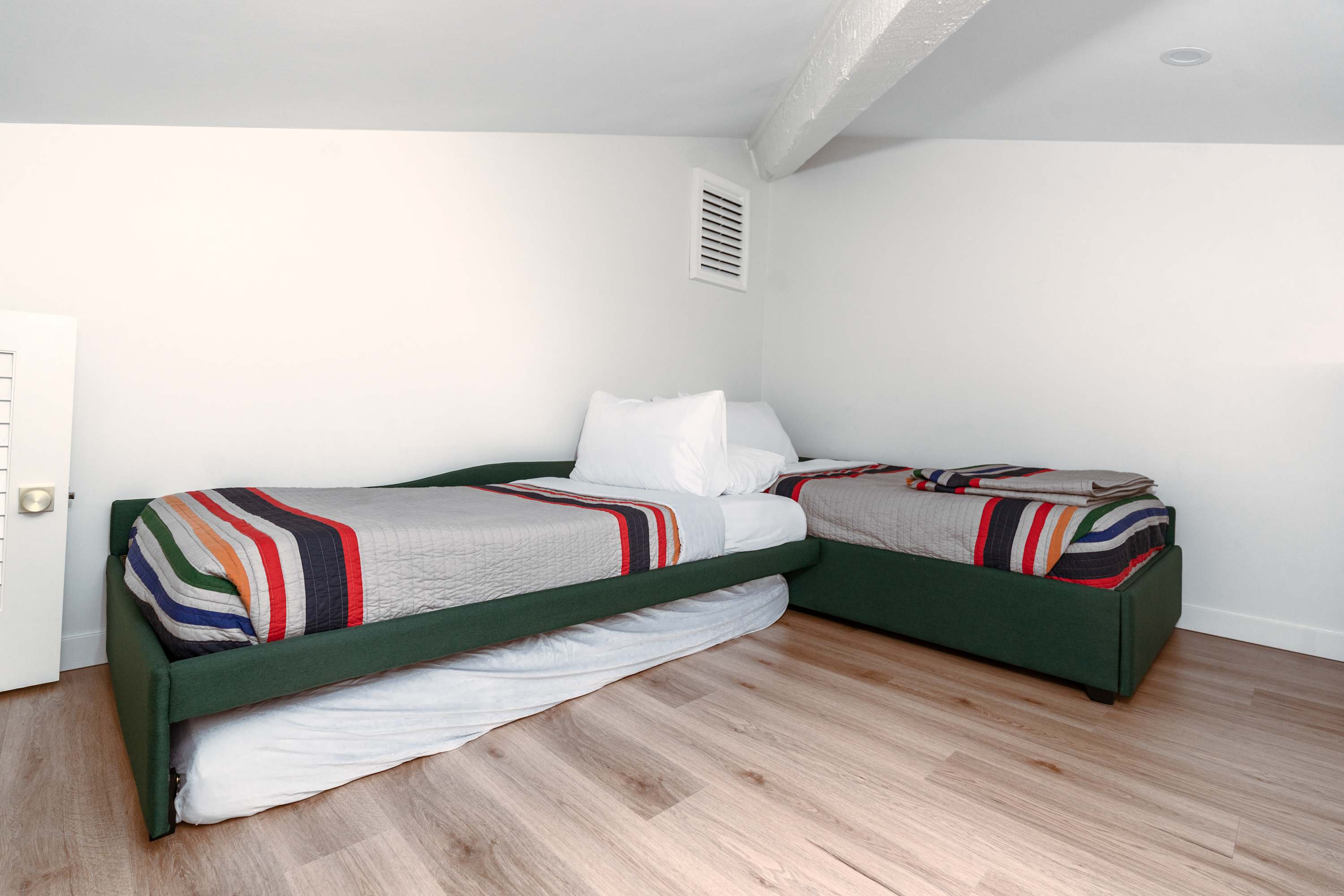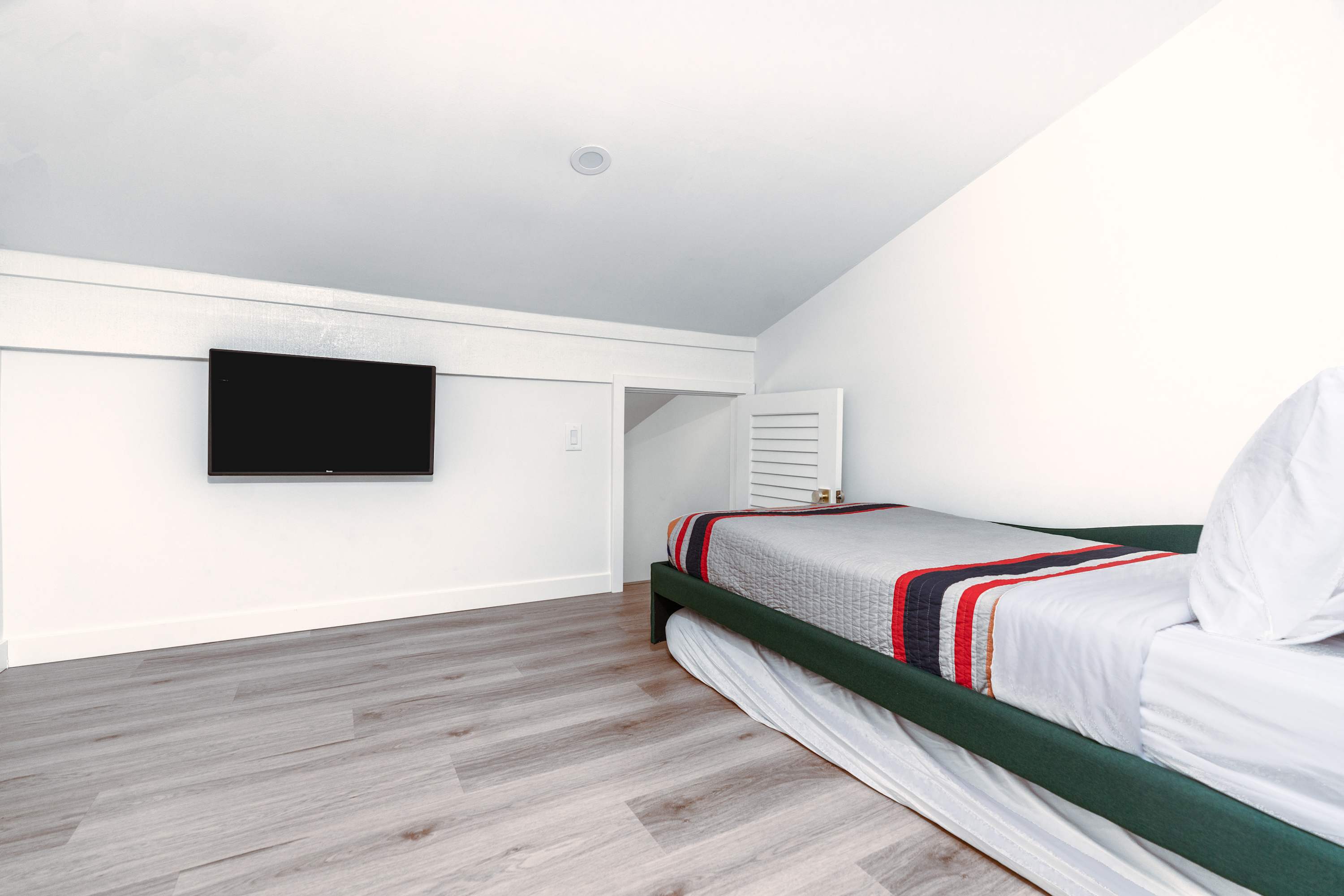 Bedroom #3 (the loft) includes 3 twin size beds and a smart TV.