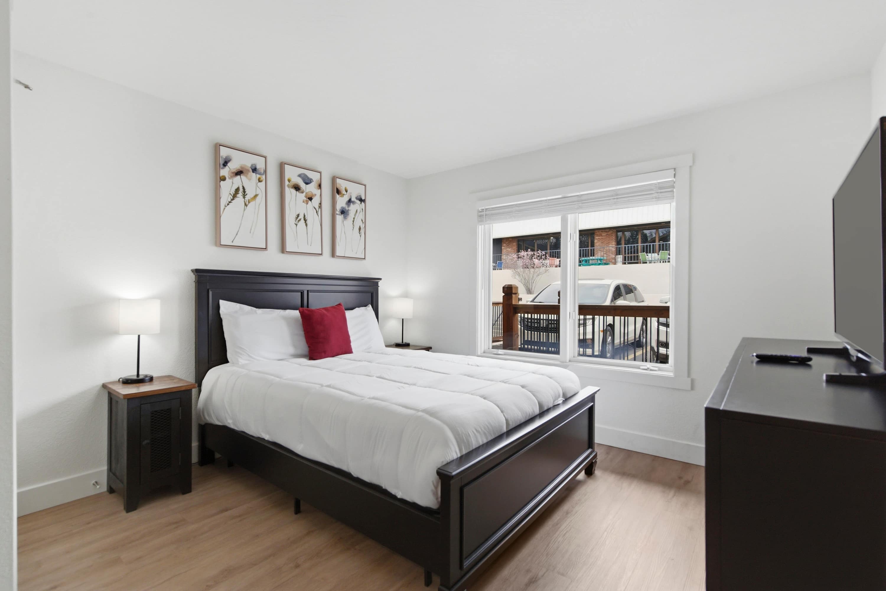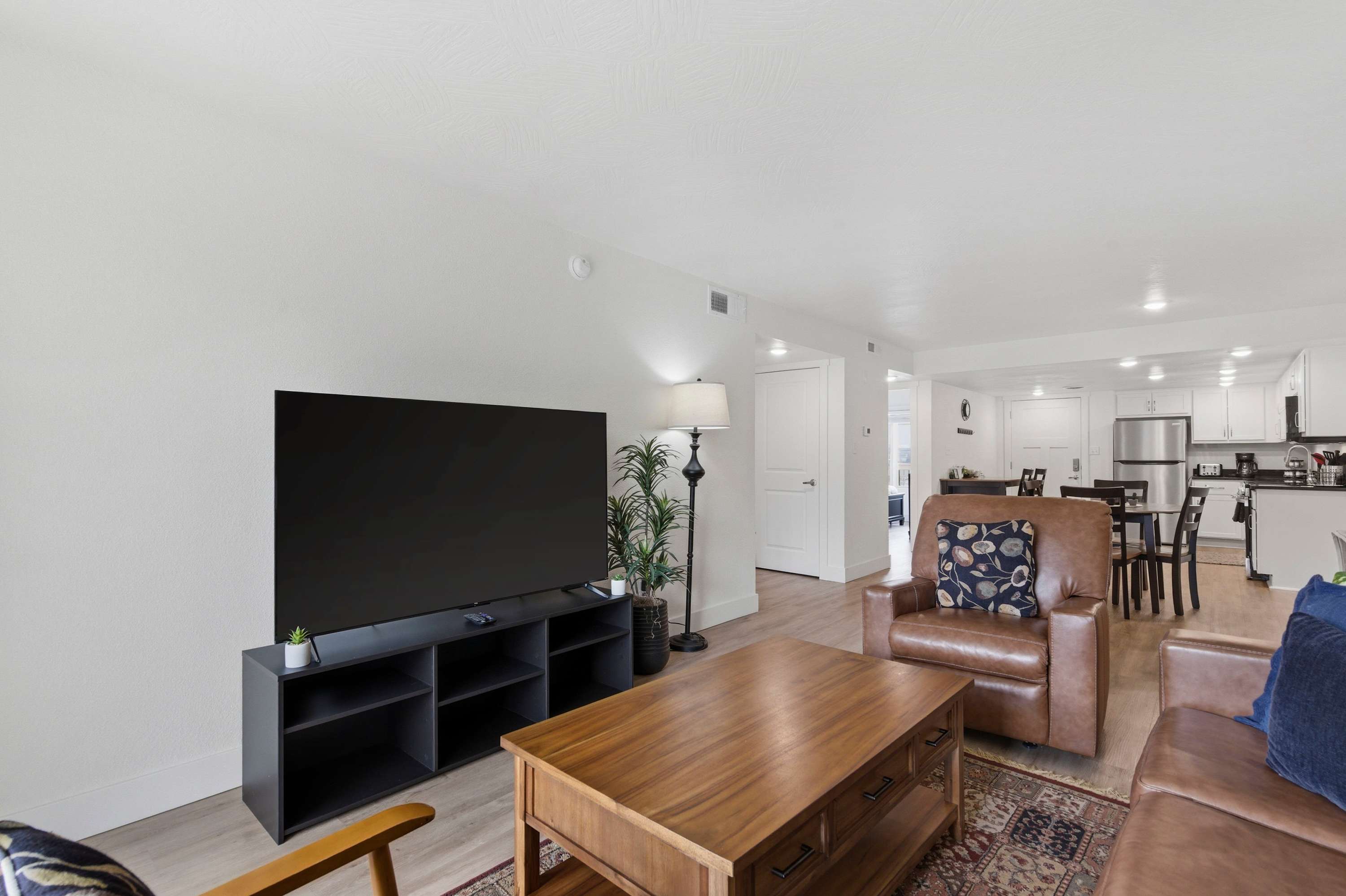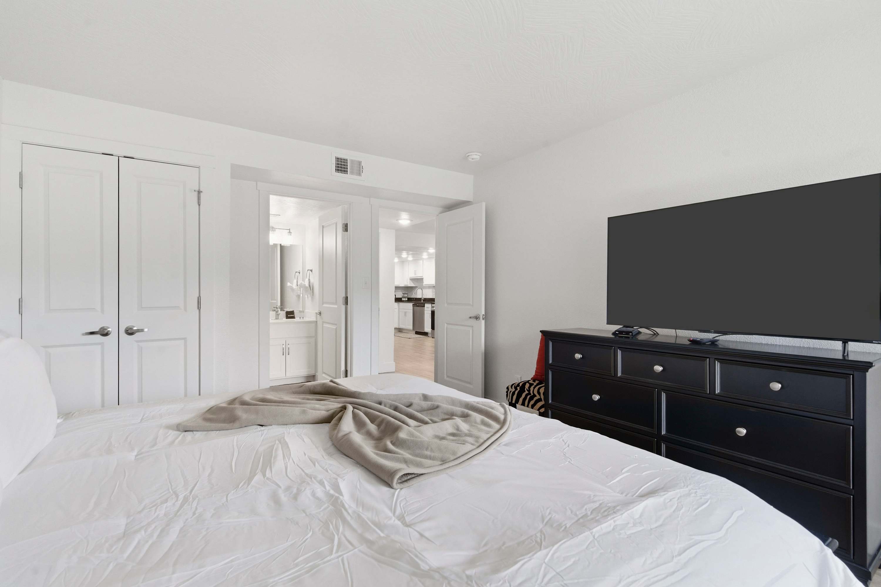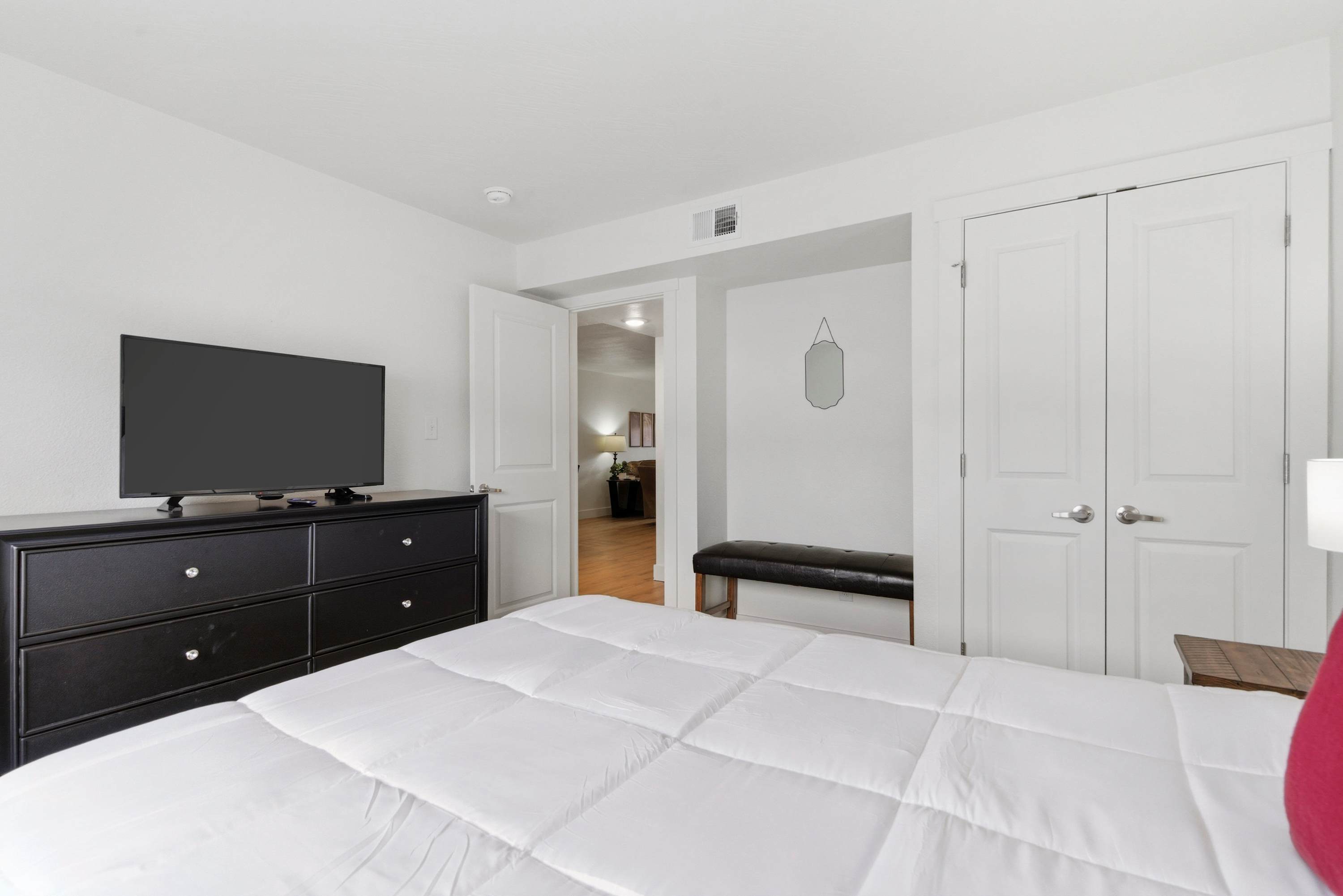 Bedroom #1 includes a queen size bed and a smart TV.