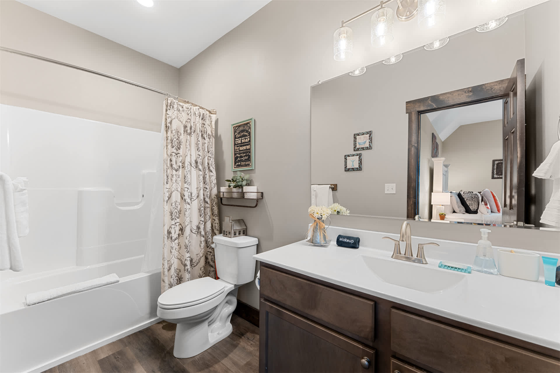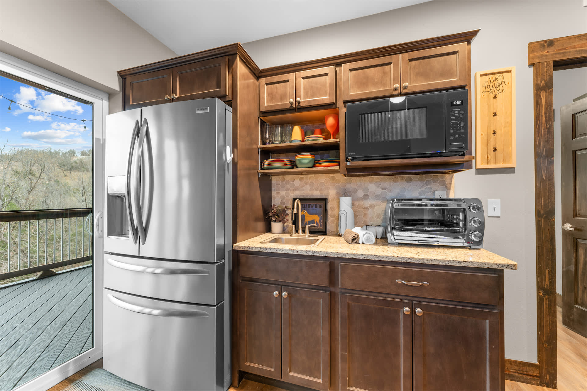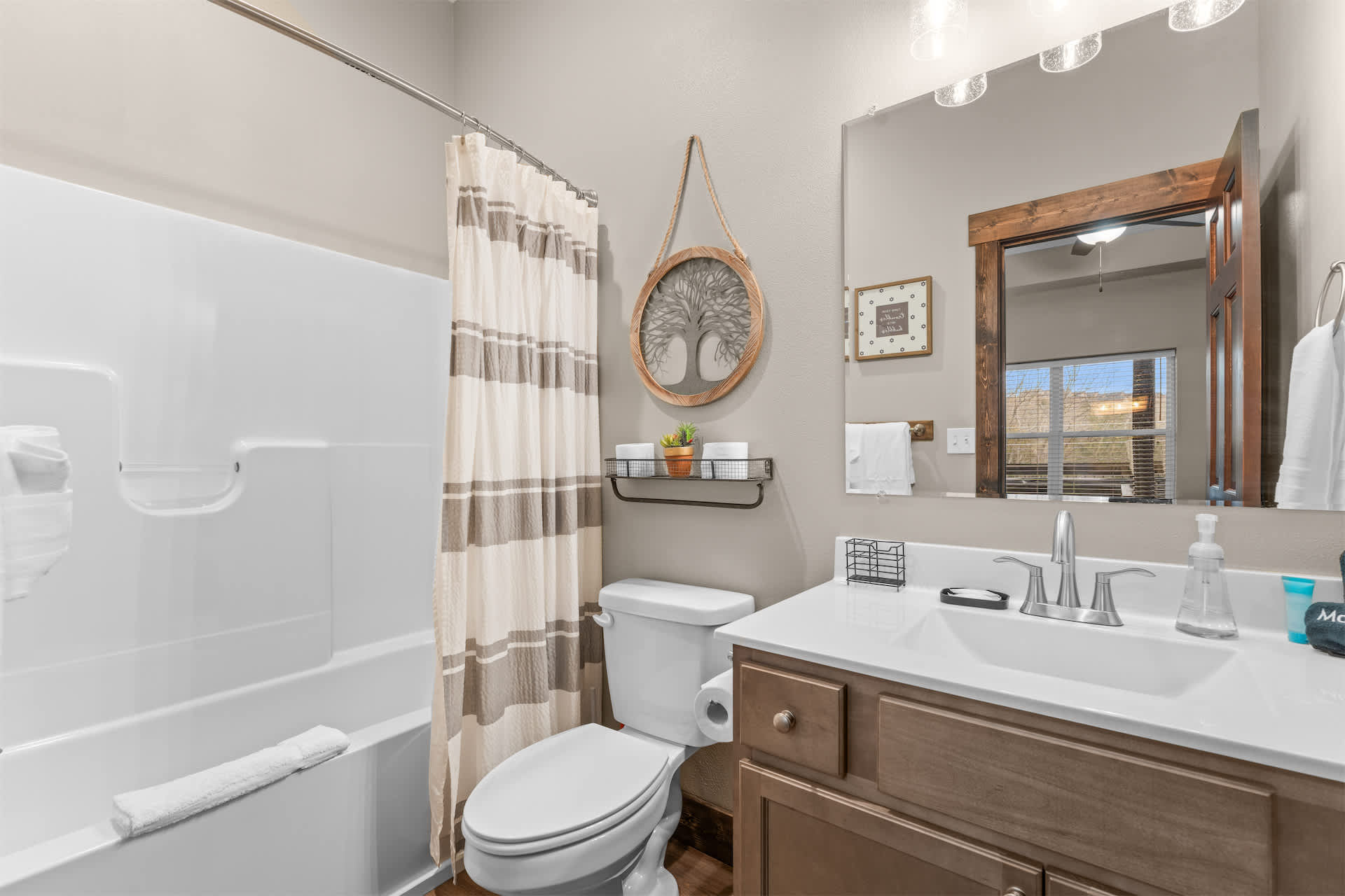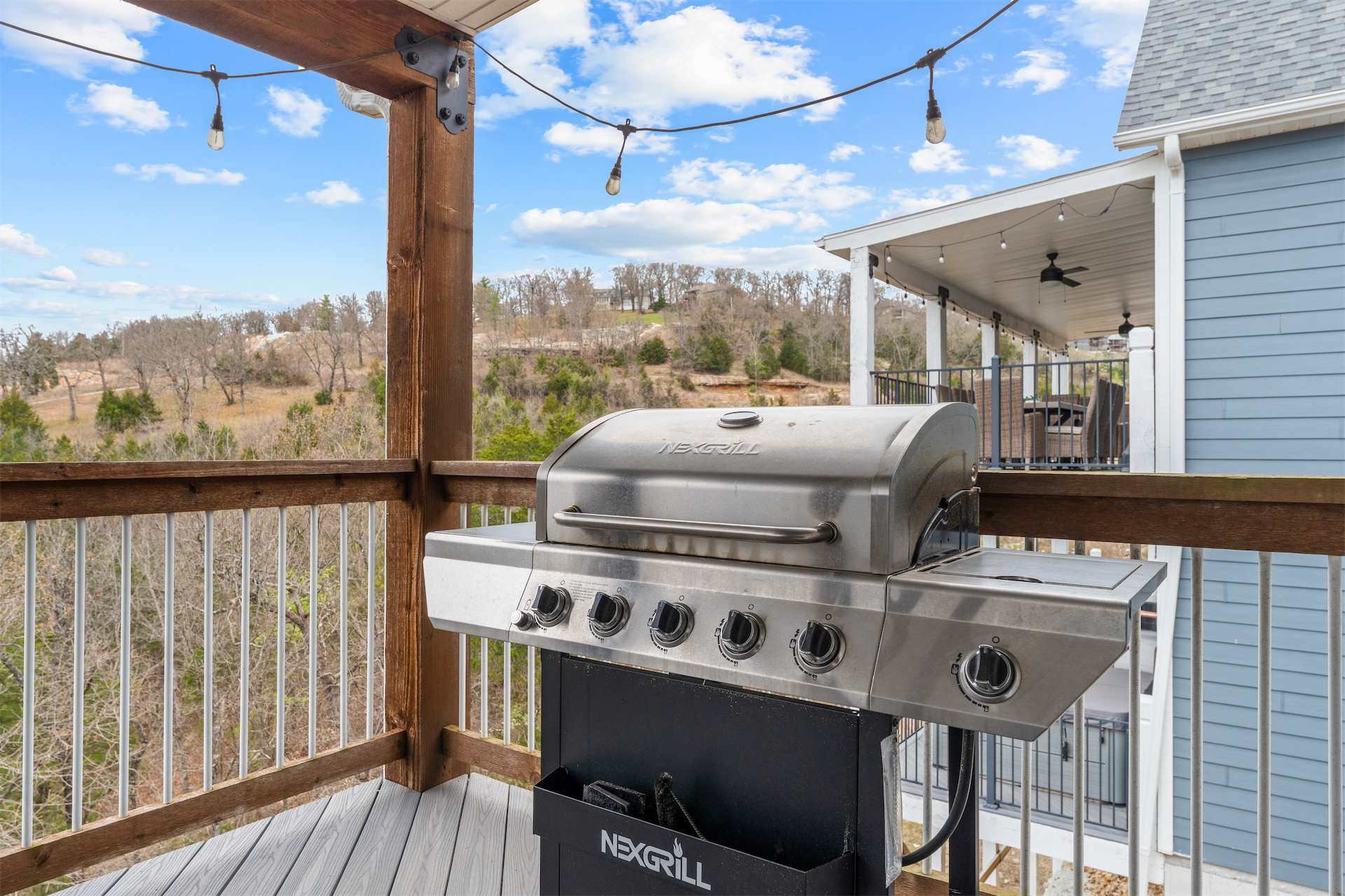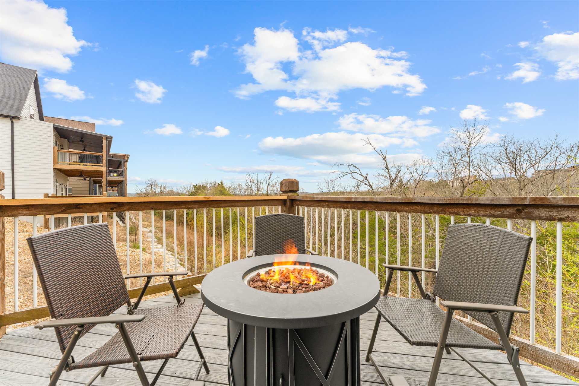 Outside is where this home truly shines. The upper deck offers incredible views and plenty of comfortable seating to soak in the fresh Ozark air, while the screened-in lower deck feels like a private retreat surrounded by trees. Here, you’ll find your own hot tub, ready for quiet mornings or star-filled evenings of relaxation. Whether you’re sipping coffee above the treetops or unwinding in the hot tub after a day exploring Branson, Kokomo Kove delivers a stay that feels both elevated and effortlessly comfortable.