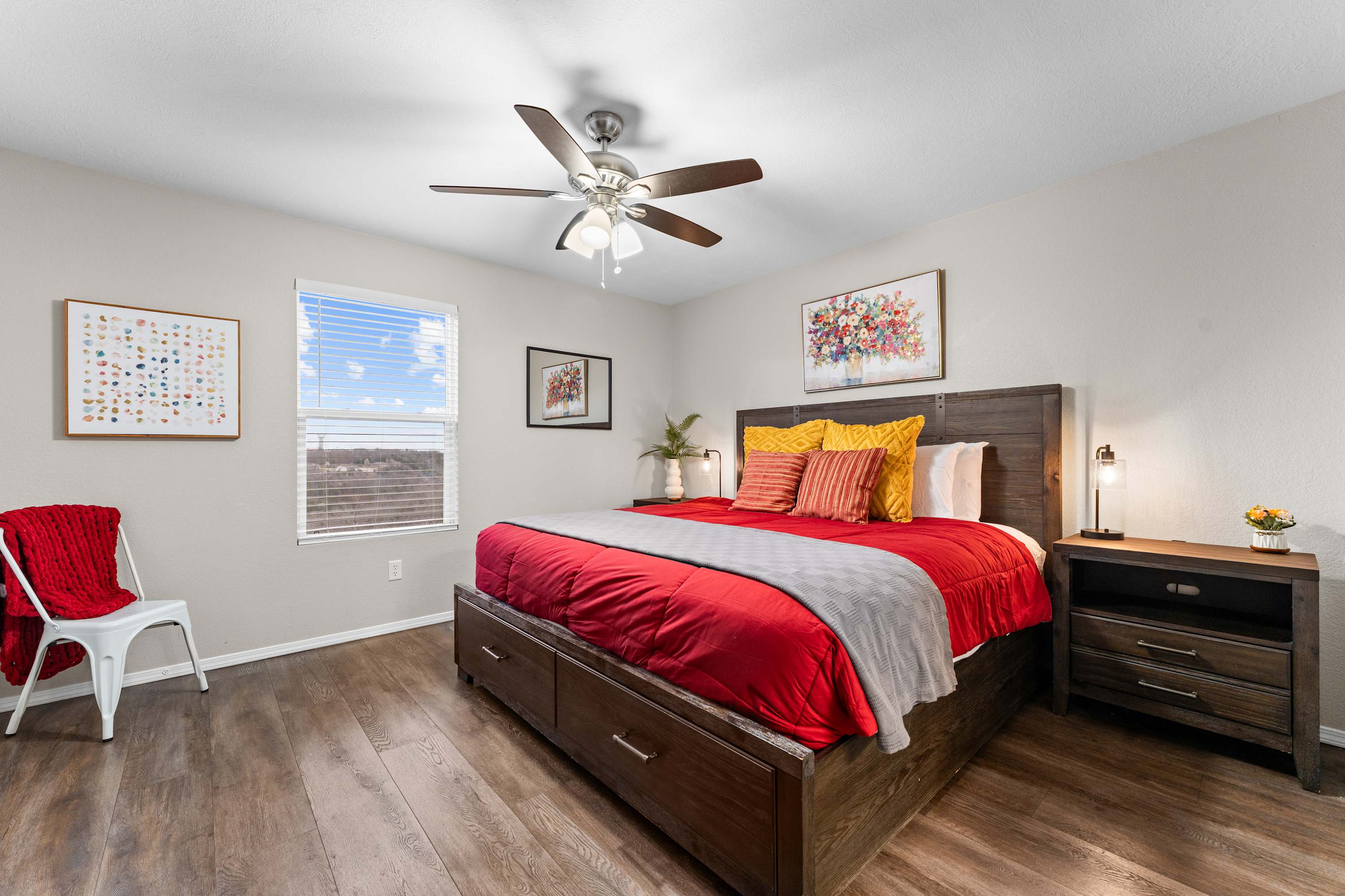 This home comfortably sleeps 9 guests between 3 private bedrooms and a queen size sleeper sofa in the living room.