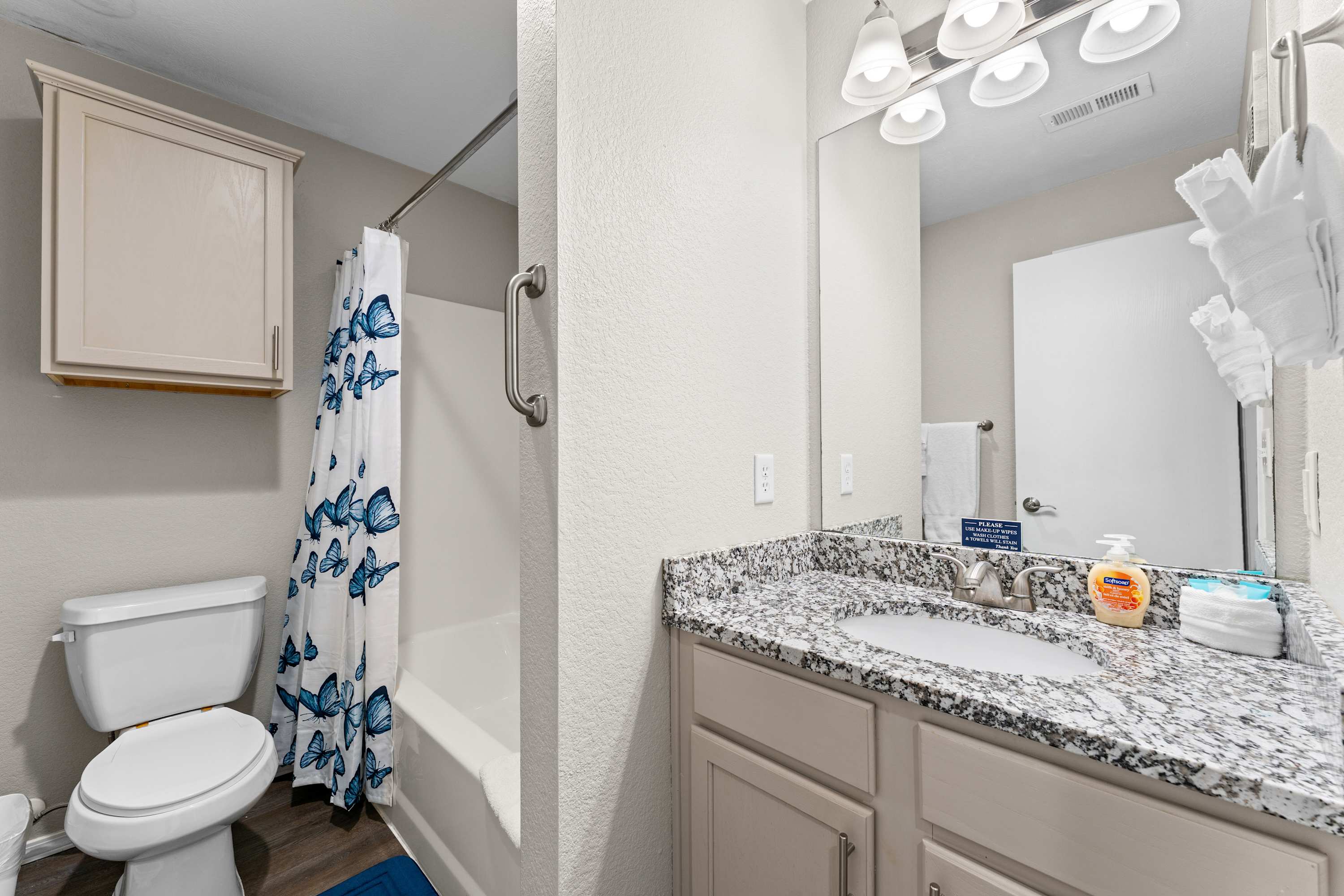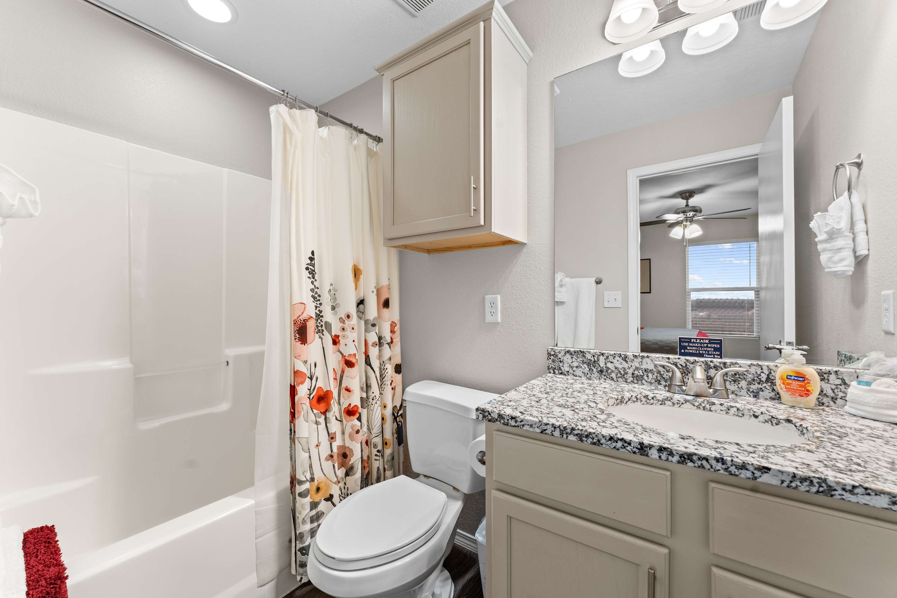 This home also includes an additional full guest bathroom with a single vanity and a shower/tub combo.