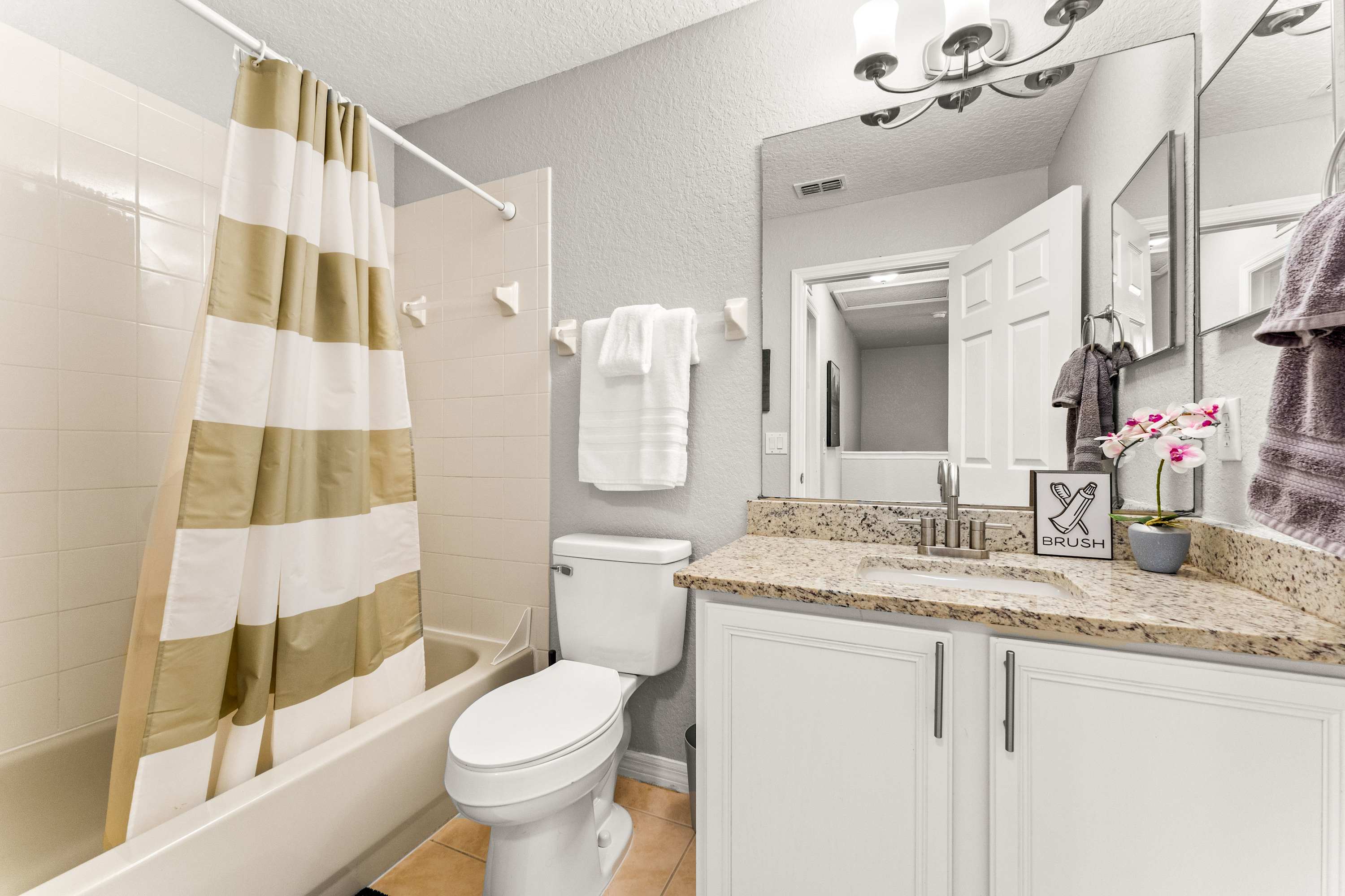 This home also includes an additional full guest bathroom with a single vanity and a shower/tub combo.