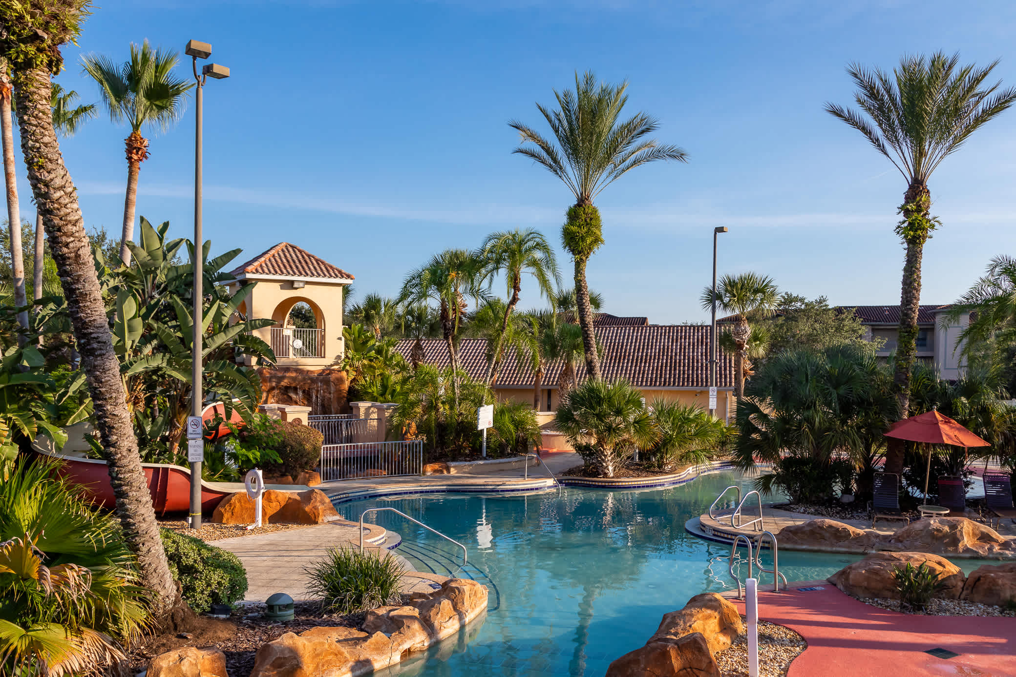 Escape to sunshine at Palm Garden at Regal Palms in Davenport. This resort makes vacationing effortless—offering a tropical swimming pavilion complete with a lazy river, water slide, zero-entry pool, and hot tub. Spend your days unwinding at the full-service spa, staying active in the fitness center, or enjoying family time at the arcade and sand volleyball court. With a bar & grill and clubhouse just a short 5-minute walk from your door, everything you need is right at your fingertips.