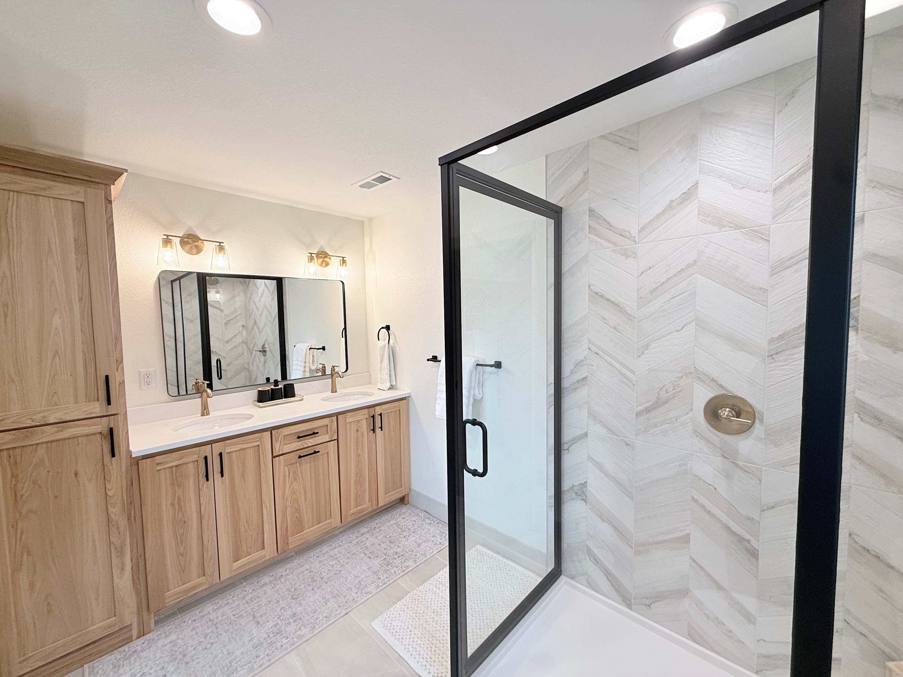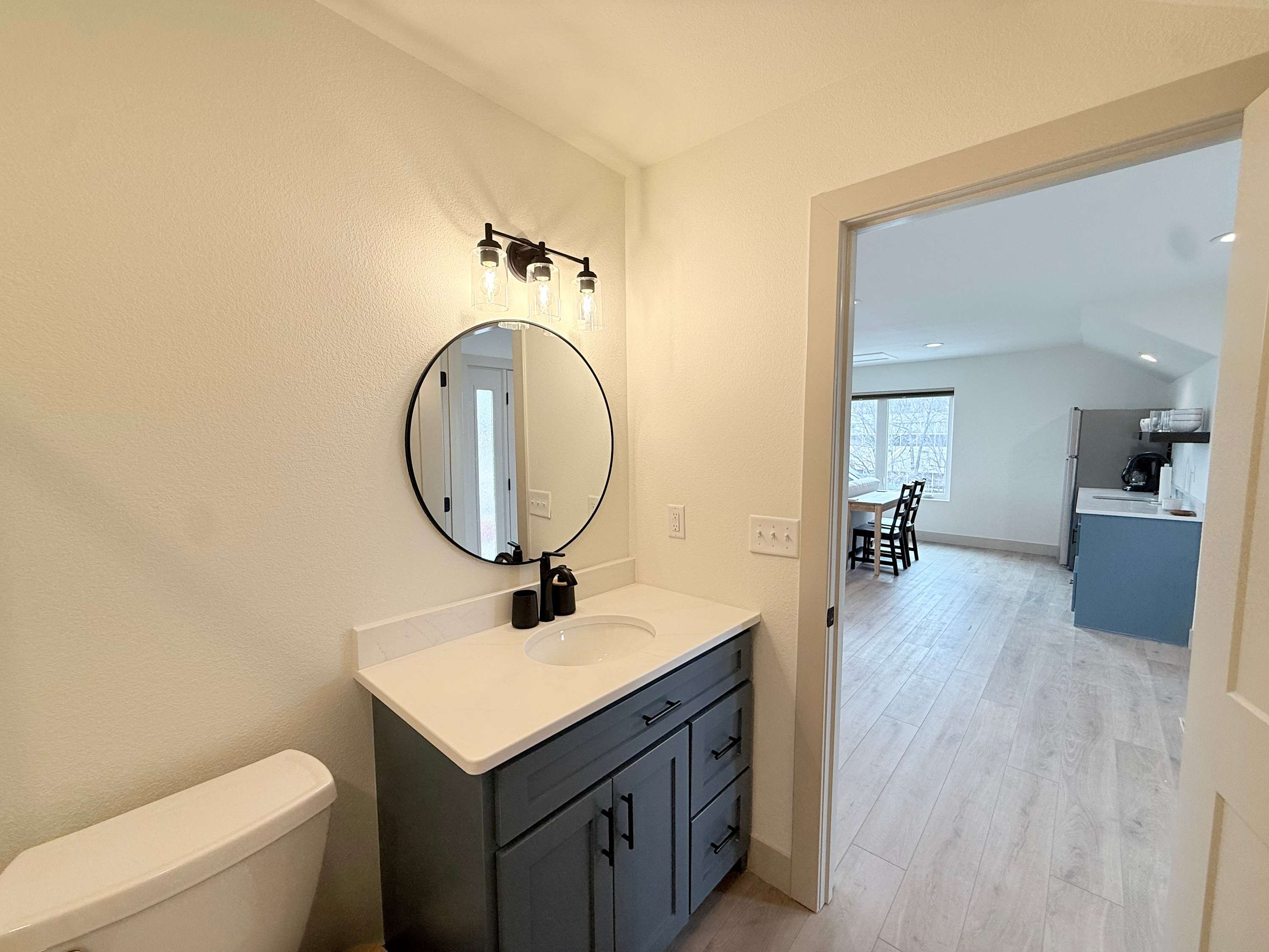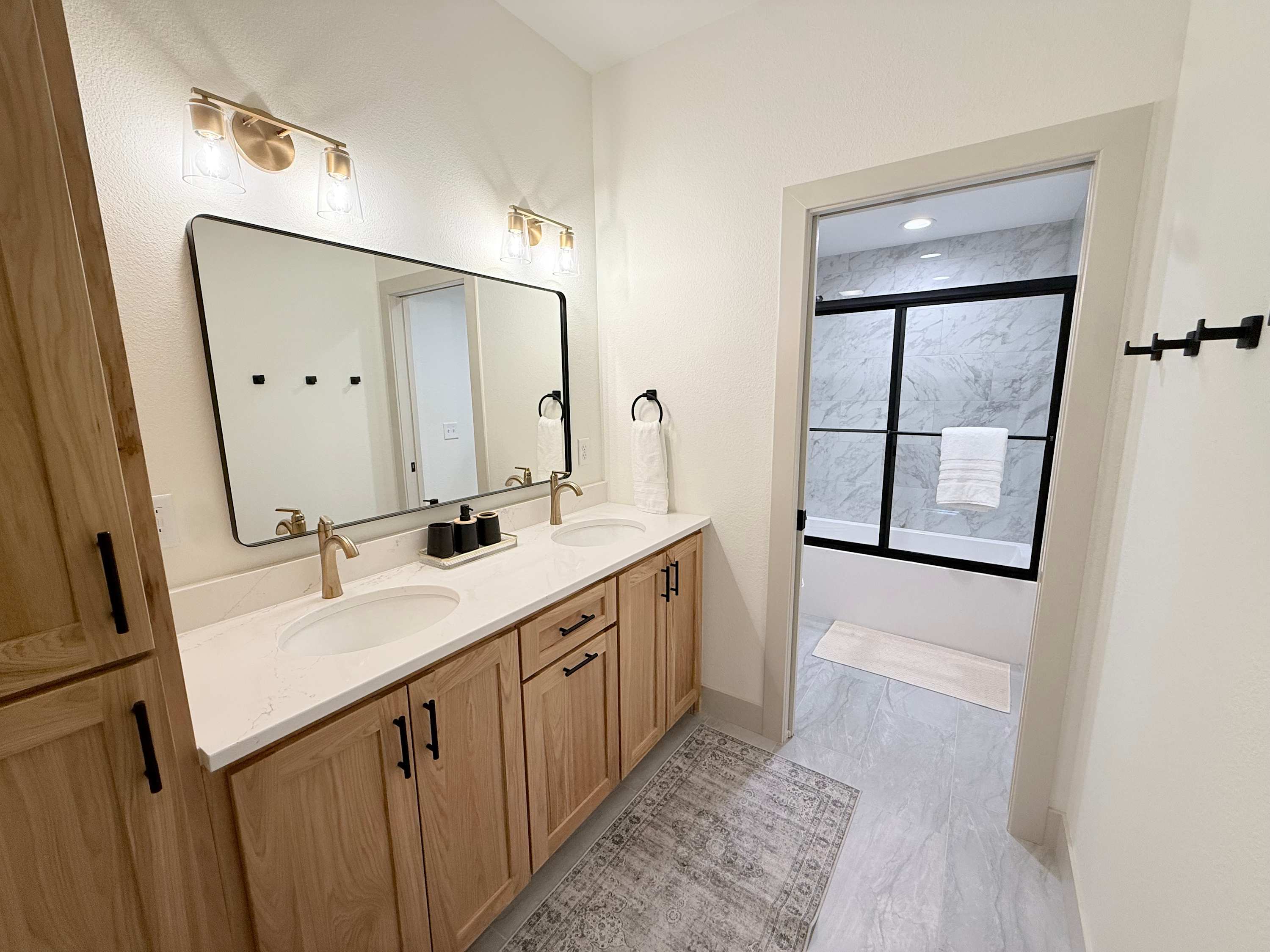 This home also includes a half bathroom and an additional full bathroom with a dual vanity and a shower/tub combo.