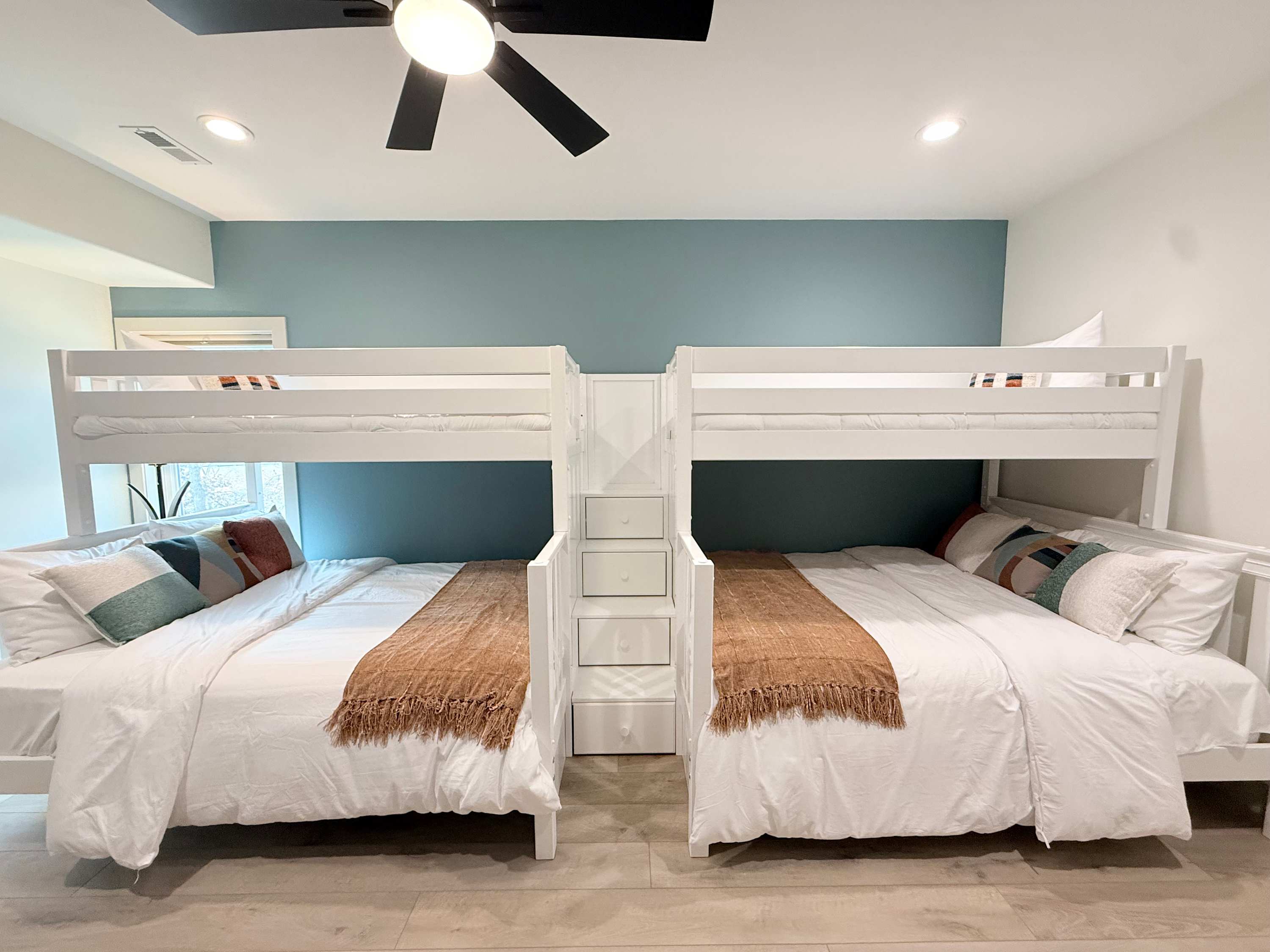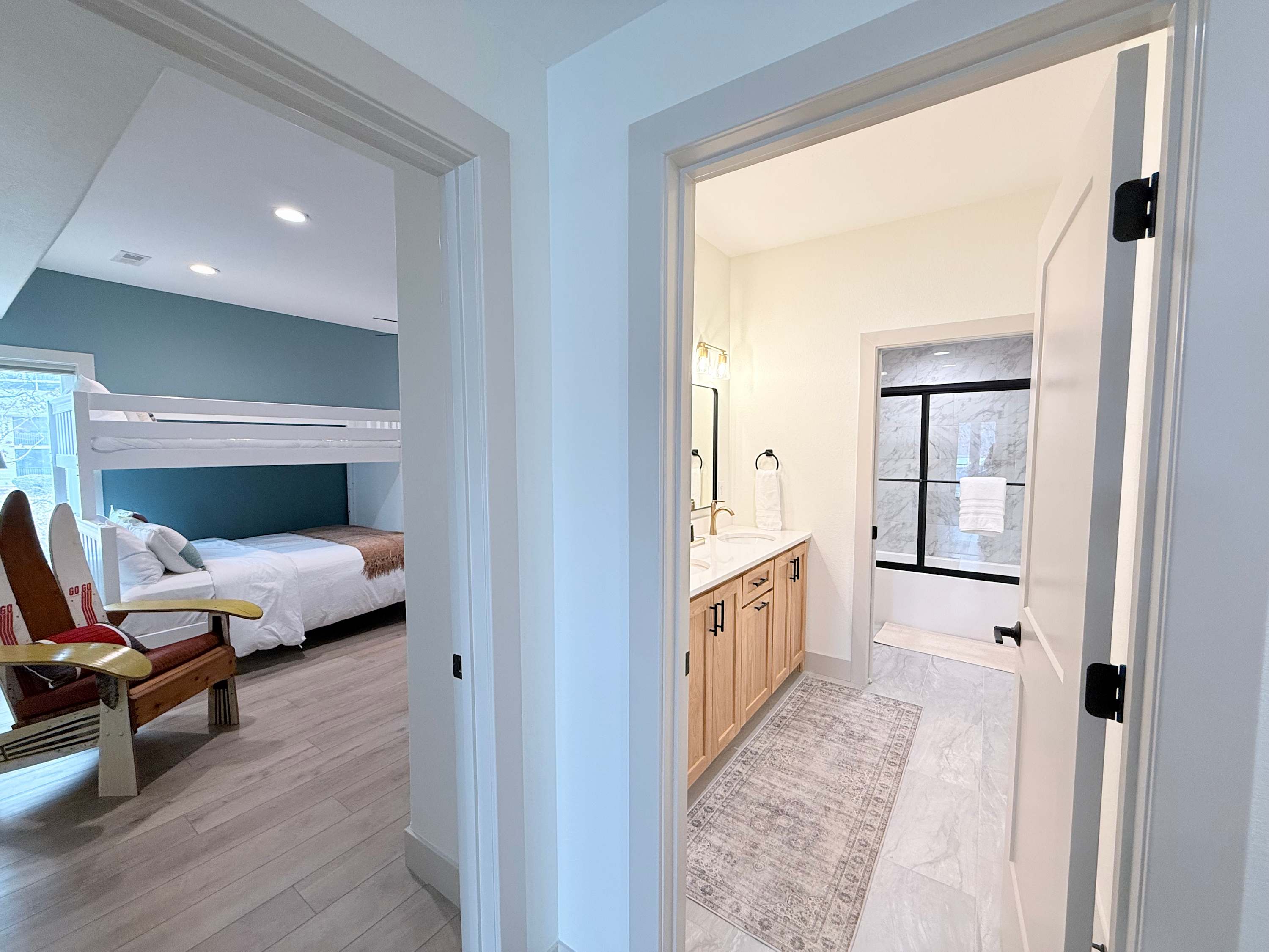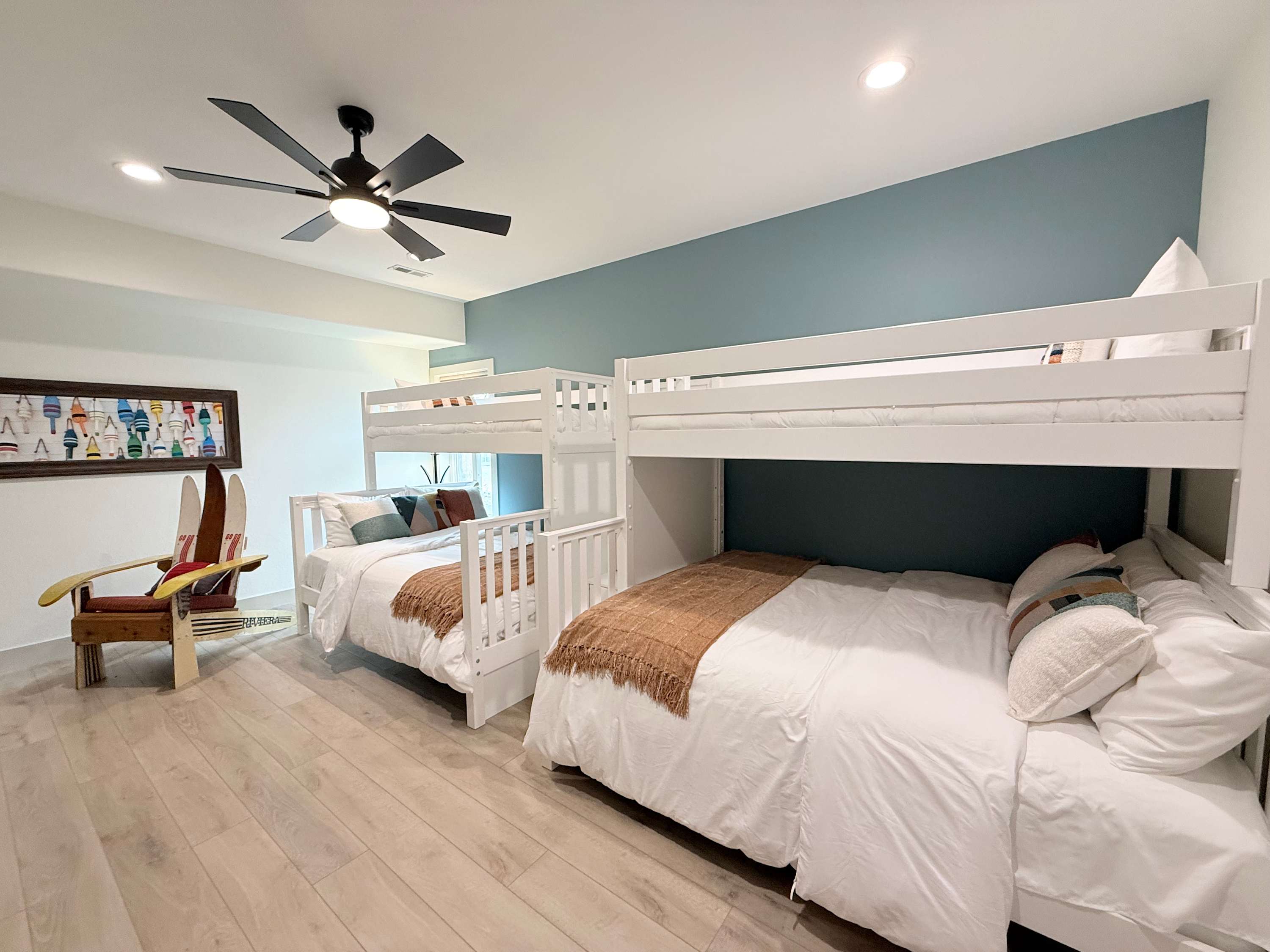 Bedroom #3 includes 2 sets of twin-over-queen size bunk beds and a smart TV.