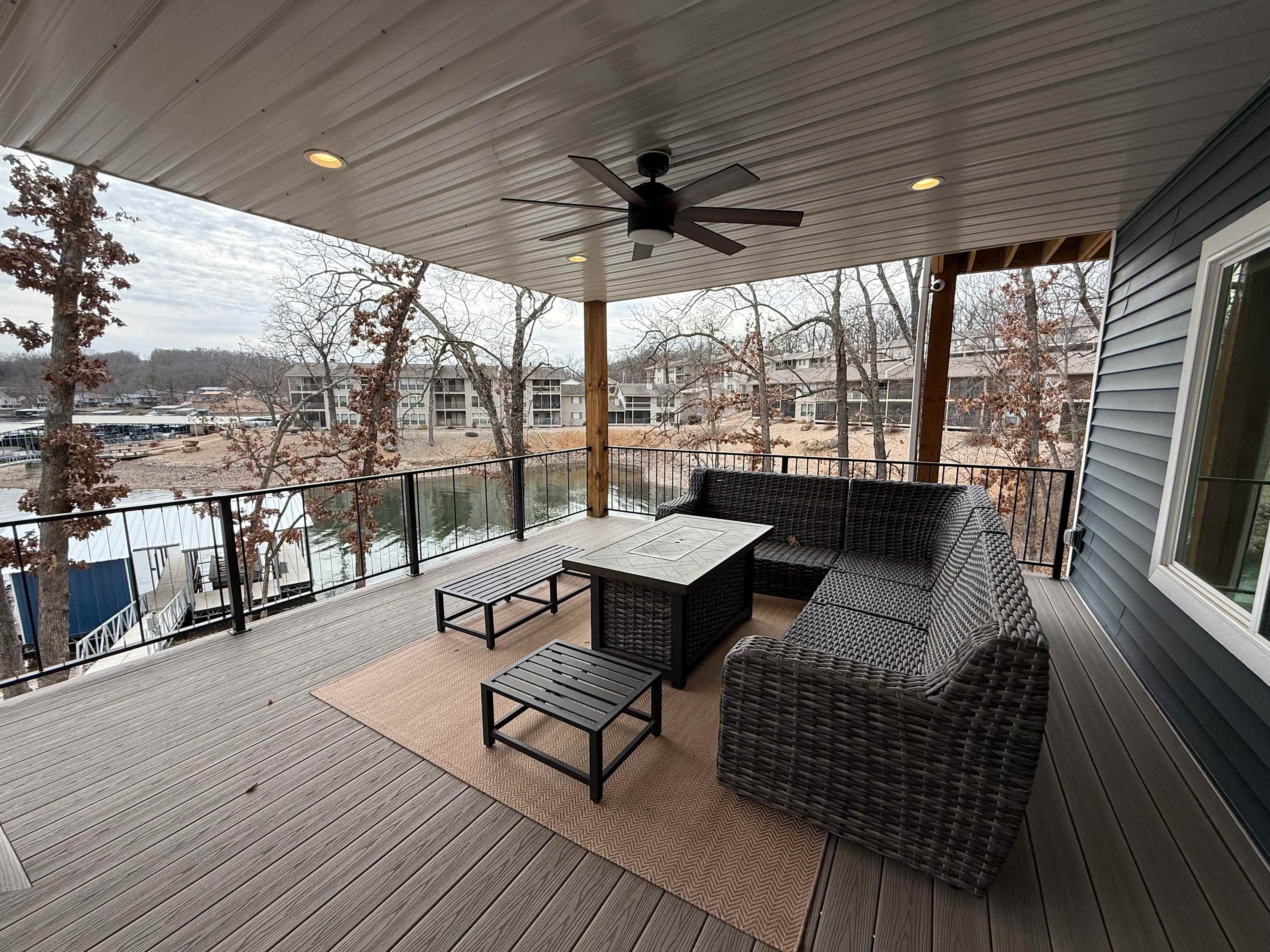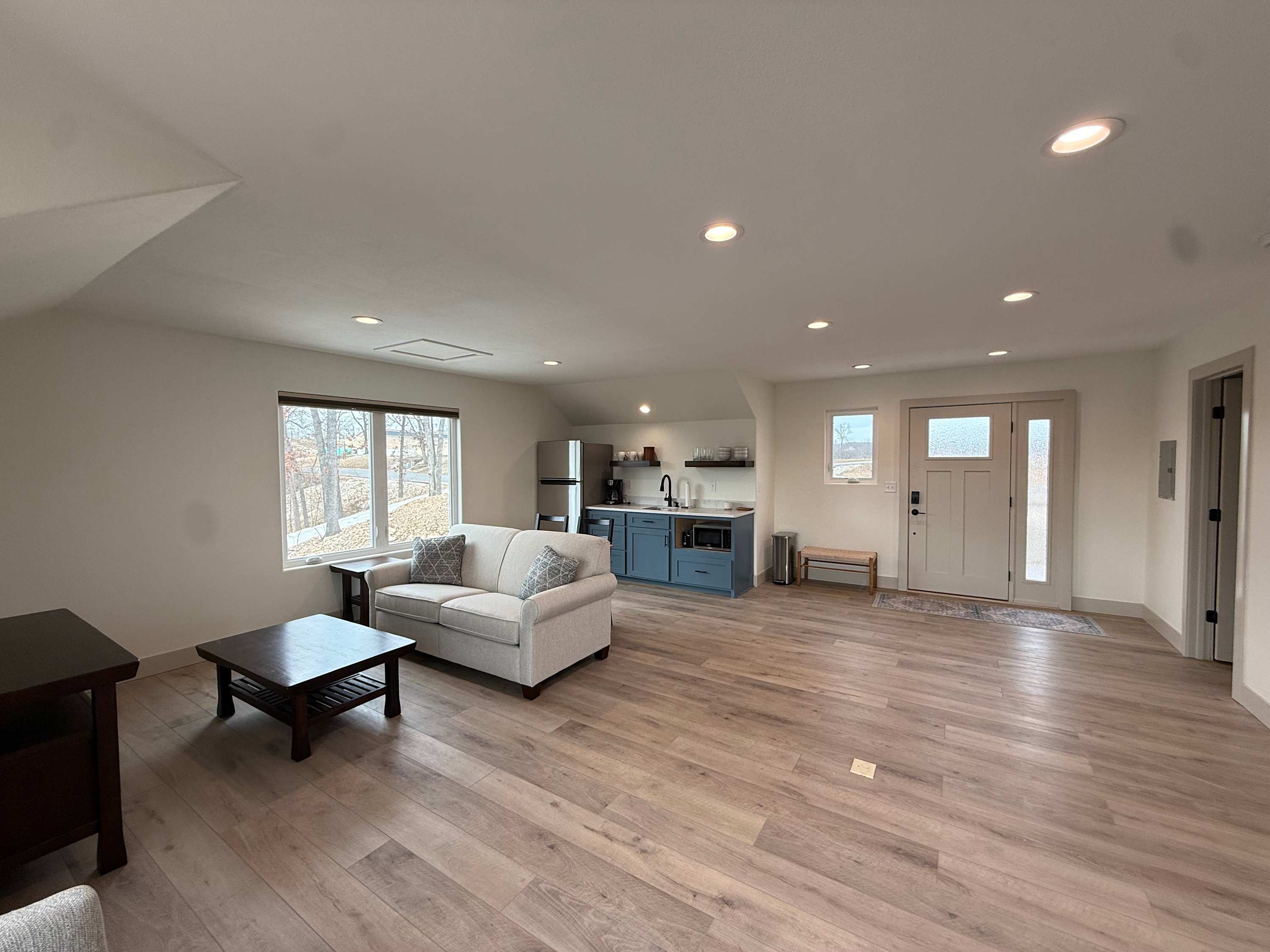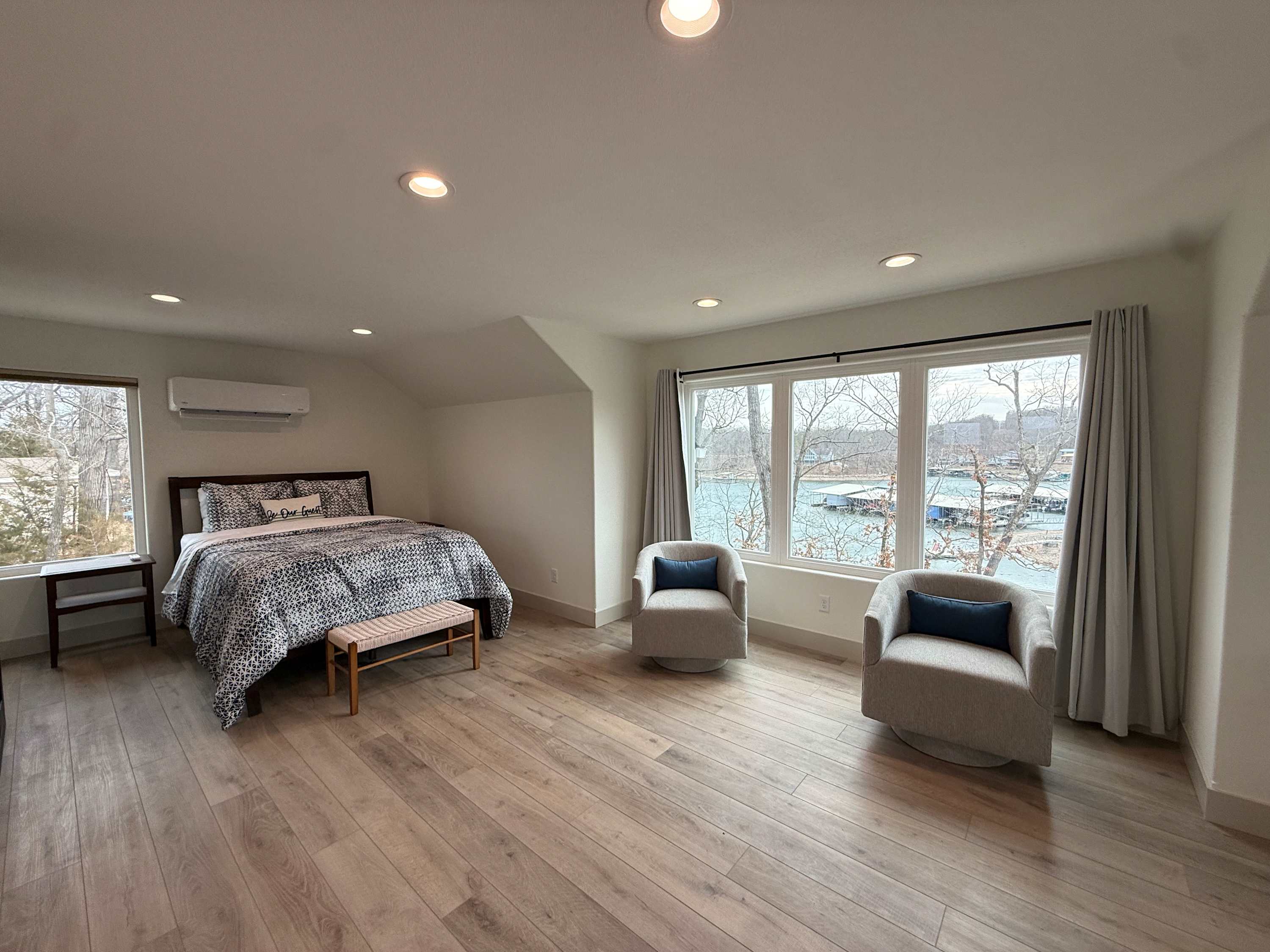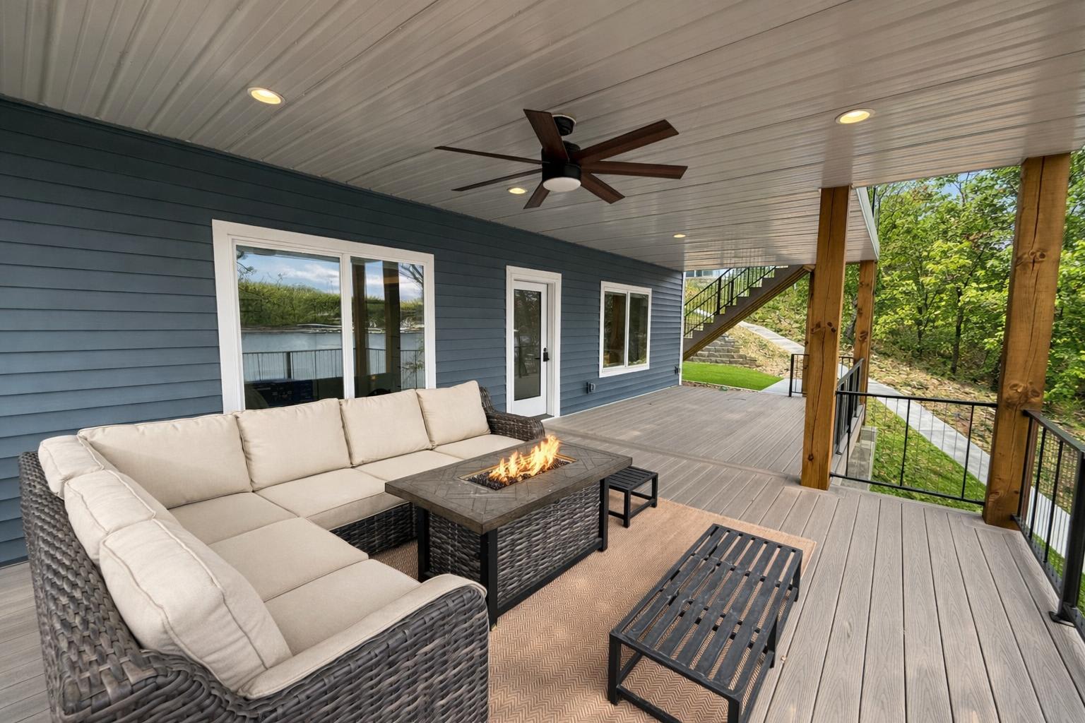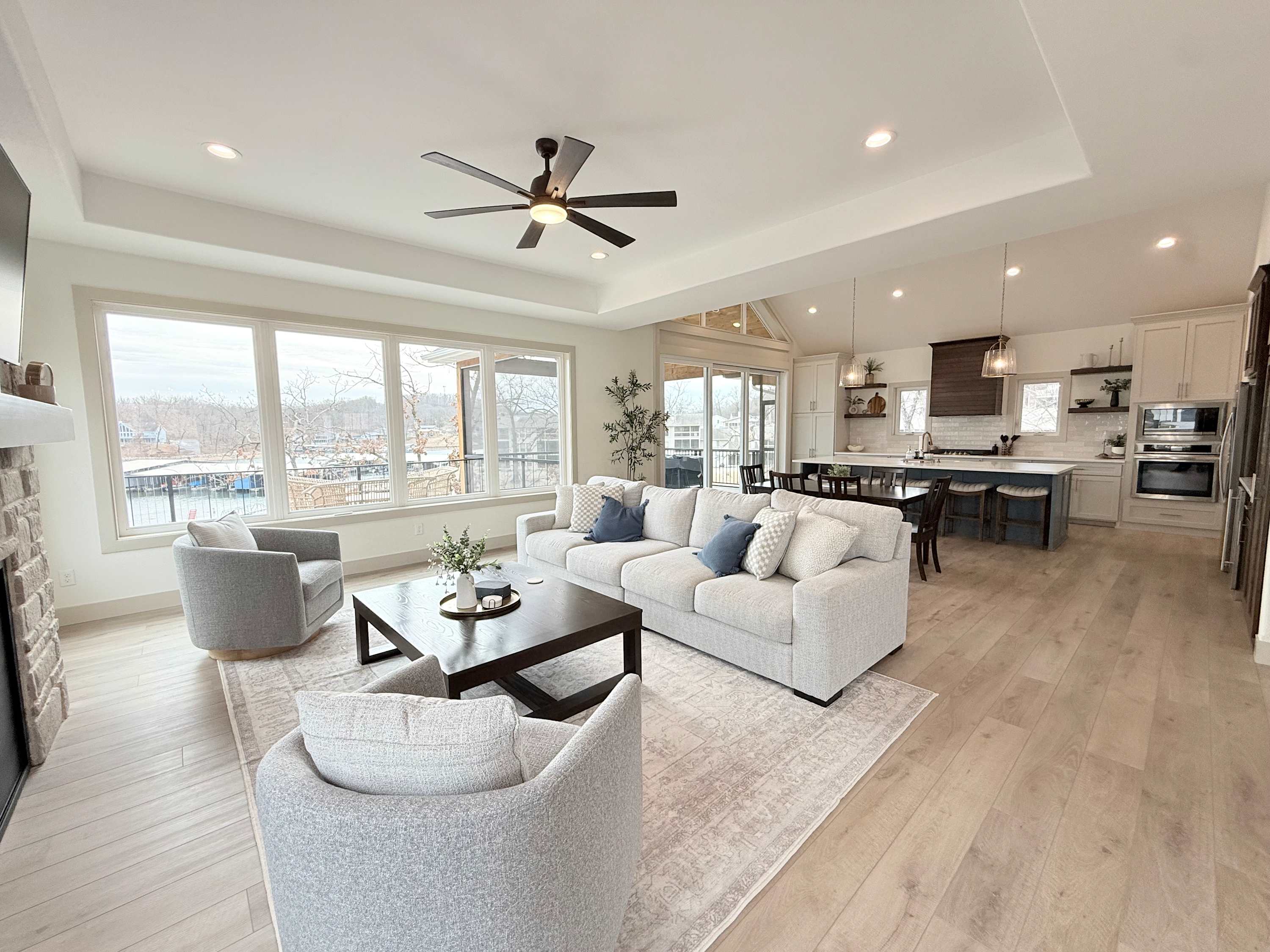 The home also includes a private onsite apartment, complete with its own living area, smart TV, seating, and kitchenette—ideal for guests who want a little extra privacy. At The Blue Sapphire, every detail is designed to create a relaxing, memory-filled lake getaway.