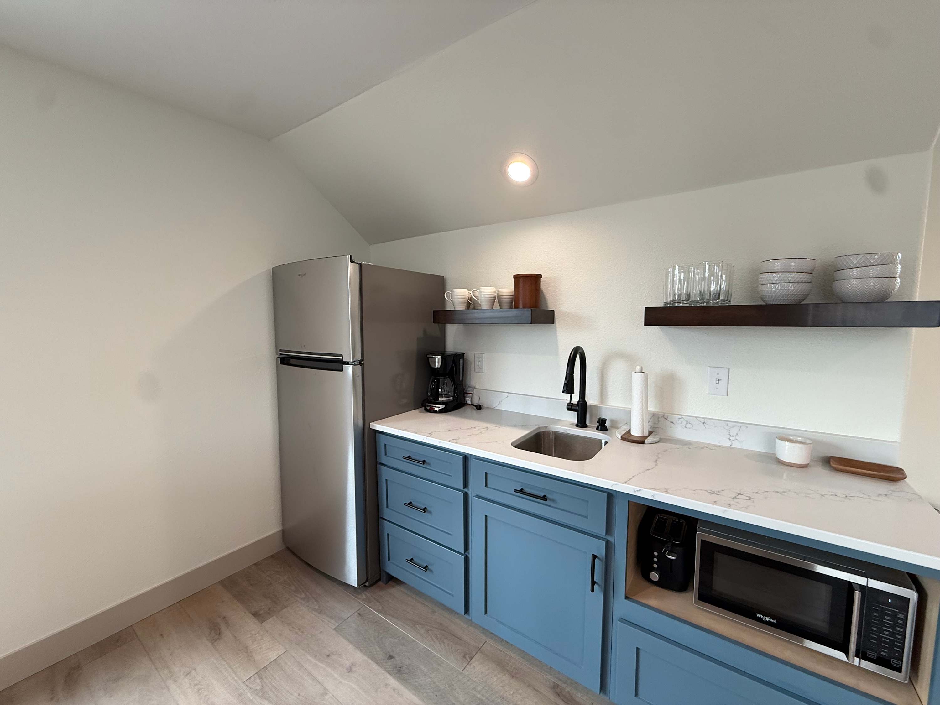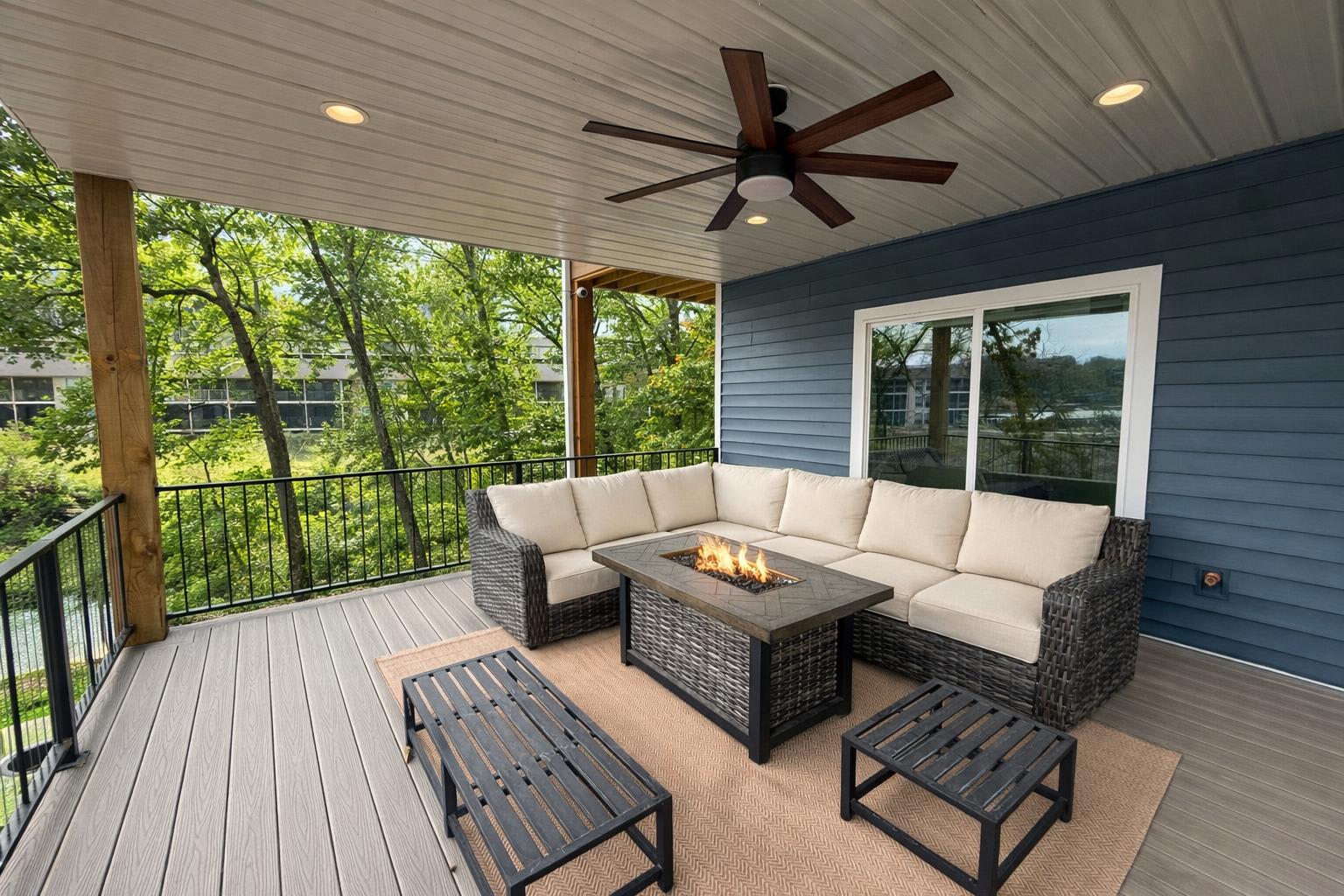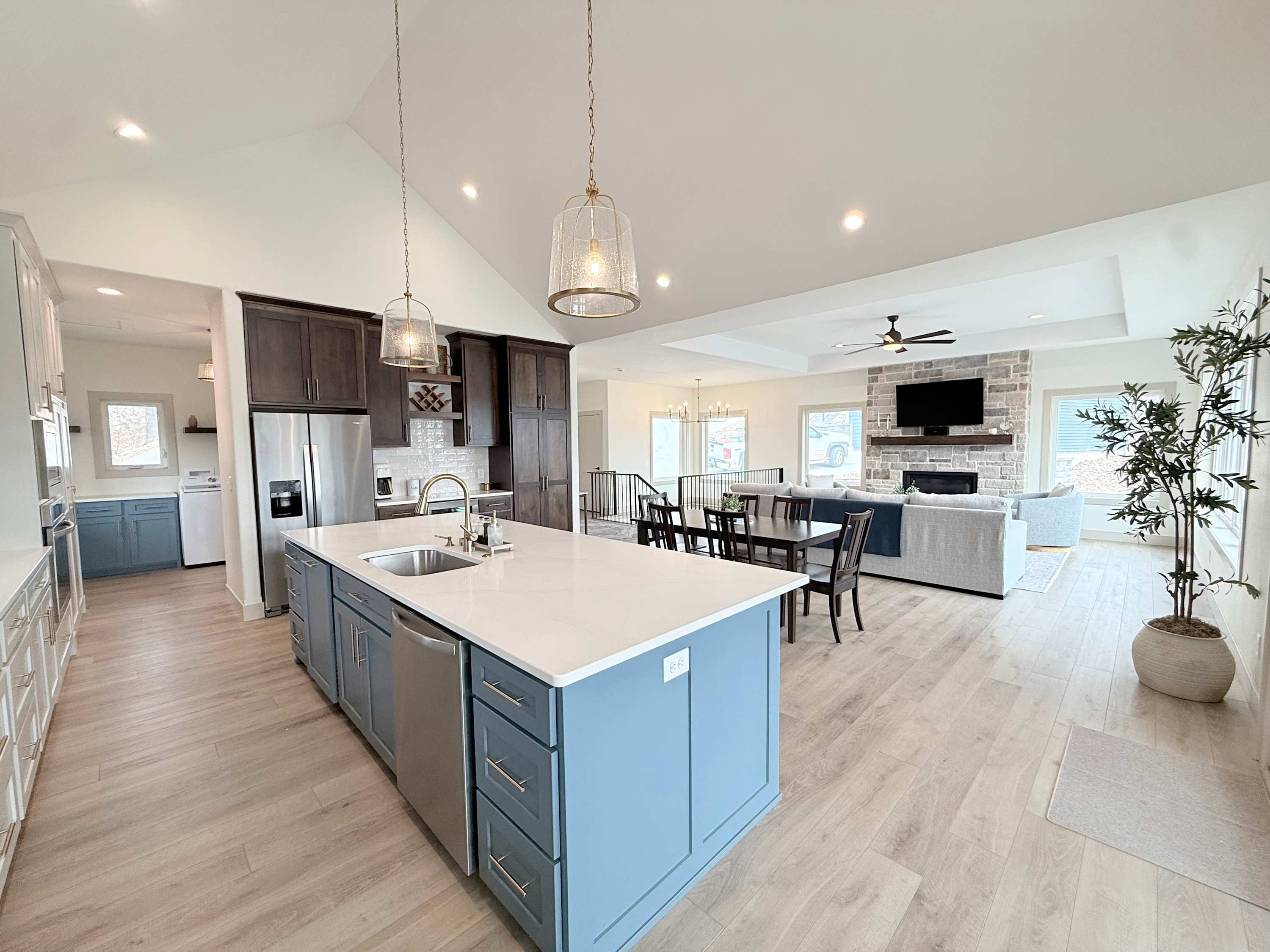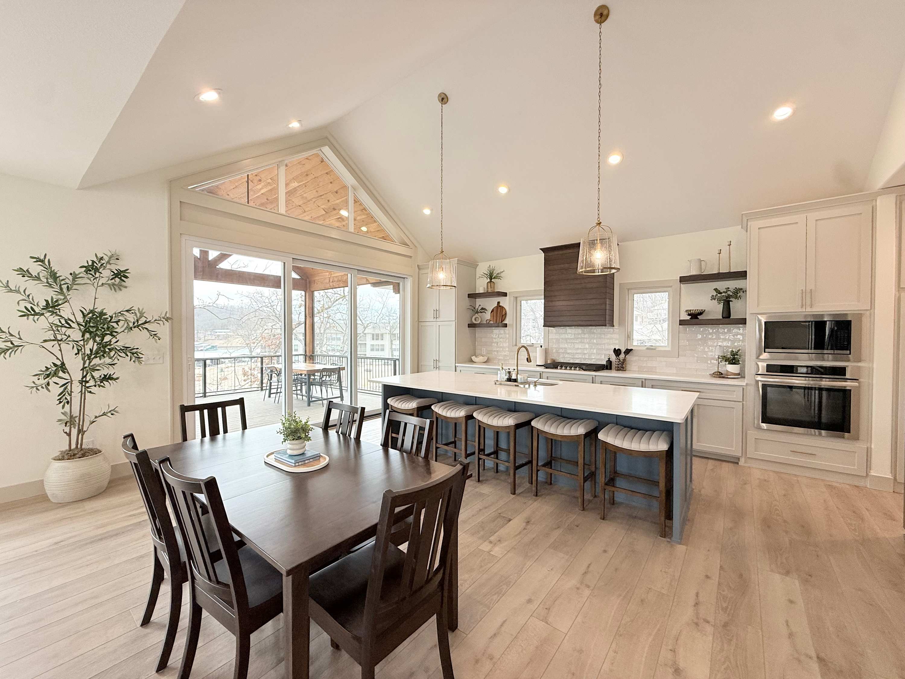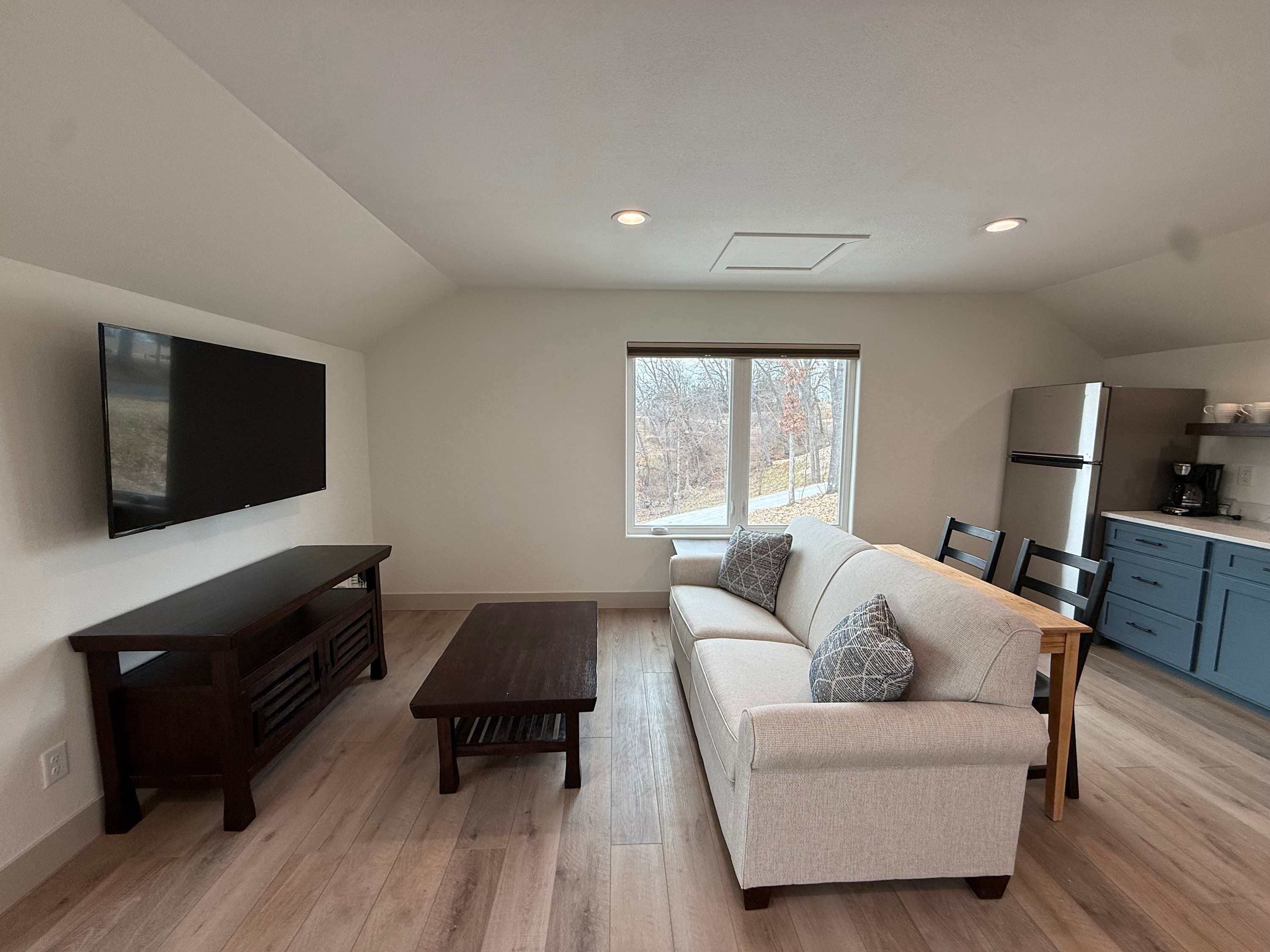 The home also includes a private onsite apartment, complete with its own living area, smart TV, seating, and kitchenette—ideal for guests who want a little extra privacy. At The Blue Sapphire, every detail is designed to create a relaxing, memory-filled lake getaway.