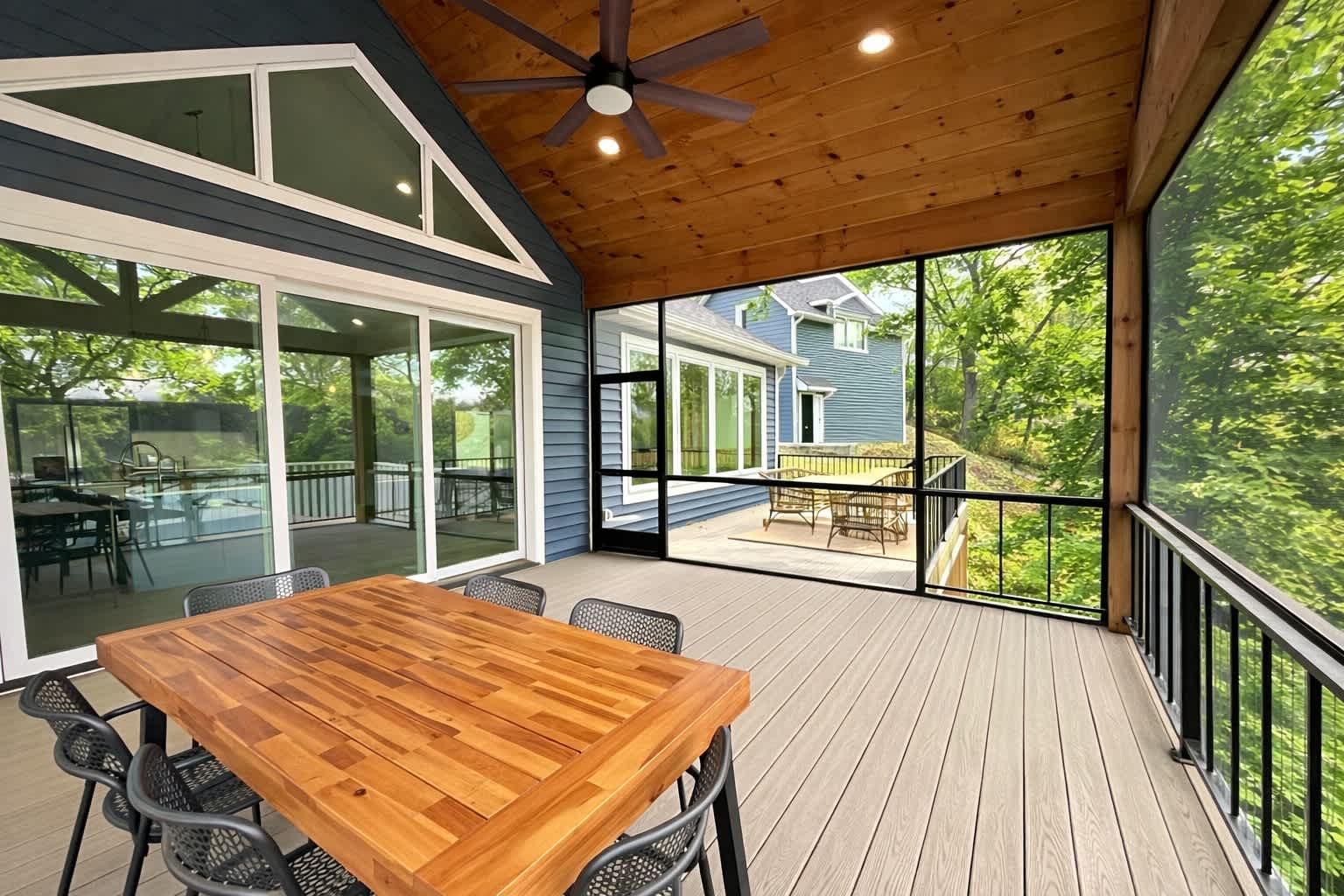 o (6) located on the corner of the upper deck monitoring the entrance to the screened in porch.