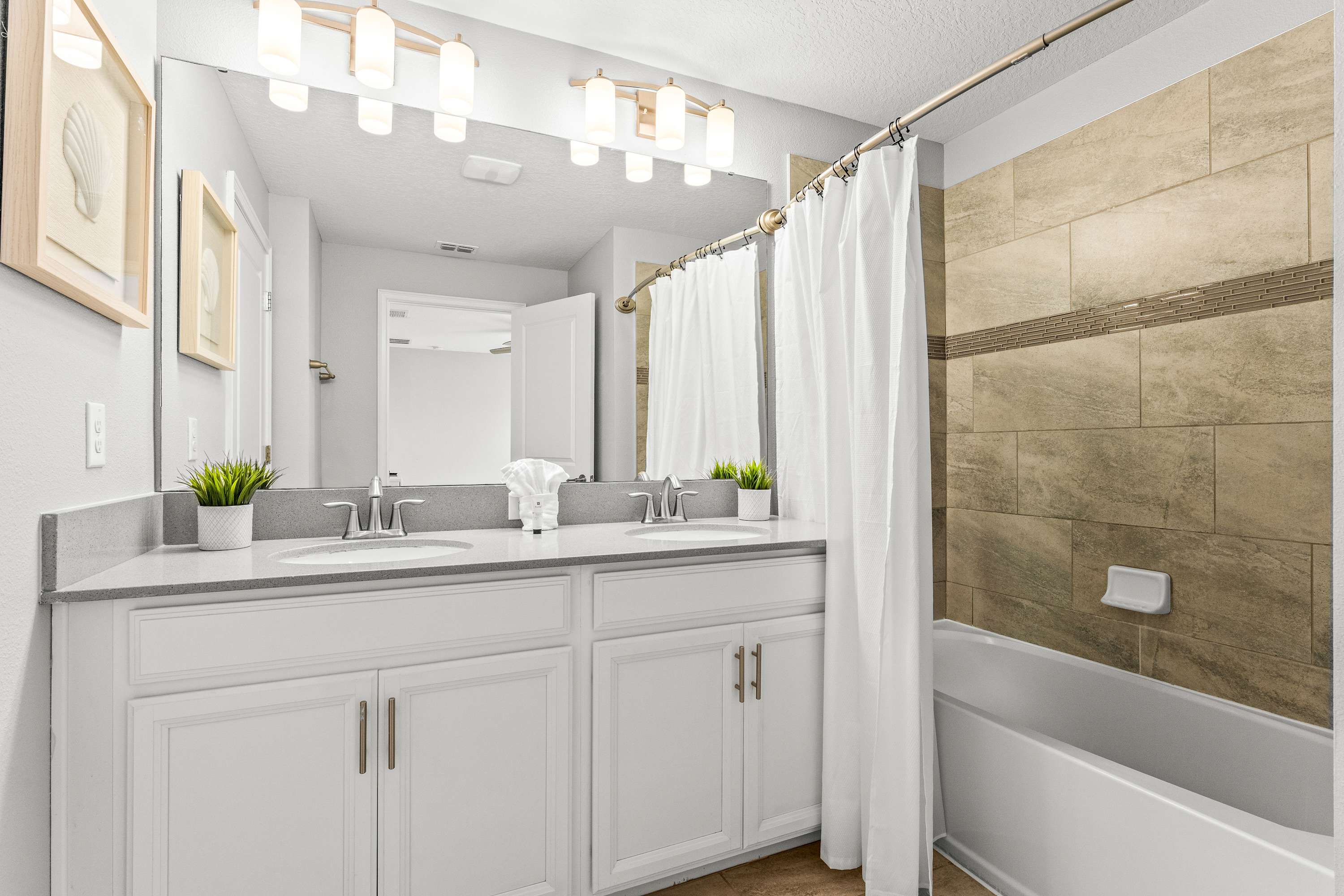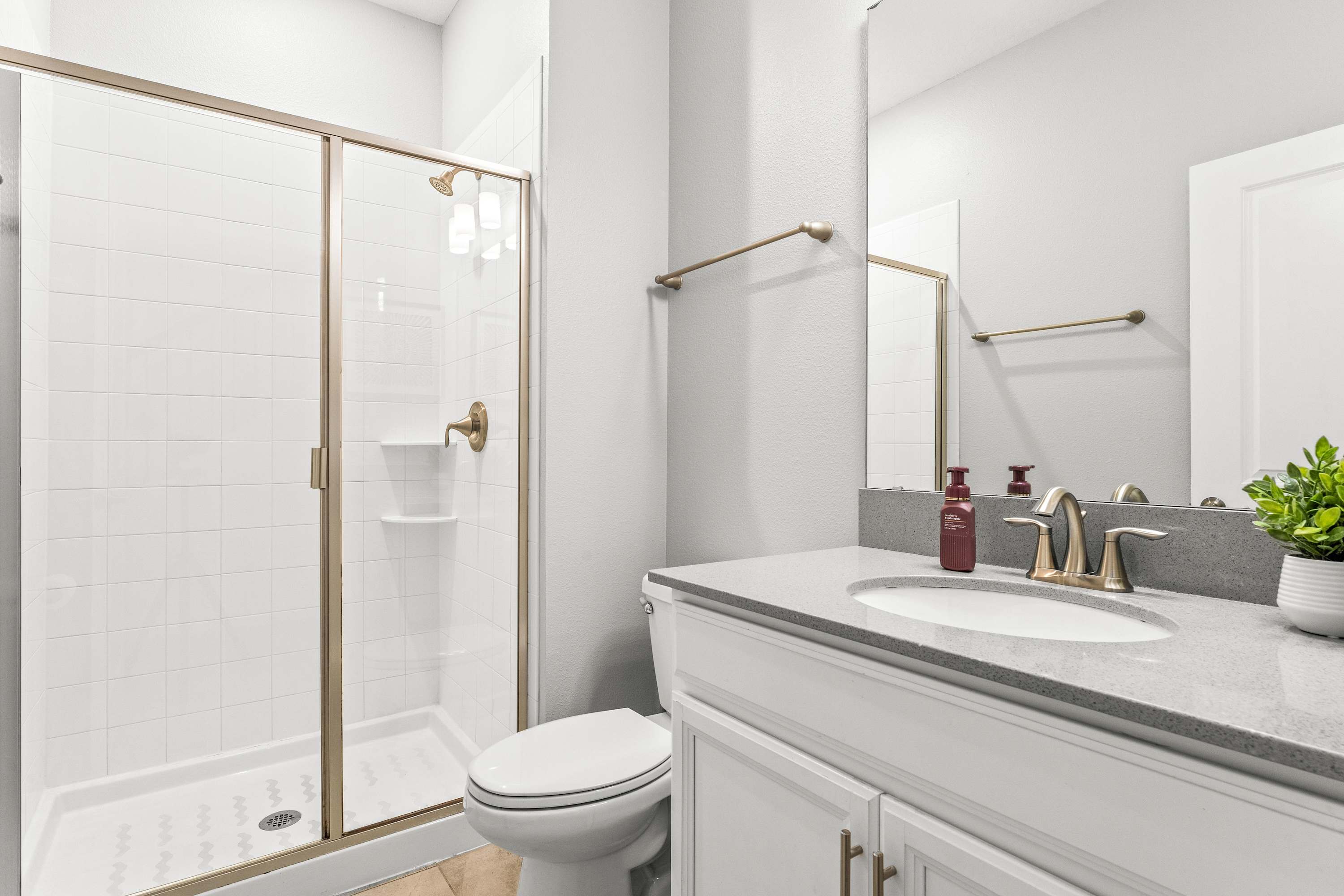 This home also includes 2 additional full guest bathrooms, one with a single vanity and a walk-in shower, another with a dual vanity and a walk-in shower.