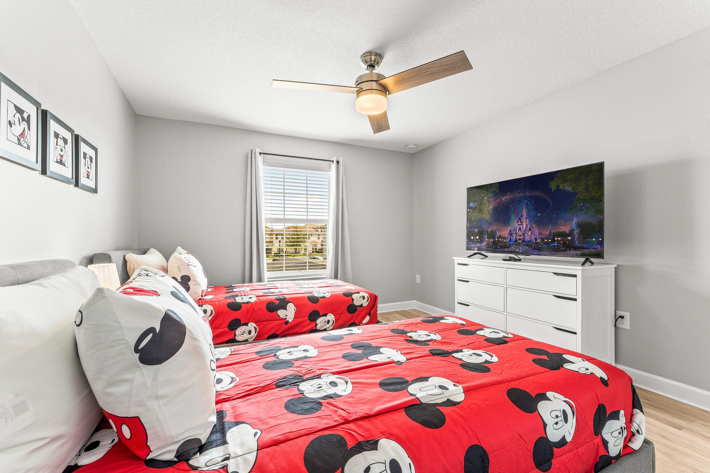 Bedroom #3 is Mickey themed and include 2 twin size beds and a smart TV.