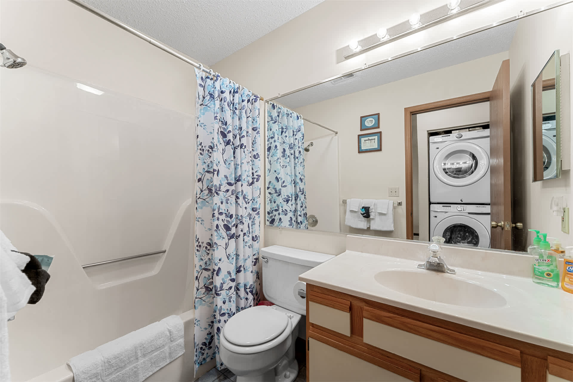 This home includes a full guest bathroom with a single vanity and a shower/tub combo.