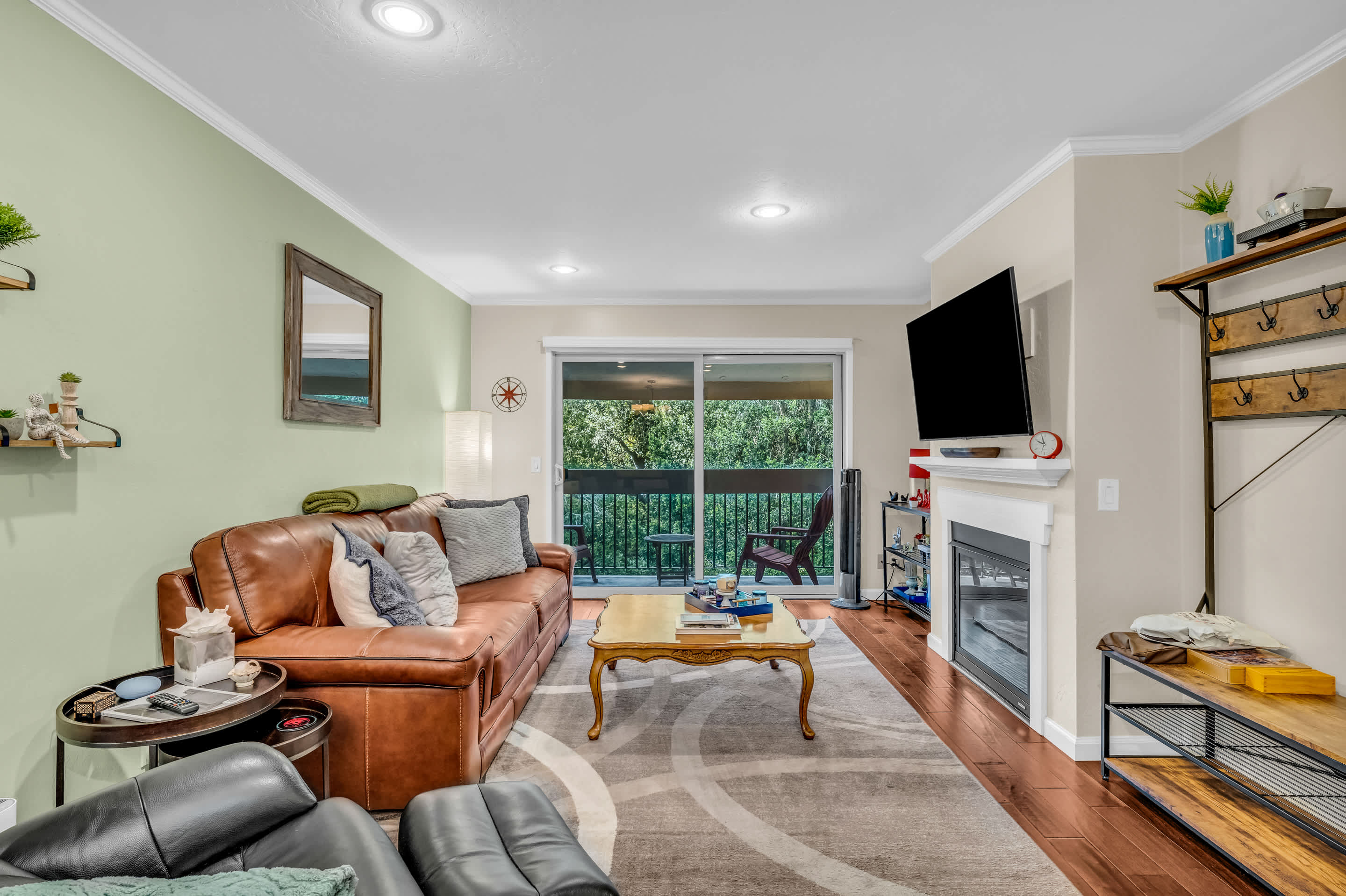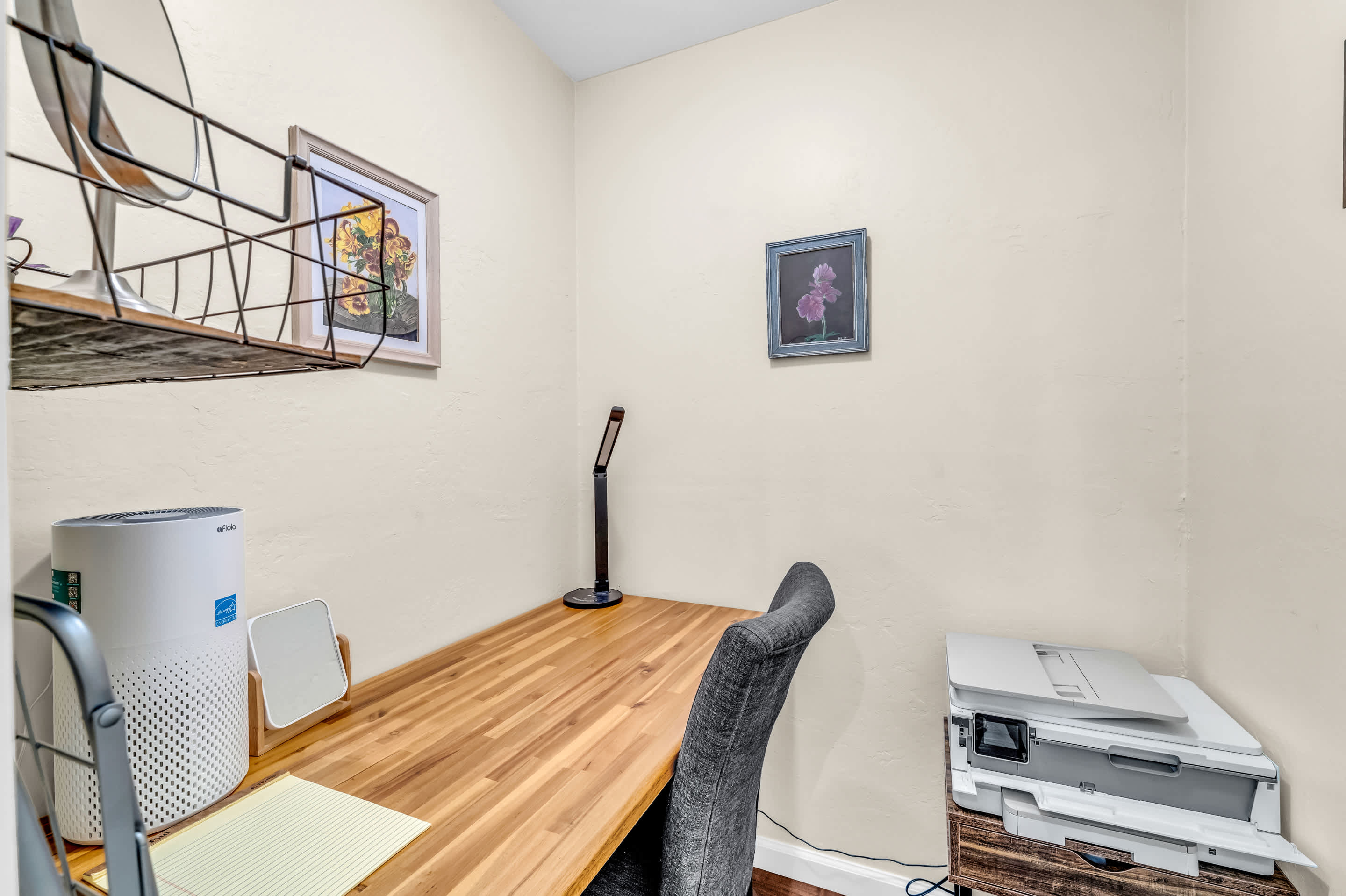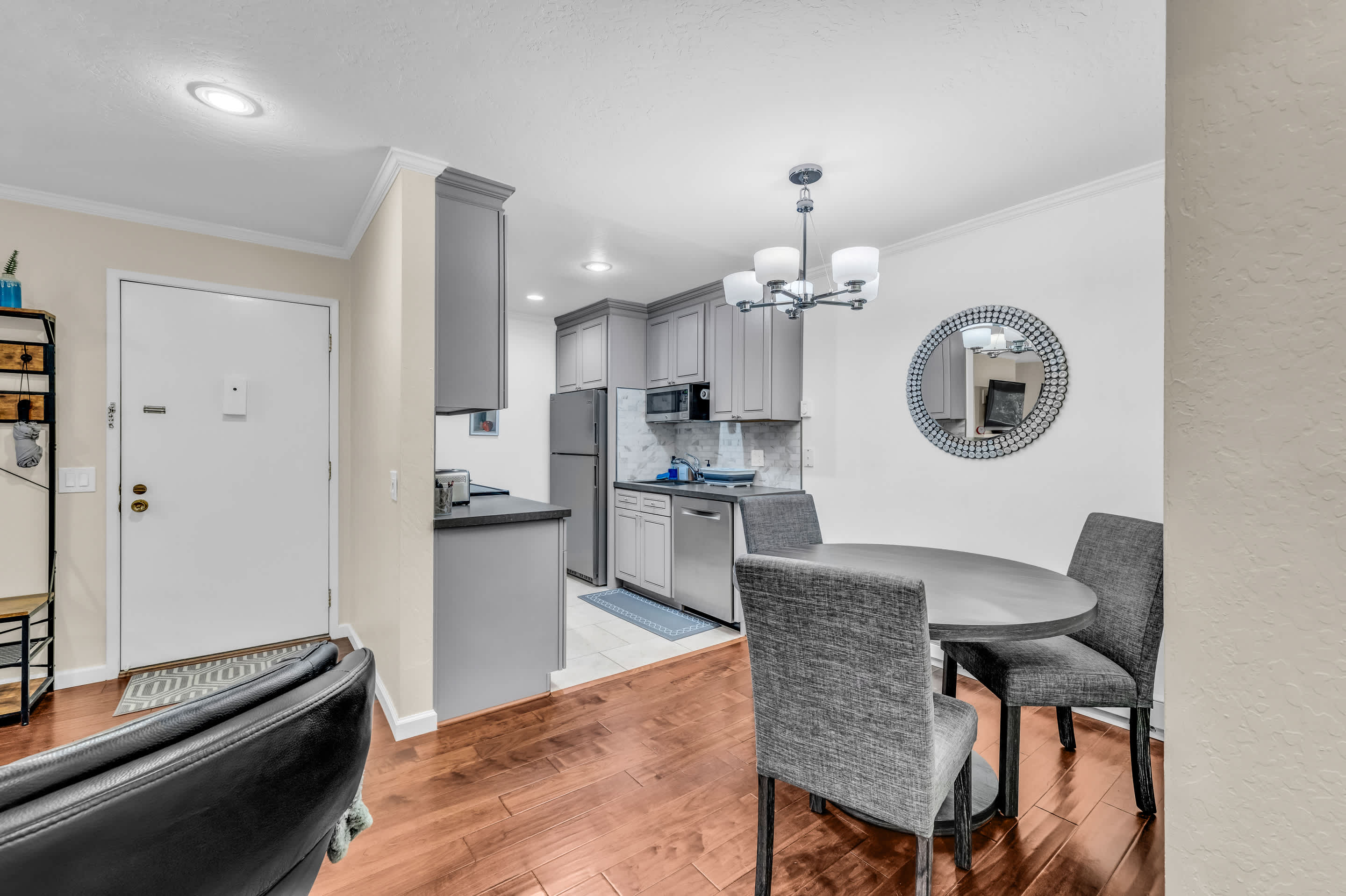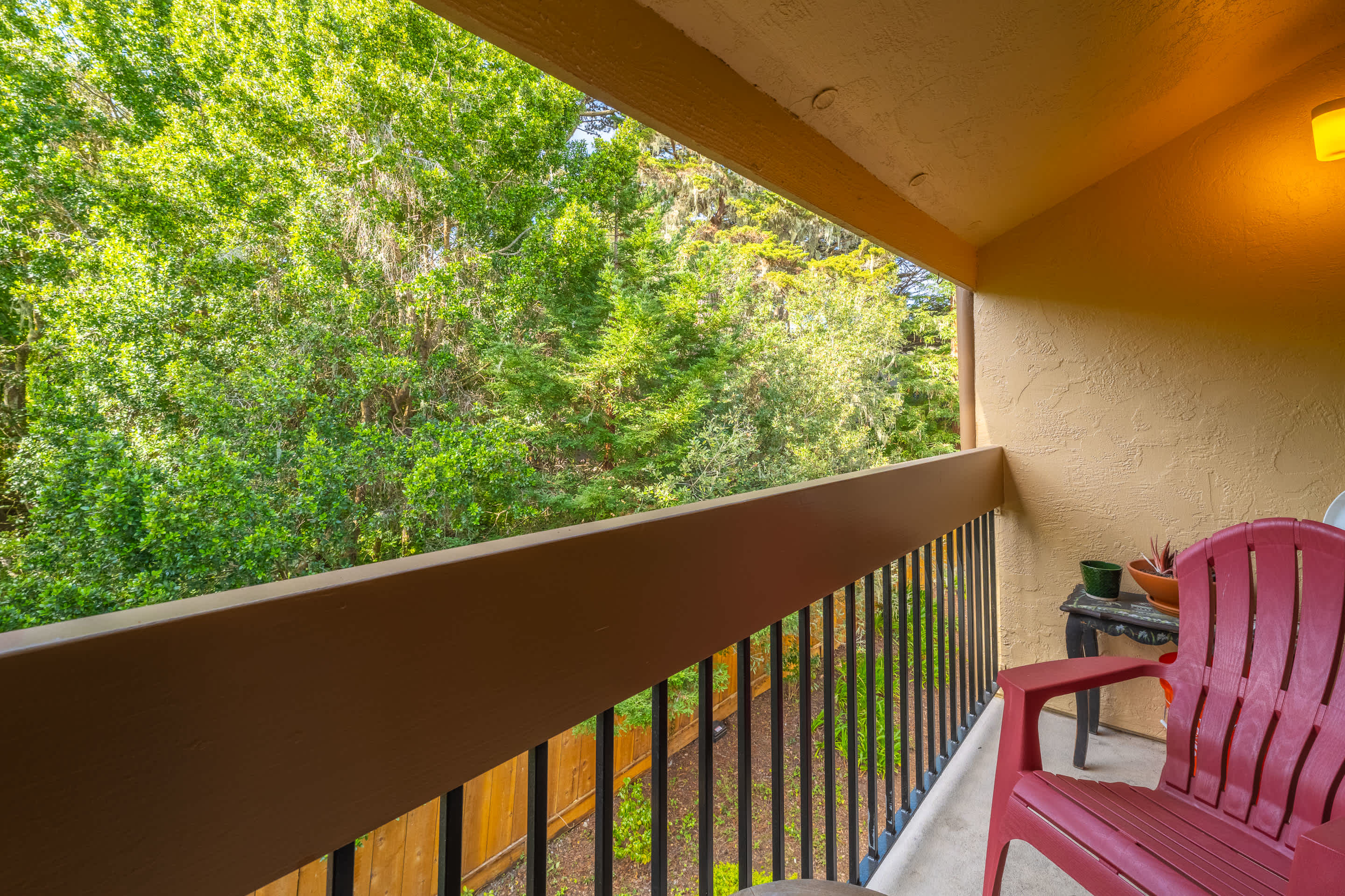As you arrive, you’re welcomed into a cozy, thoughtfully designed retreat. The quaint kitchen is fully equipped with stainless steel appliances and a Keurig coffee maker, making mornings easy and inviting. A dining table for three creates an intimate setting for meals, while a semi-private office nook offers the perfect space to catch up on work or plan your next adventure. The living room feels warm and inviting with a plush couch, chair, smart TV, and an indoor fireplace—ideal for relaxing evenings. From here, step out onto the private balcony to enjoy fresh coastal air, completing a stay that feels both comfortable and effortlessly relaxing.