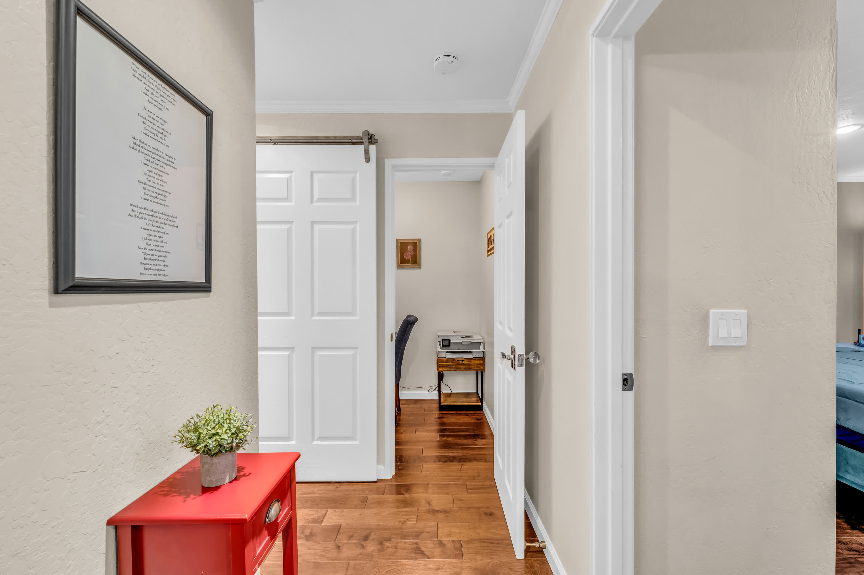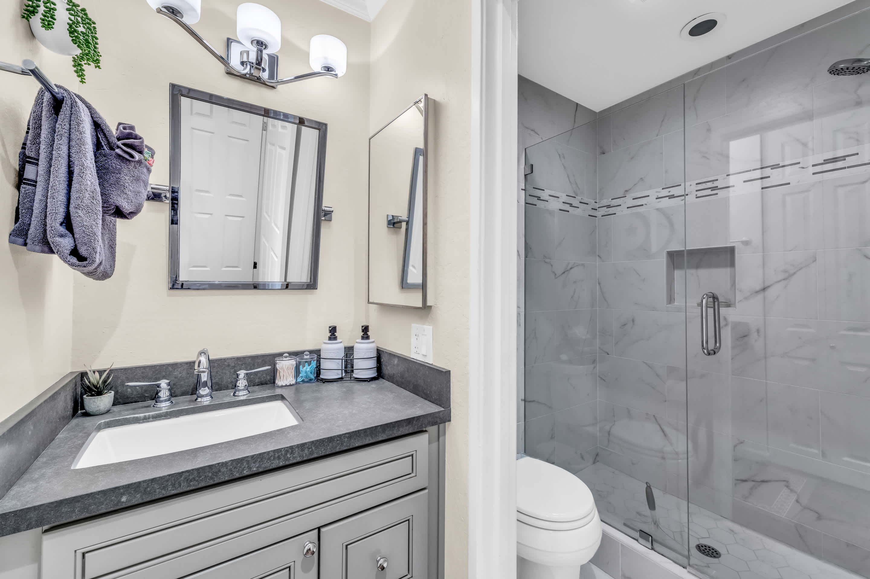 This home includes a full guest bathroom with a single vanity and walk-in shower.