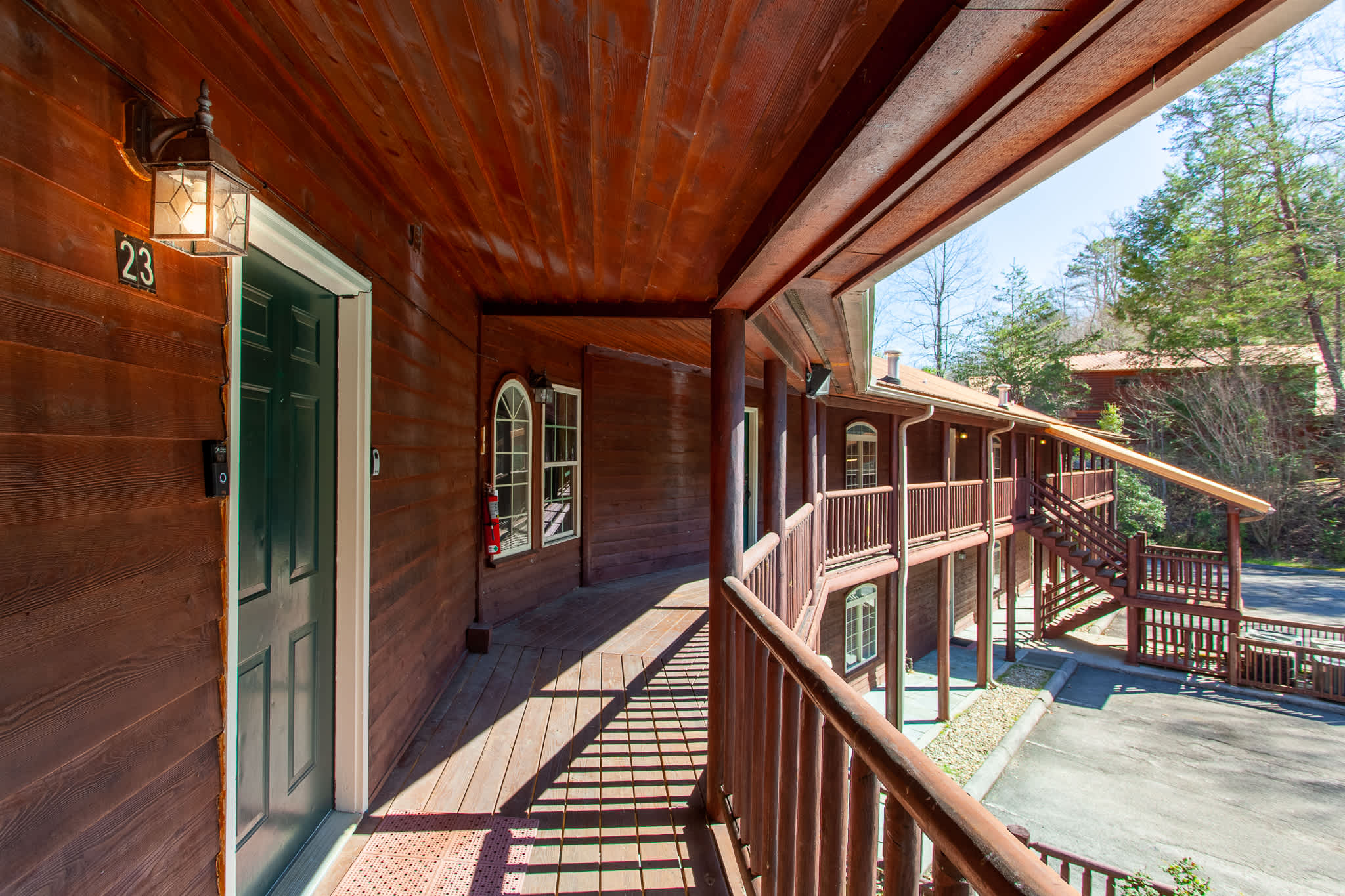 • Parking: Drive through the resort to the rear driveway and park in one of the two dedicated free spots before heading to the second-floor unit. No additional parking beyond what’s described.