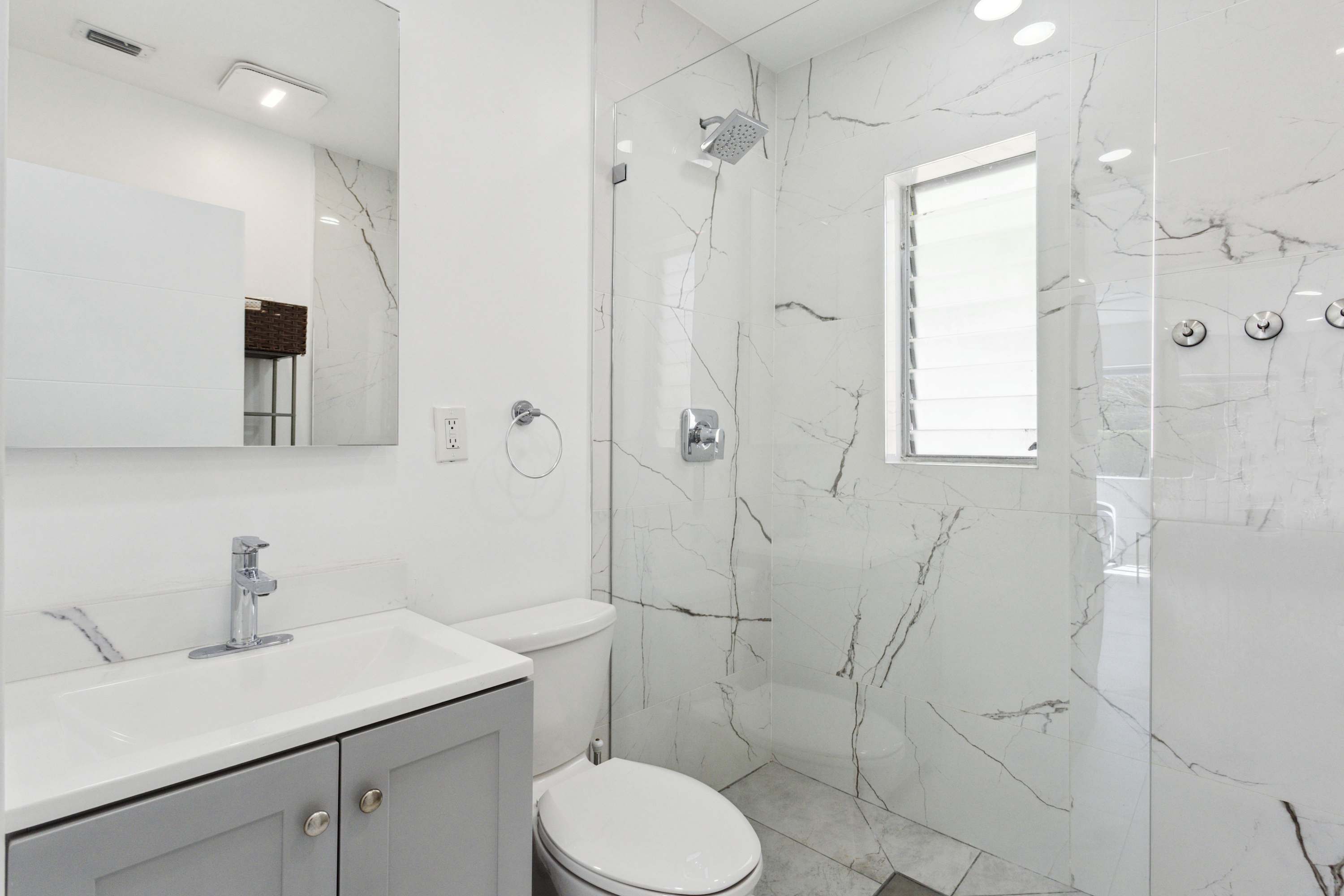 This home also includes a full bathroom with a single vanity and a walk-in shower.