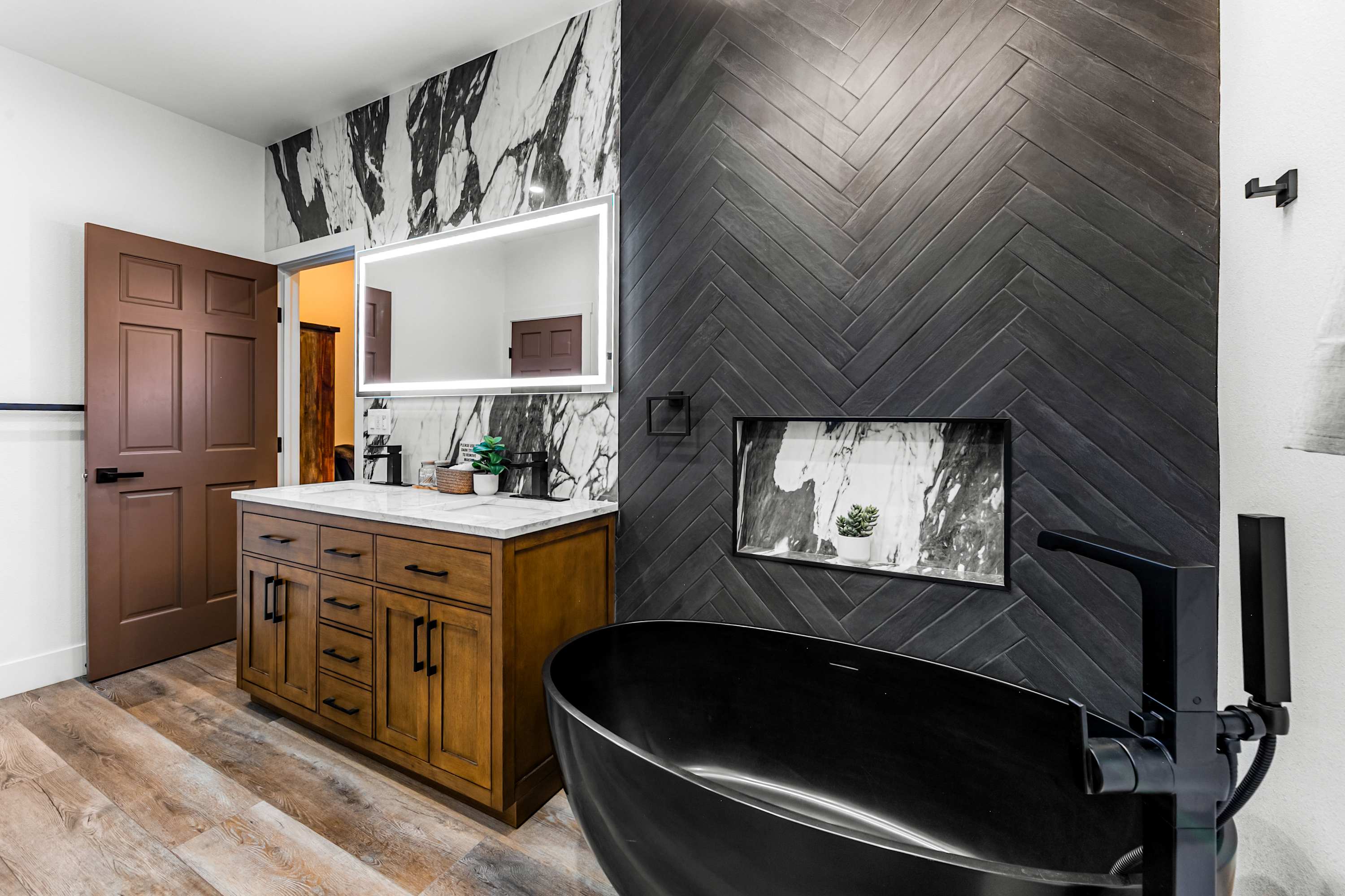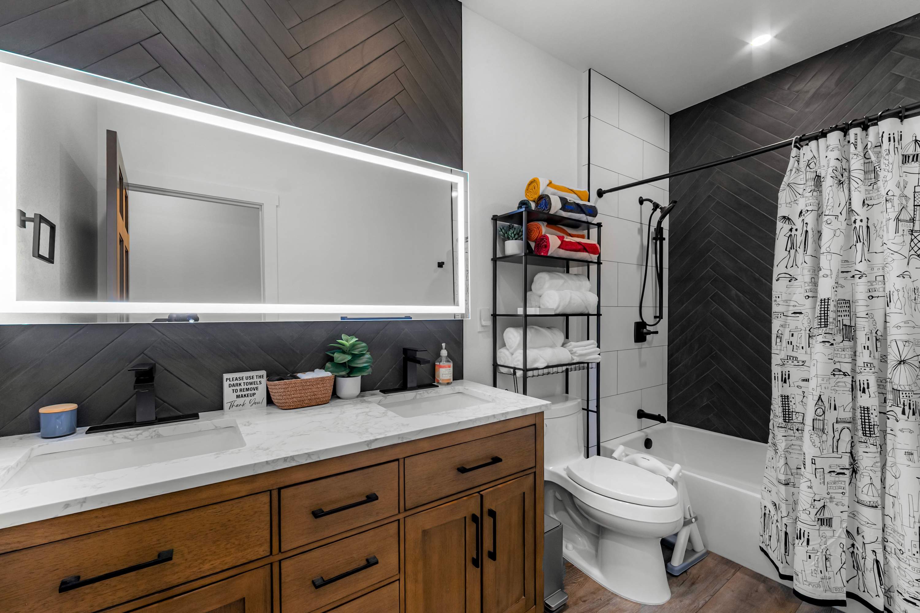 This home includes an additional full bathroom with a dual vanity and a shower/tub combo.
