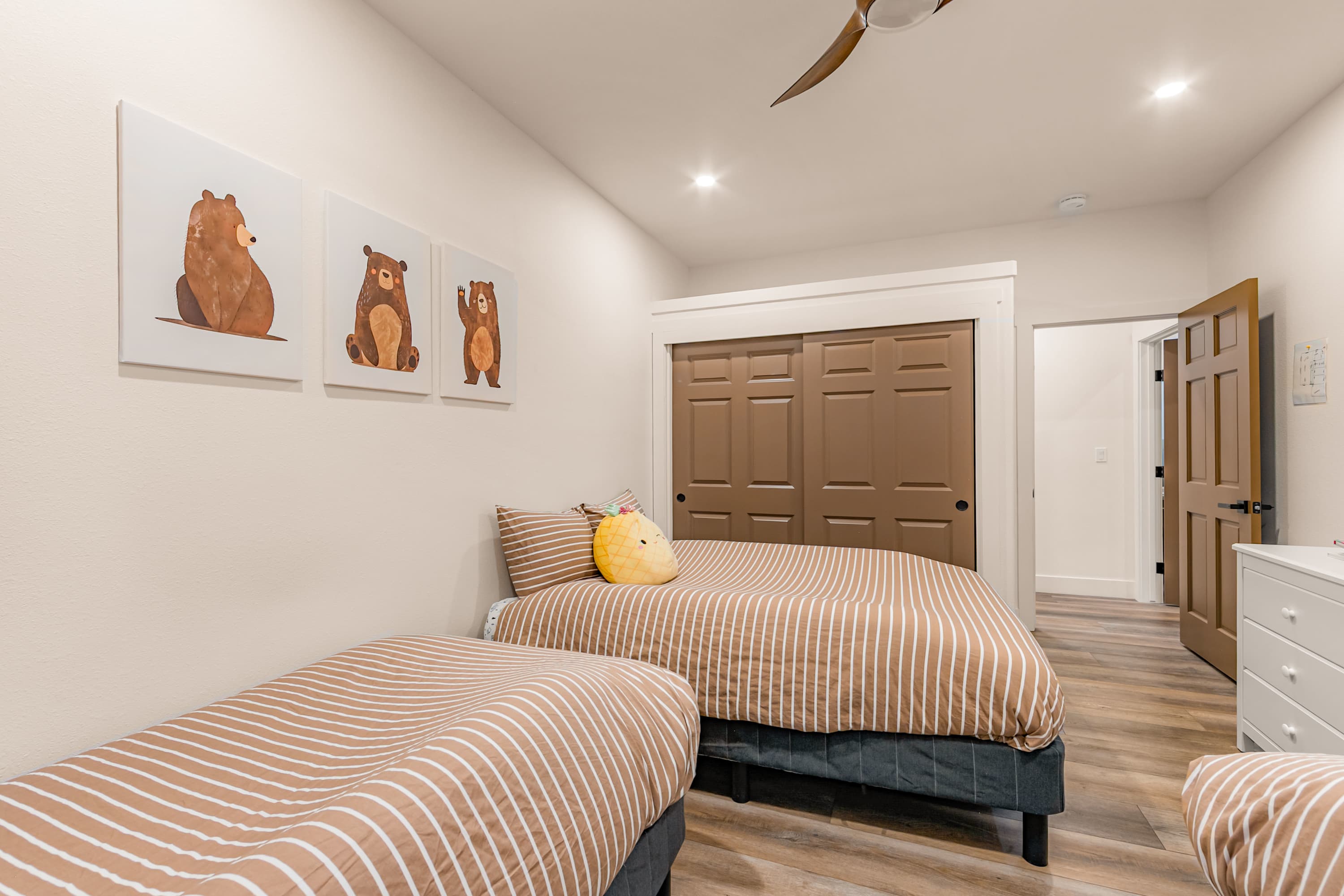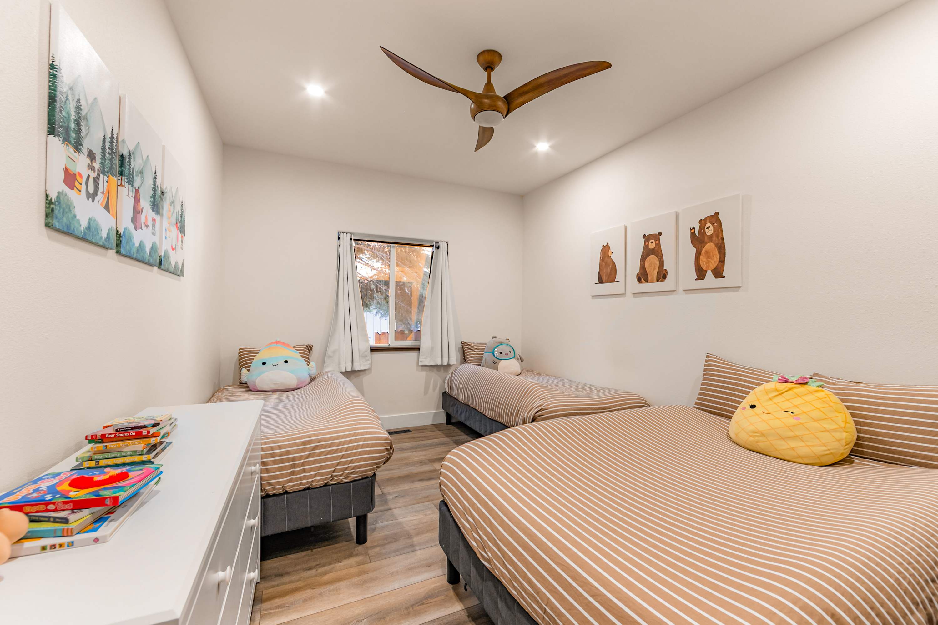 Bedroom #2 includes 2 twin size beds and a full size bed.