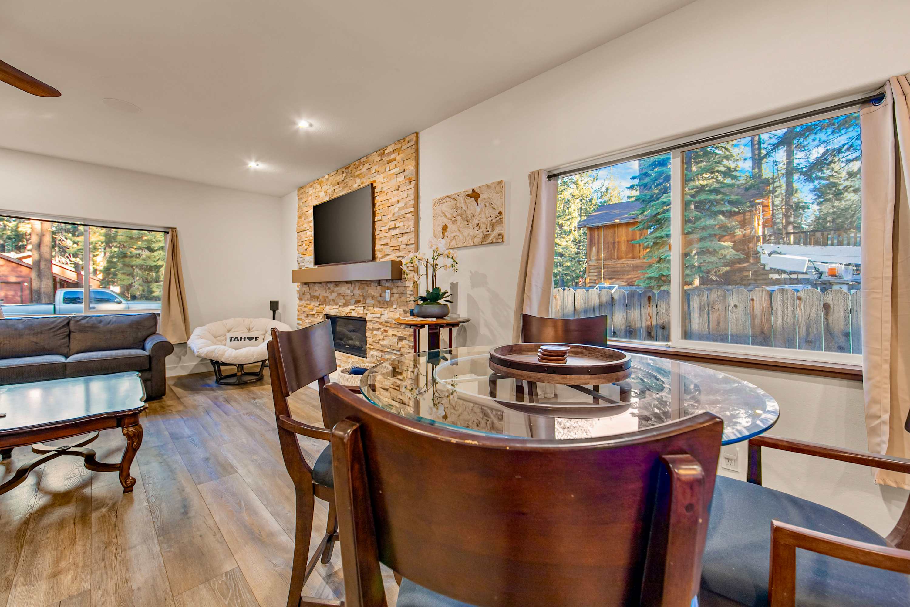 Nestled in the heart of South Lake Tahoe, Tres Ositos places you perfectly between mountain adventure and lakeside relaxation. Just minutes from the crystal-clear waters of Lake Tahoe and world-class skiing at Heavenly Mountain Resort, this location offers year-round excitement. Spend your days hiking scenic trails, hitting the slopes, or exploring the shops and restaurants in nearby Heavenly Village before returning to your own private retreat in the pines.