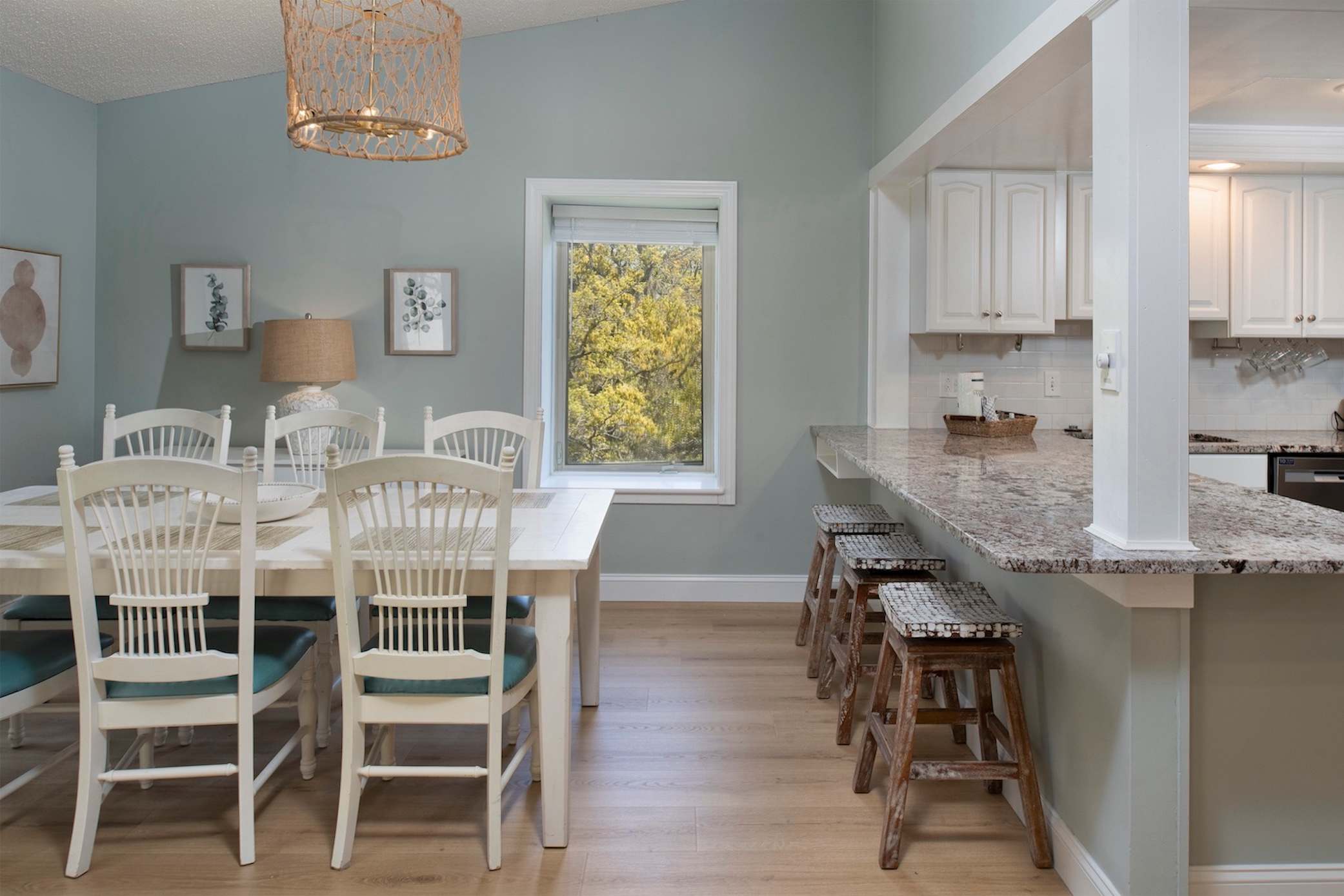 • Dining table seating for 6, plus bar seating for 3