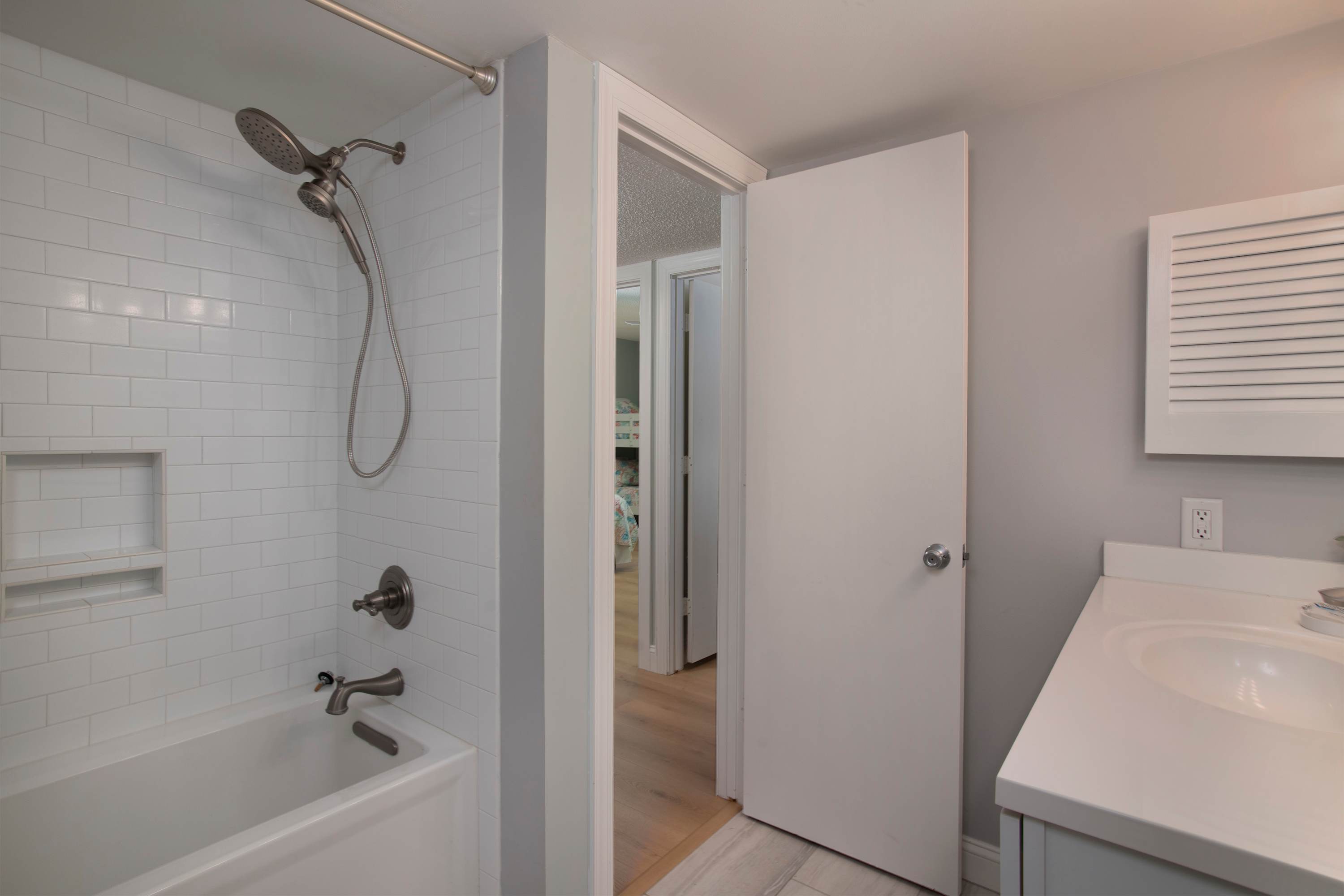 •Bathroom 2 (Hall/Shared): Single vanity and tub/shower combo