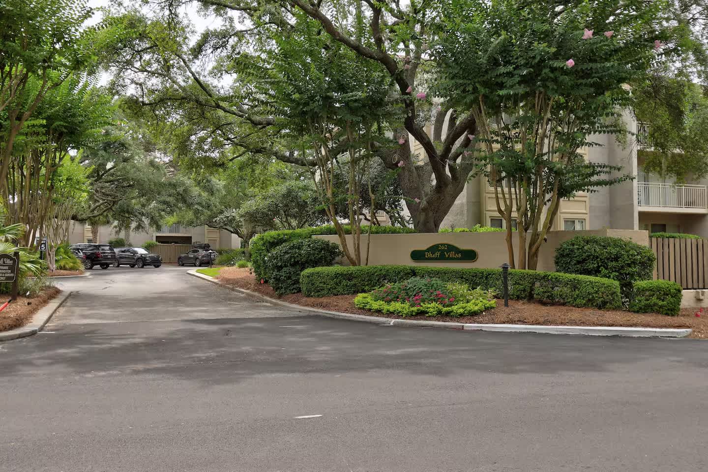 Settle into an open, inviting 3rd-floor villa with the largest 2-bedroom floor plan in Bluff Villas. The cathedral-ceiling living room offers a Smart TV, a full-size sleeper sofa, and sliding doors to a private balcony with outdoor seating and a slight peek of Calibogue Sound.