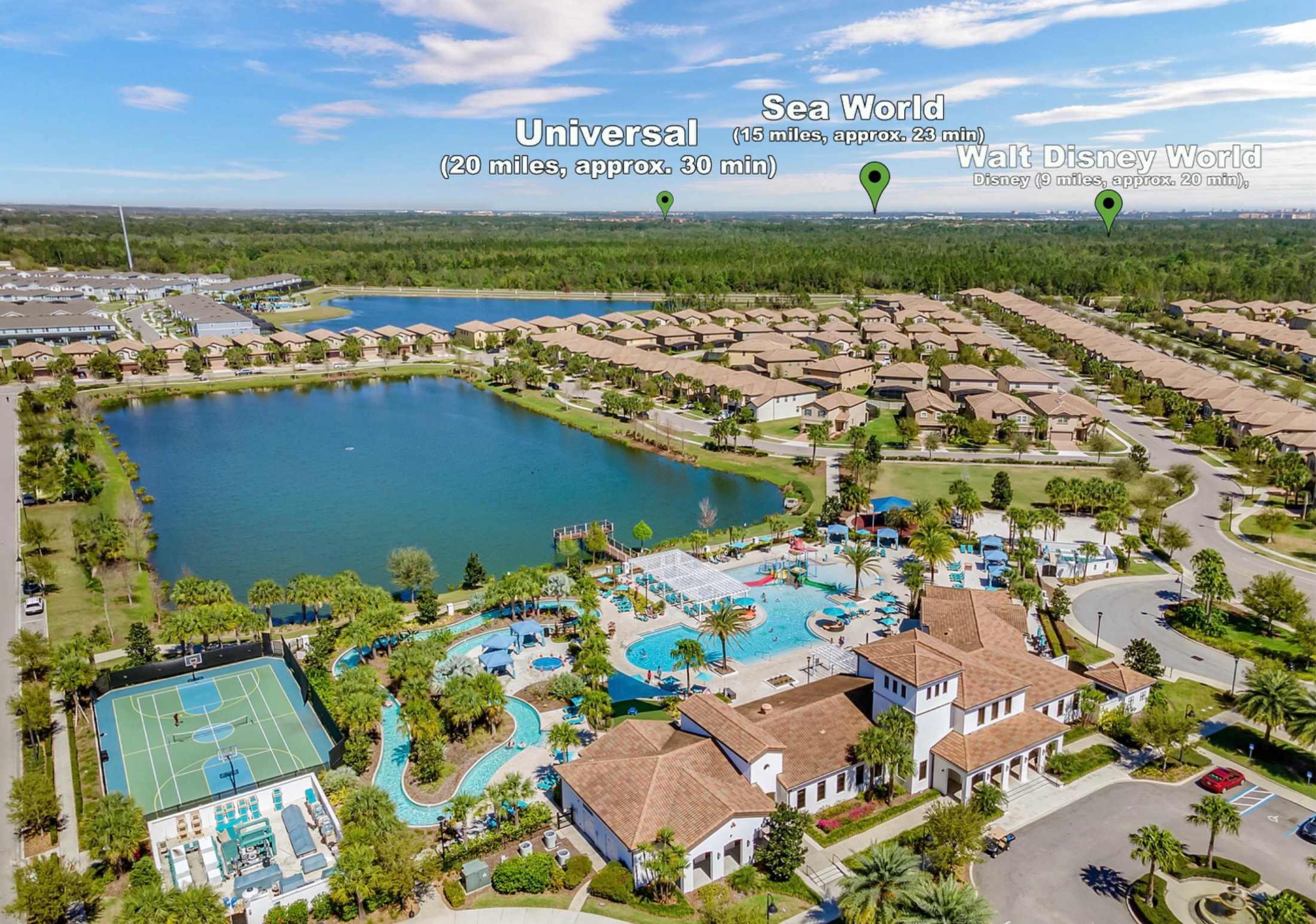 Legends Lounge at Windsor at Westside delivers a true resort-style escape just minutes from Orlando’s top attractions—and only a 3-minute walk to the main clubhouse. Spend your days floating along the lazy river, lounging by the resort pool, or enjoying the on-site restaurant, tiki bar, fitness center, and sports courts. This gated community blends the excitement of a full-service resort with the comfort and privacy of your own home, making it the perfect base for both relaxation and adventure.