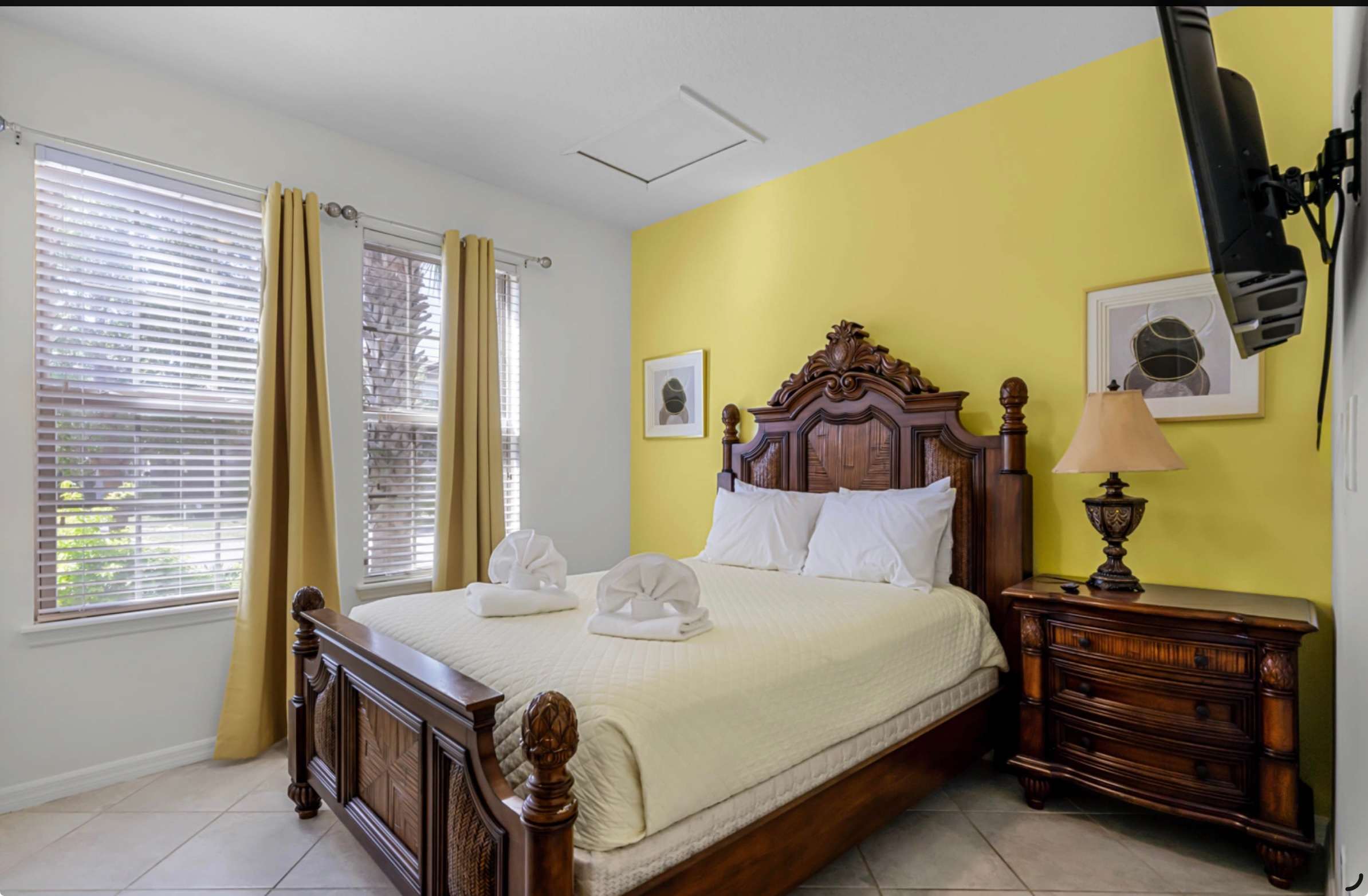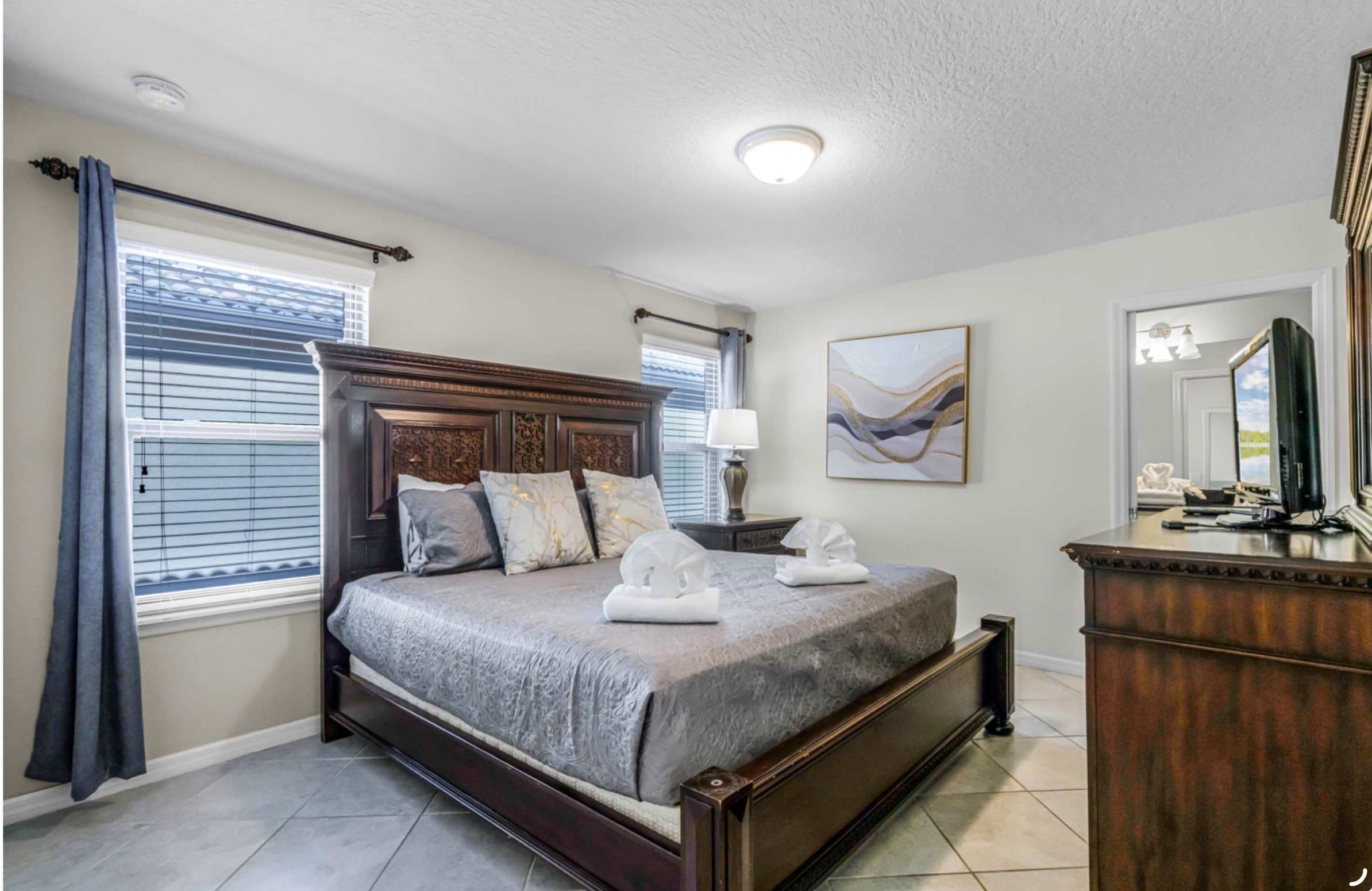 Bedroom #3 includes a king size bed, a smart TV, and an ensuite bathroom with a dual vanity and a walk-in shower.