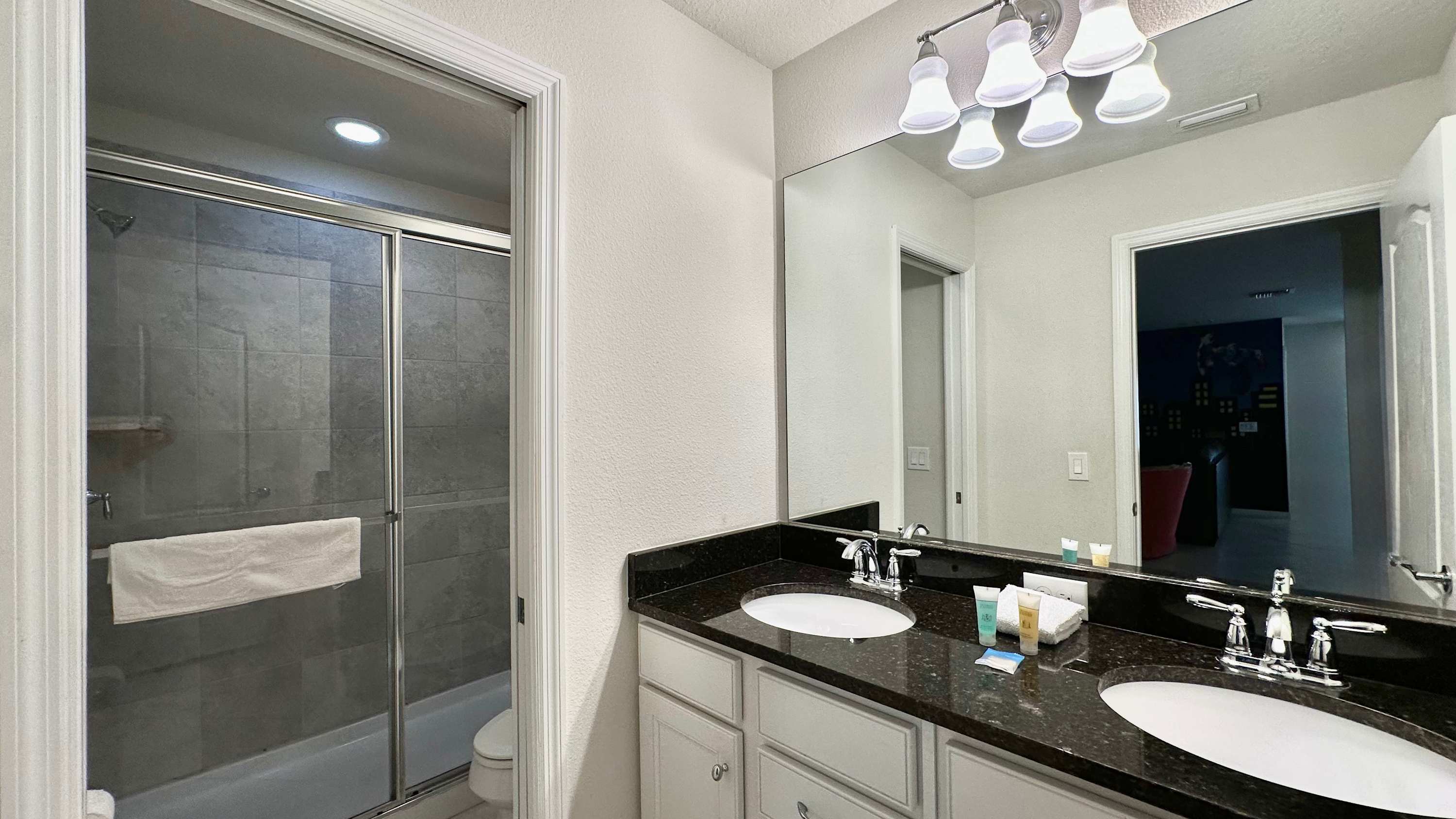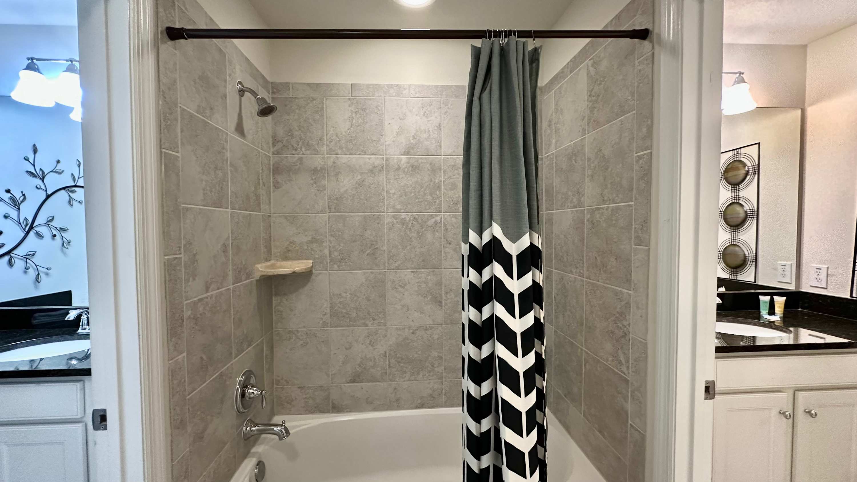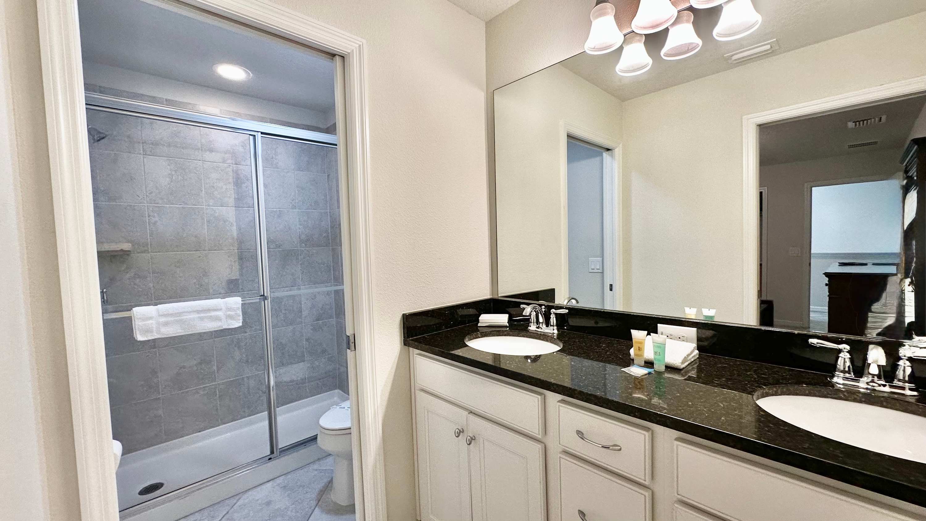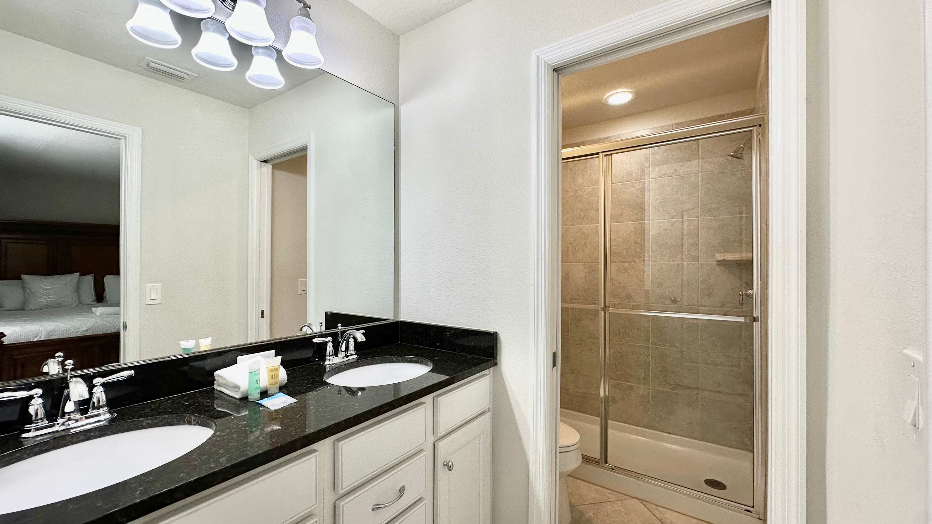 This home also includes 2 additional full guest bathrooms; one with a single vanity and a walk-in shower, and another with a dual vanity and a walk-in shower.
