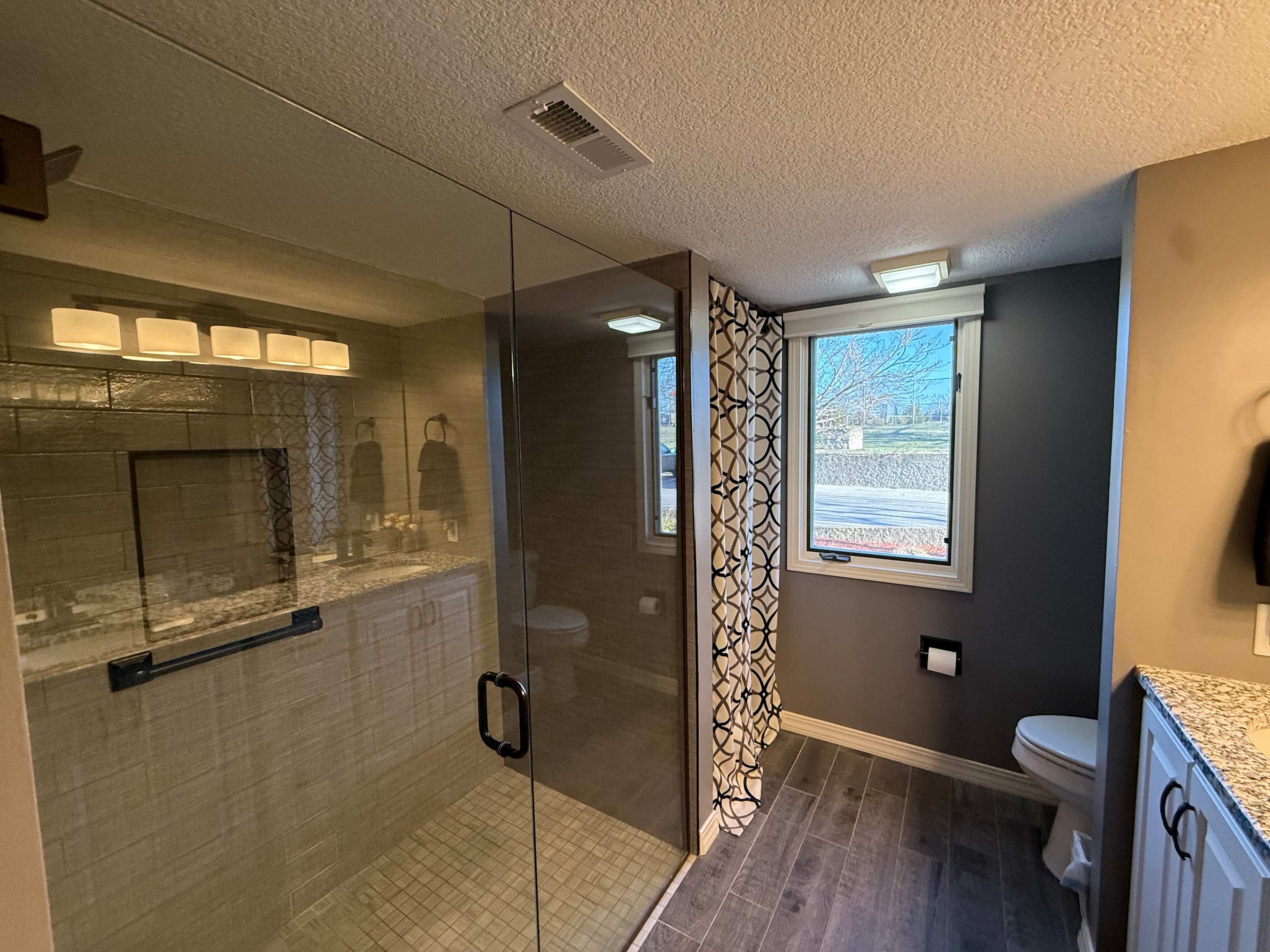 This home includes an additional full guest bathroom with a single vanity and a shower/tub combo.