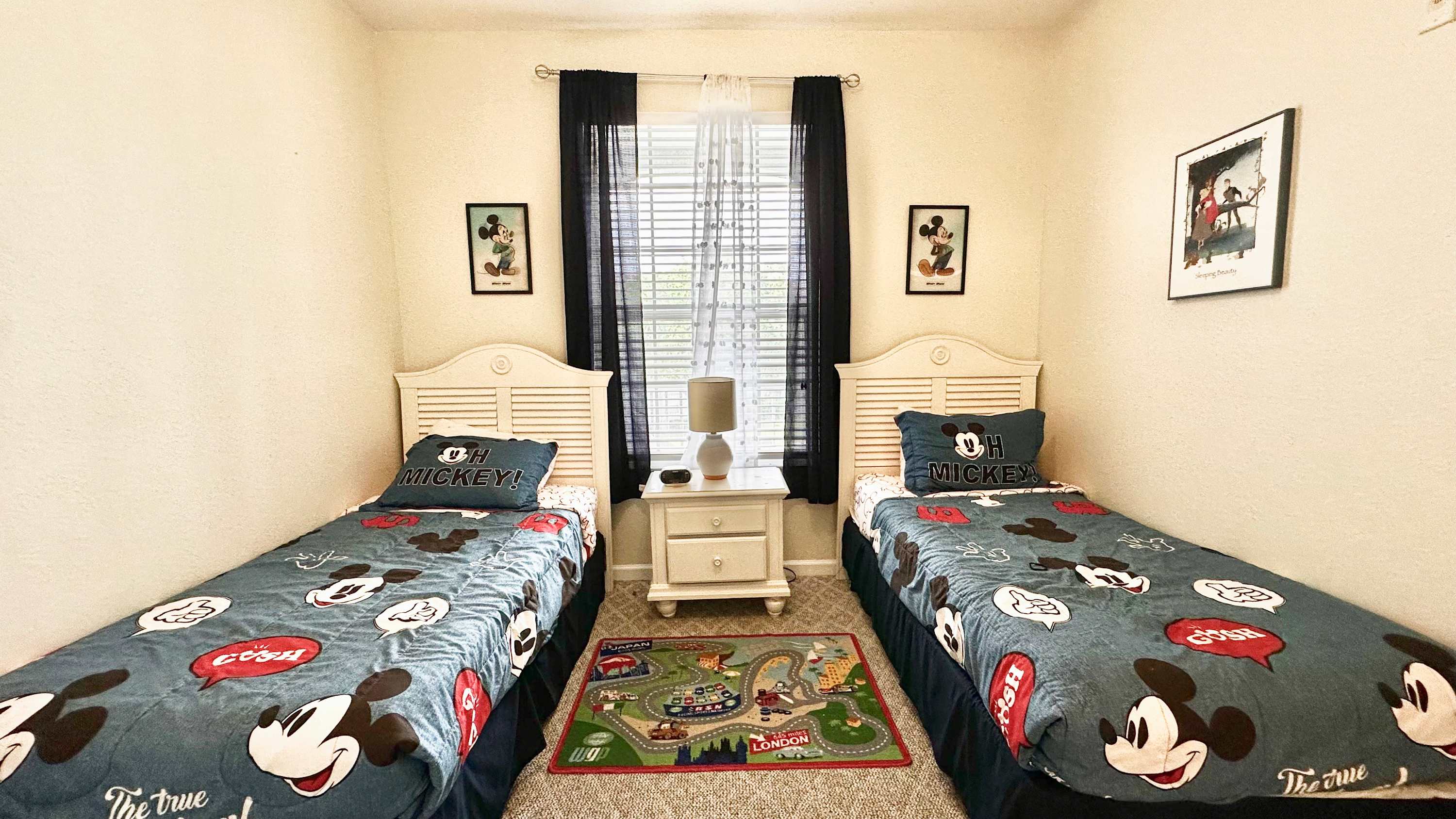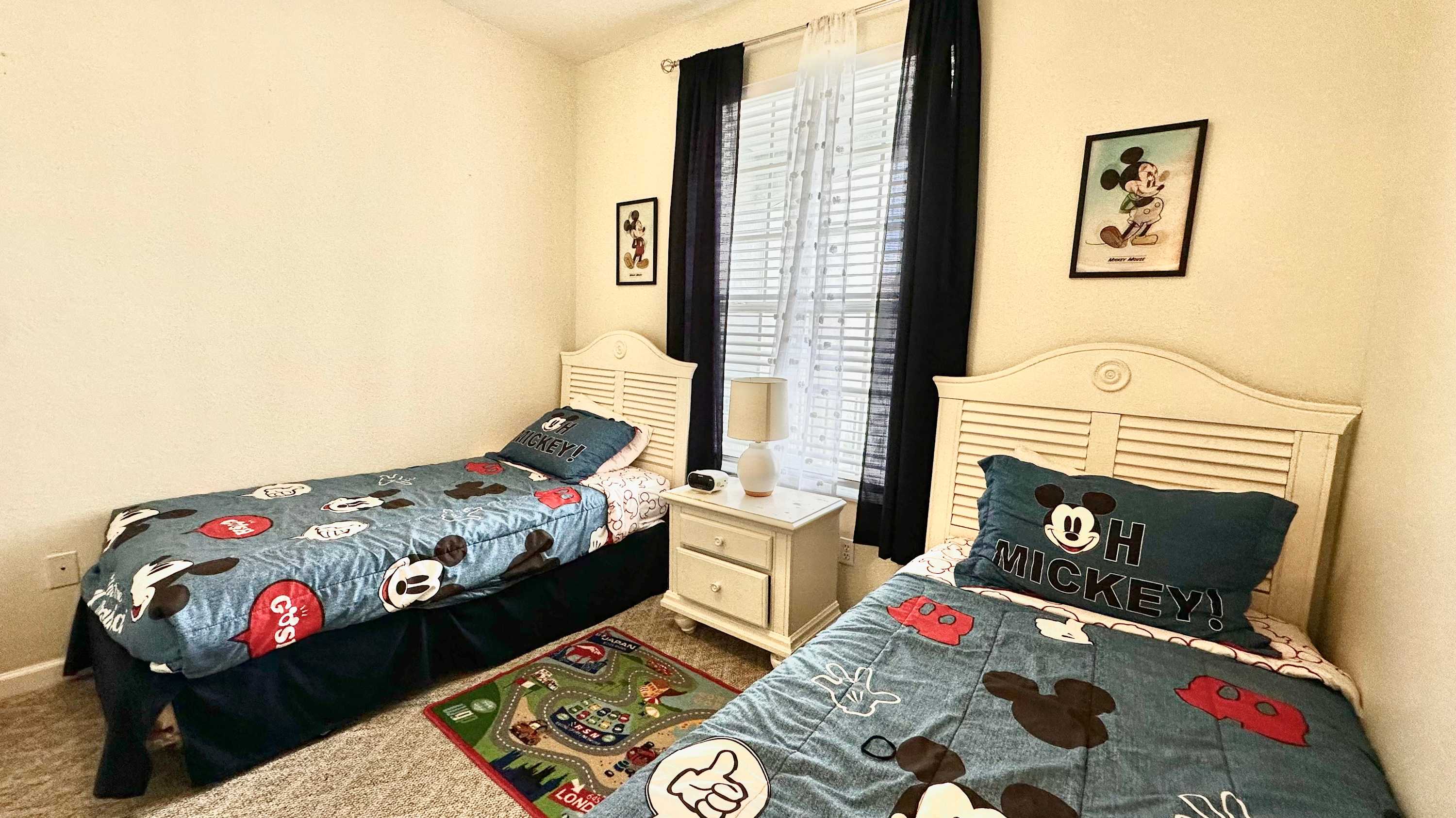 Bedroom #2 is Mickey themed and includes 2 twin size beds and a cable TV.