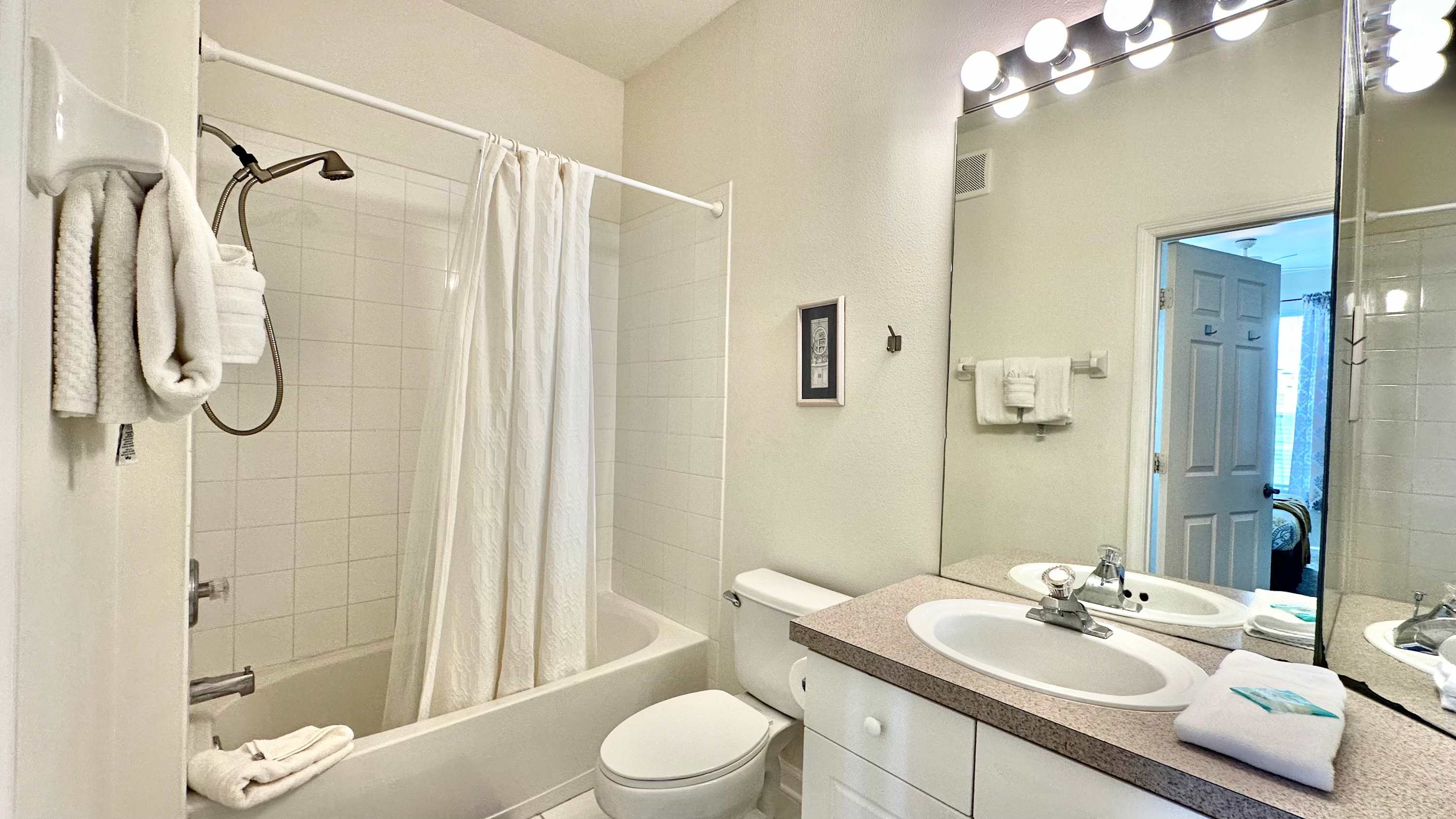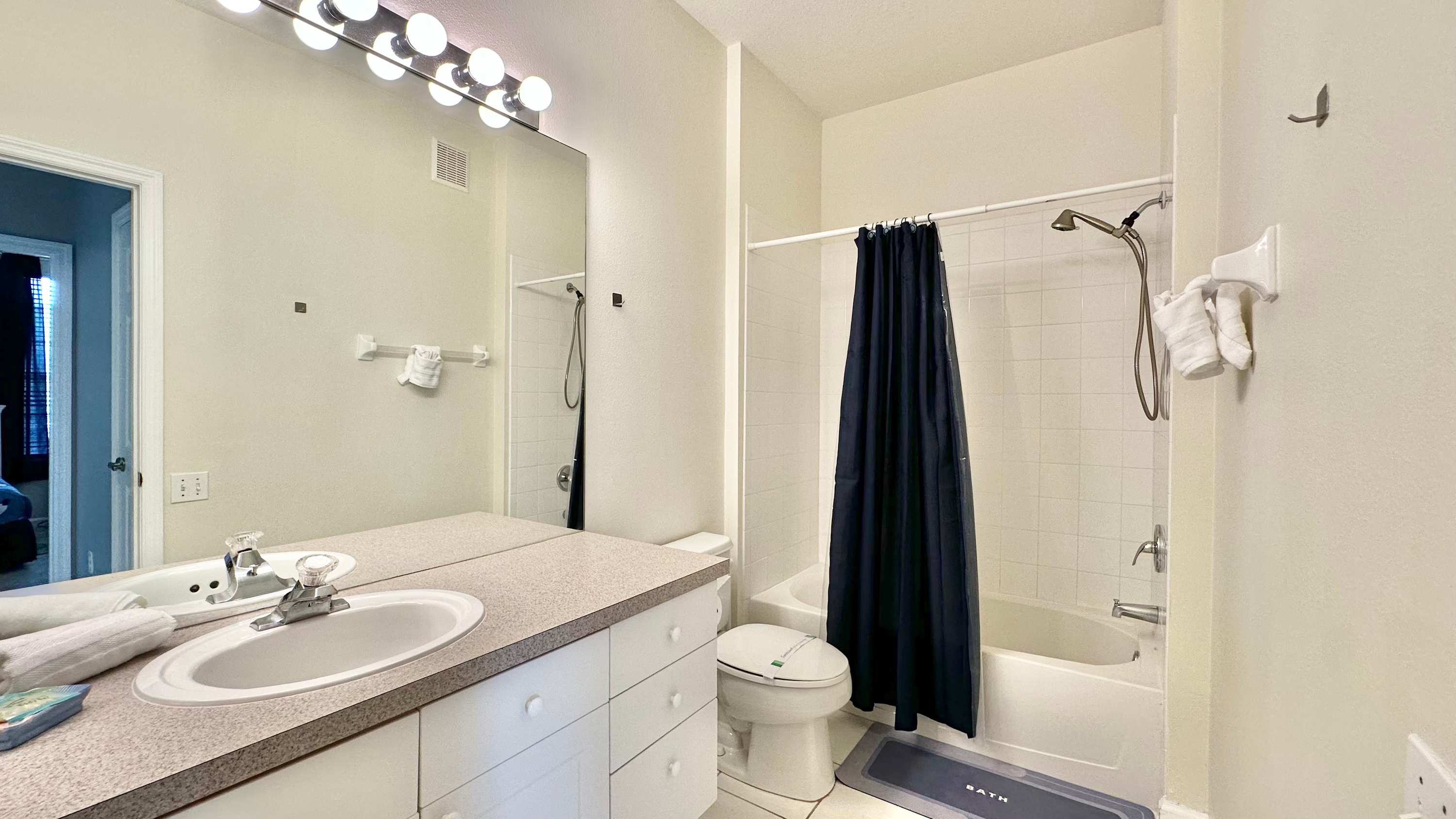 This home also includes an additional full guest bathroom with a single oversized vanity and a shower/tub combo.
