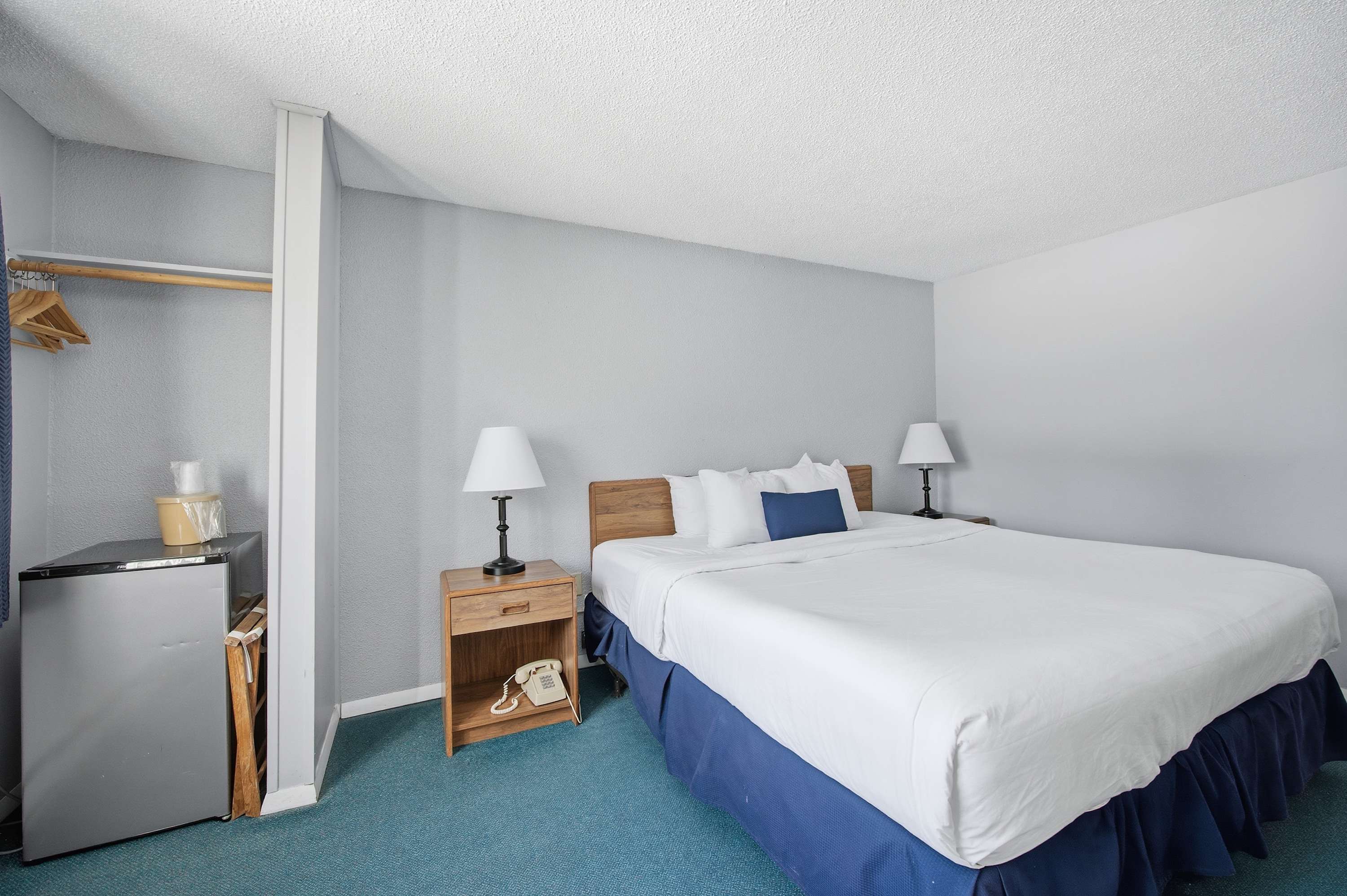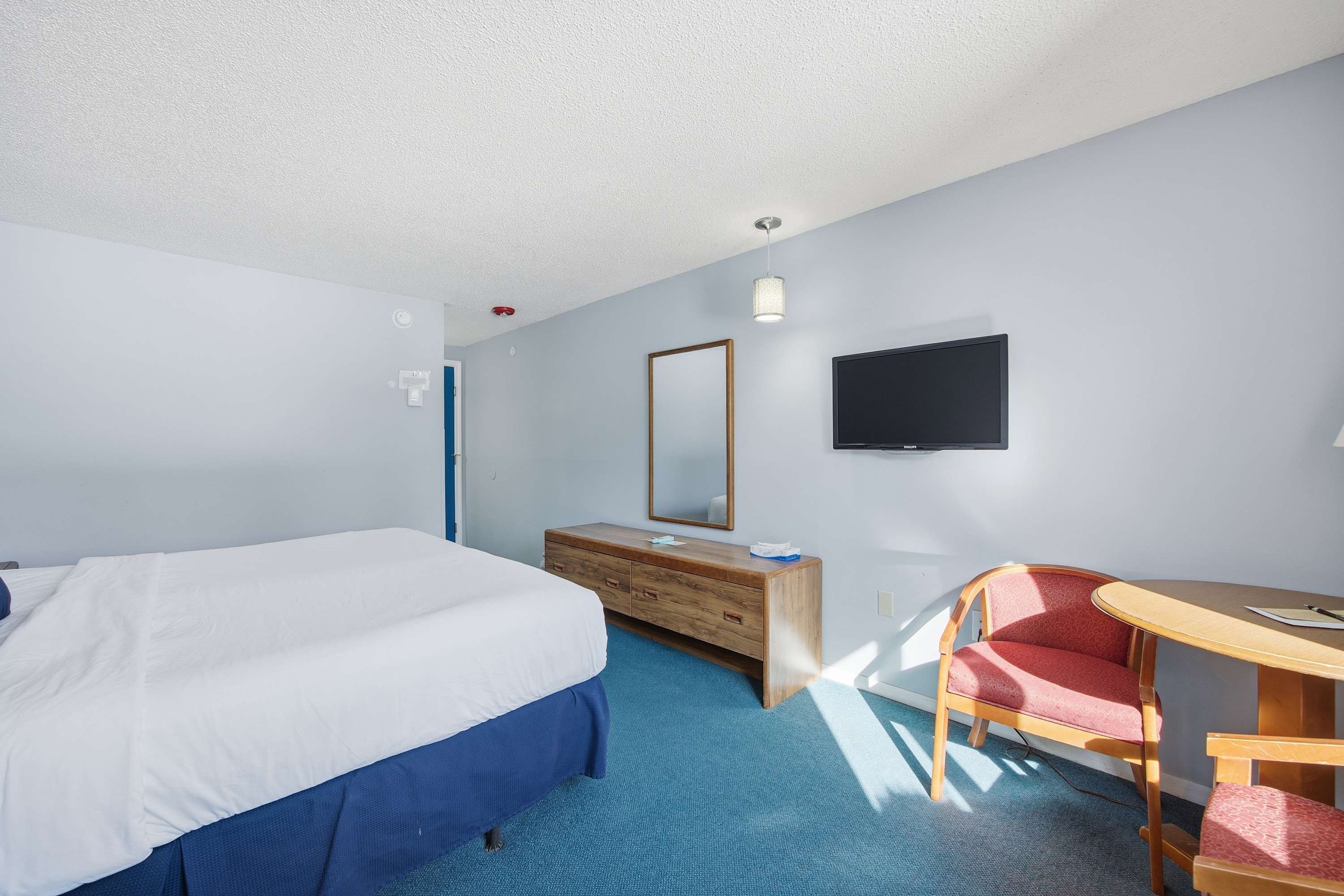 Inside, this comfortable hotel-style space is designed for easy, relaxed stays. A cable TV provides entertainment after a day of exploring, while a small bistro table offers a convenient spot for morning coffee or mapping out your plans. The mini-fridge and microwave make it simple to store snacks or prepare light meals, ideal for short visits or guests who prefer dining out. The full bath features a practical layout with a hallway vanity and sink area, allowing for added convenience while keeping the bathroom space private. Clean, efficient, and welcoming, this studio offers a restful place to recharge between adventures.