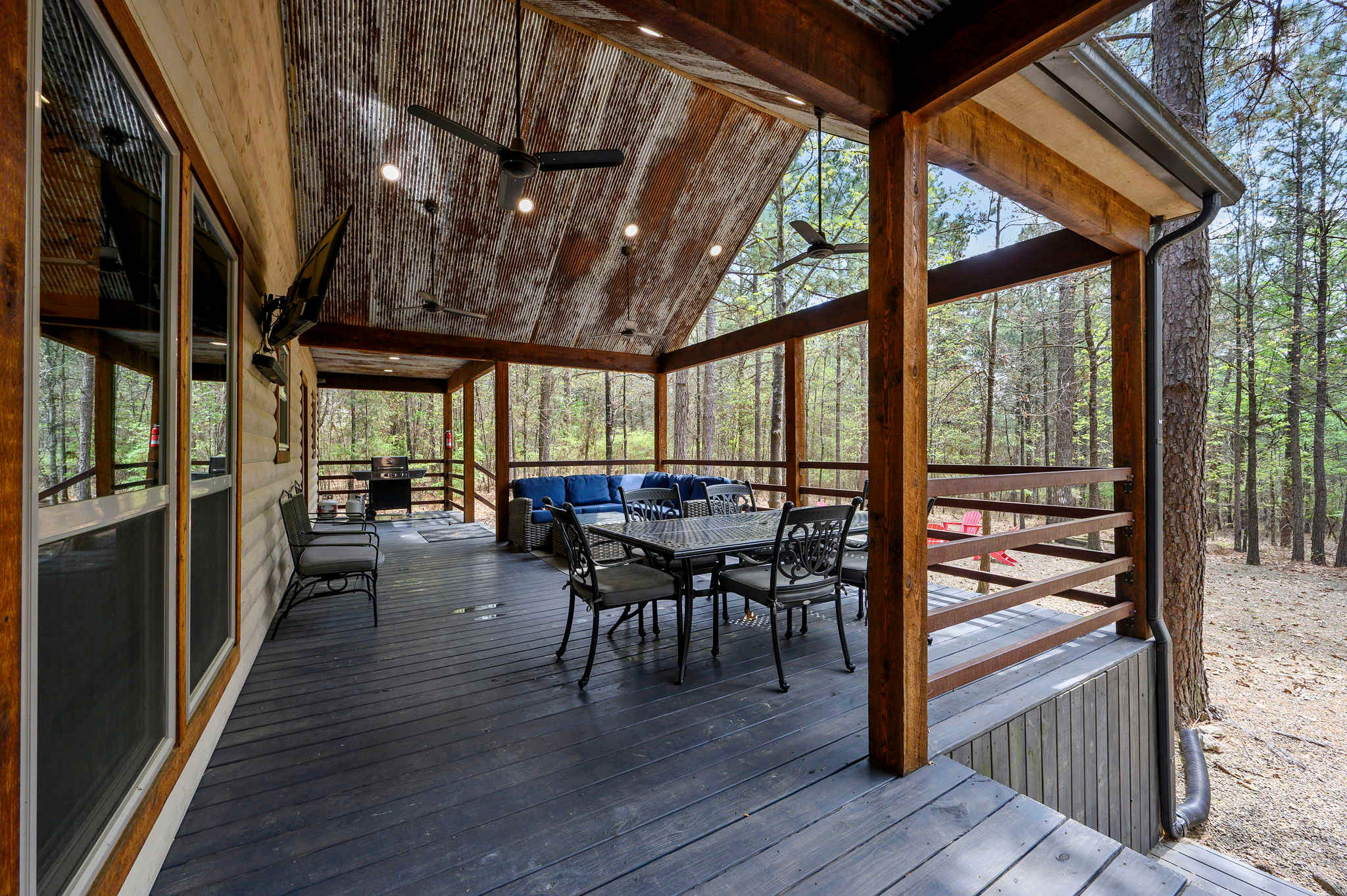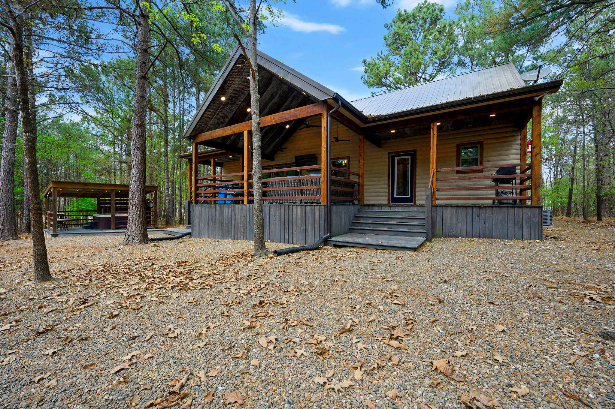 The outdoor spaces shine with a covered deck featuring a grill, plenty of seating, and a table for al fresco meals, while the spacious yard invites evenings in the hot tub or gathering around the fire pit under the stars. With its spacious layout, forest-backed setting, and inviting indoor-outdoor living, Drift Inn delivers a memorable Broken Bow getaway designed for relaxation and fun.
