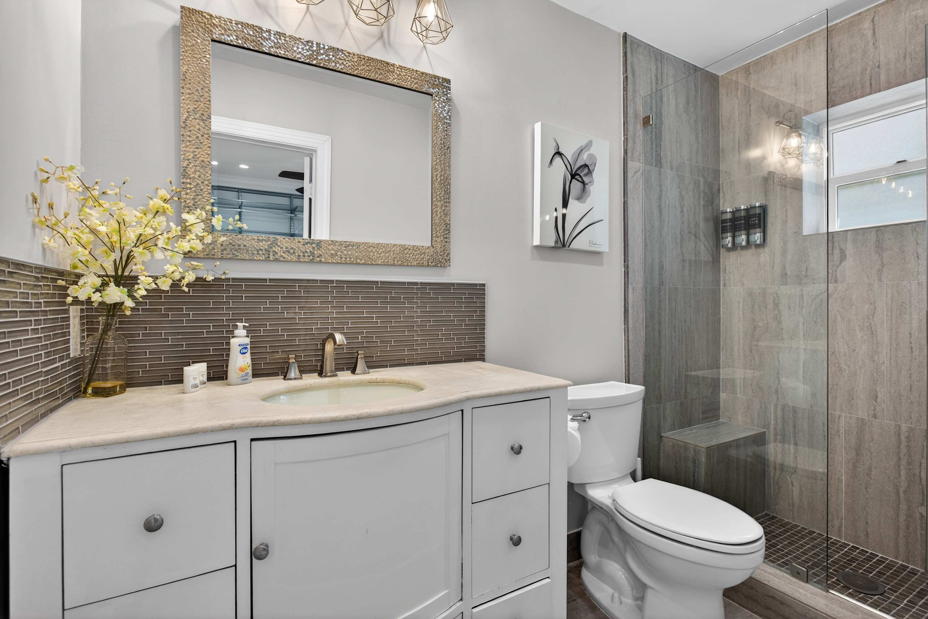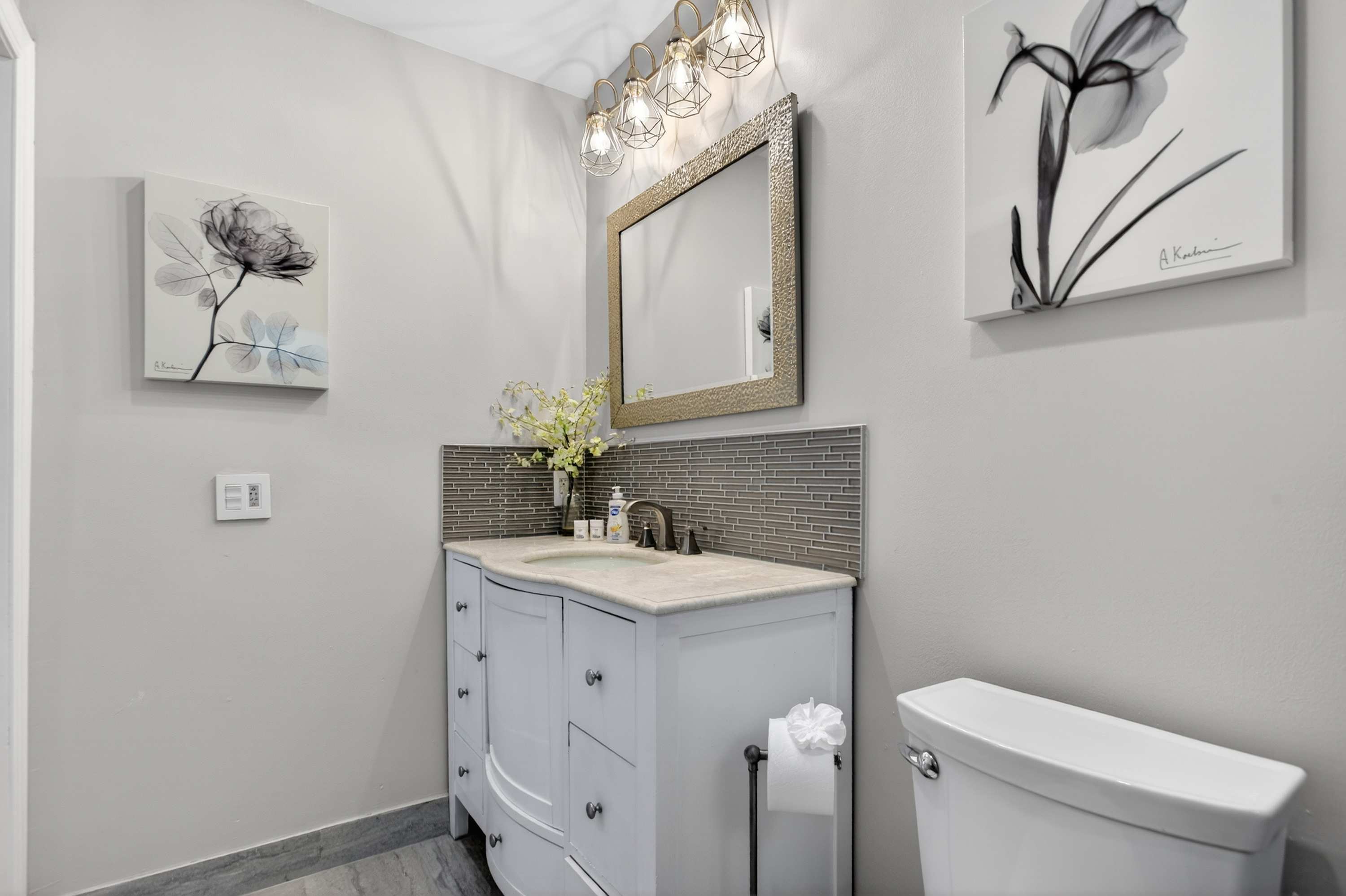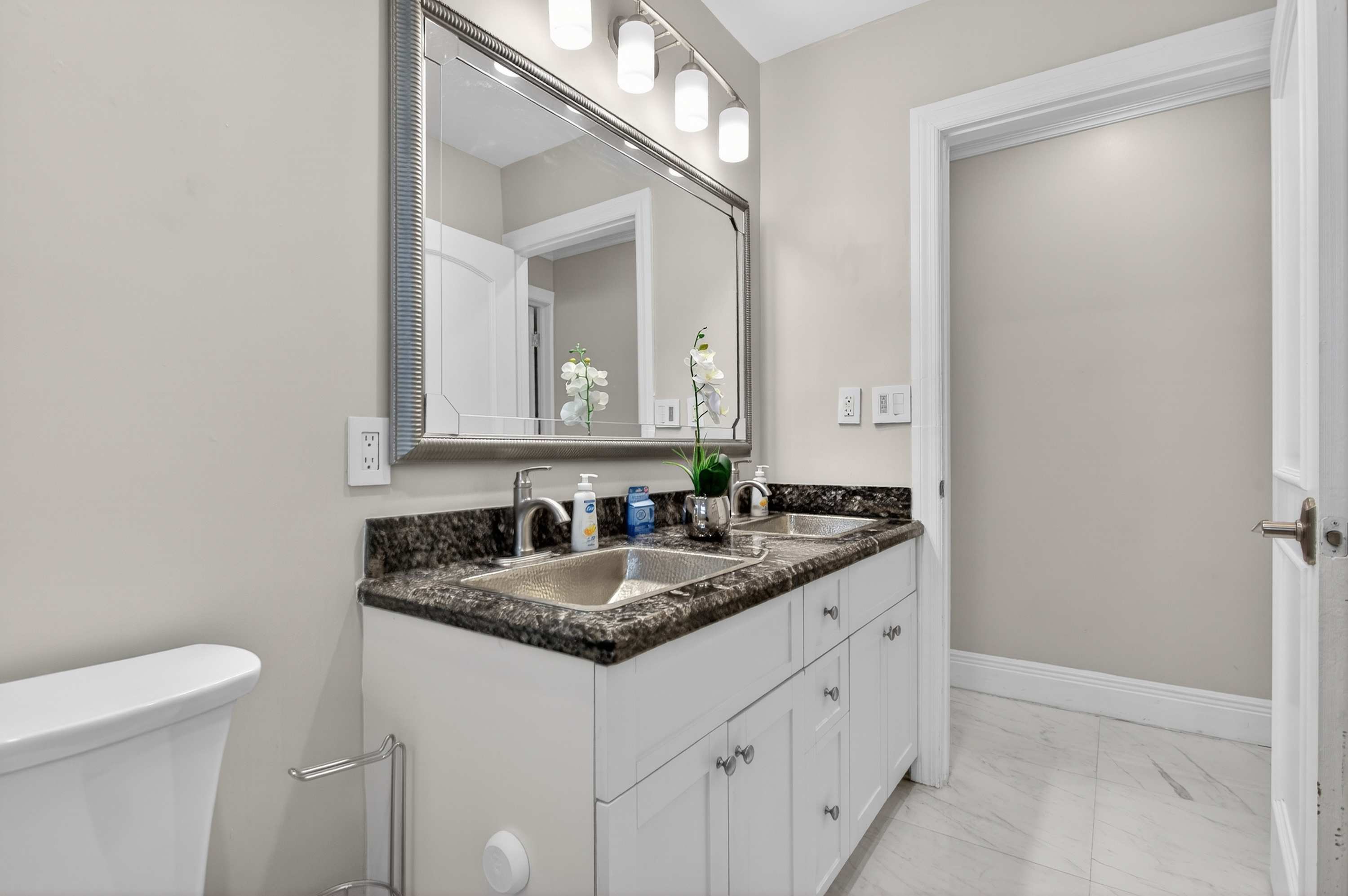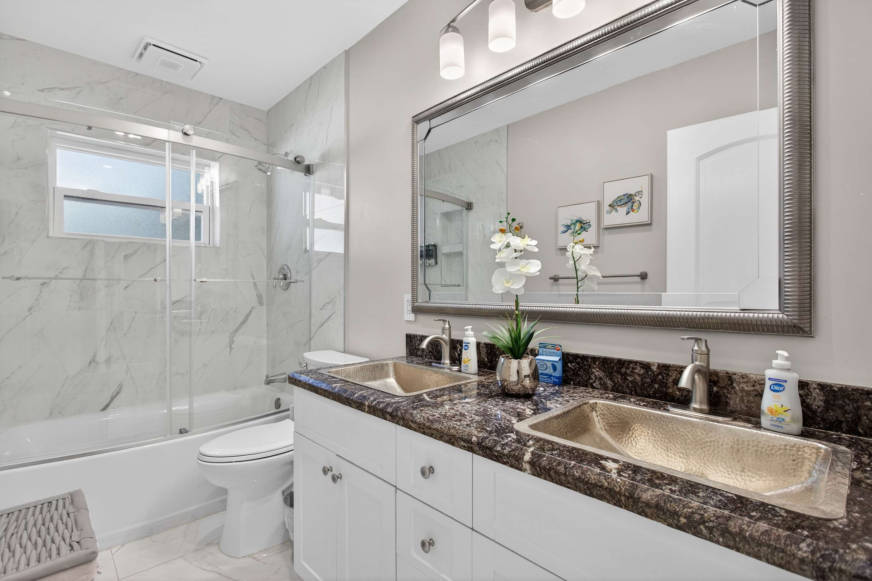 This home also includes an additional full guest bathroom with a dual vanity and a shower/tub combo.