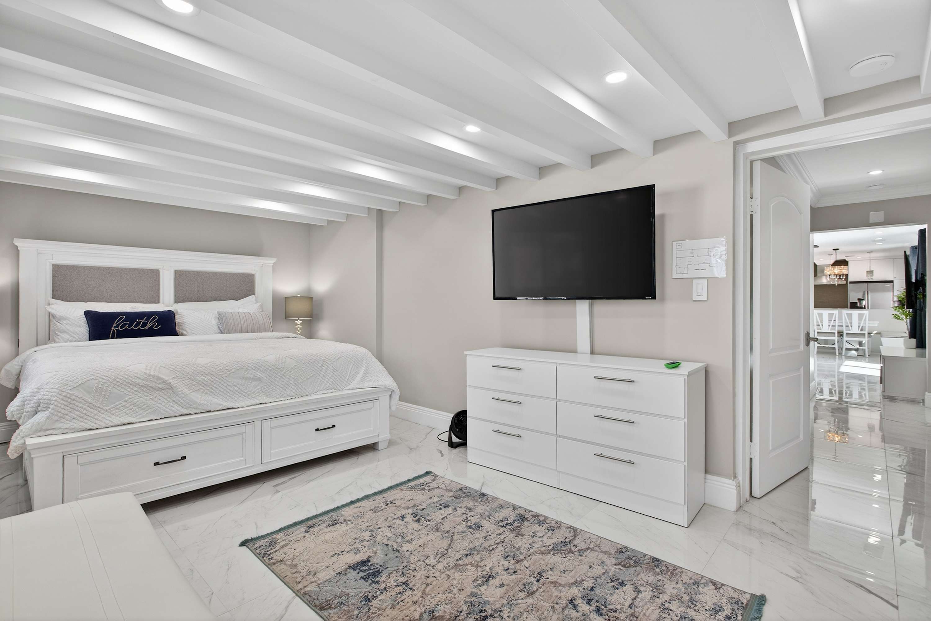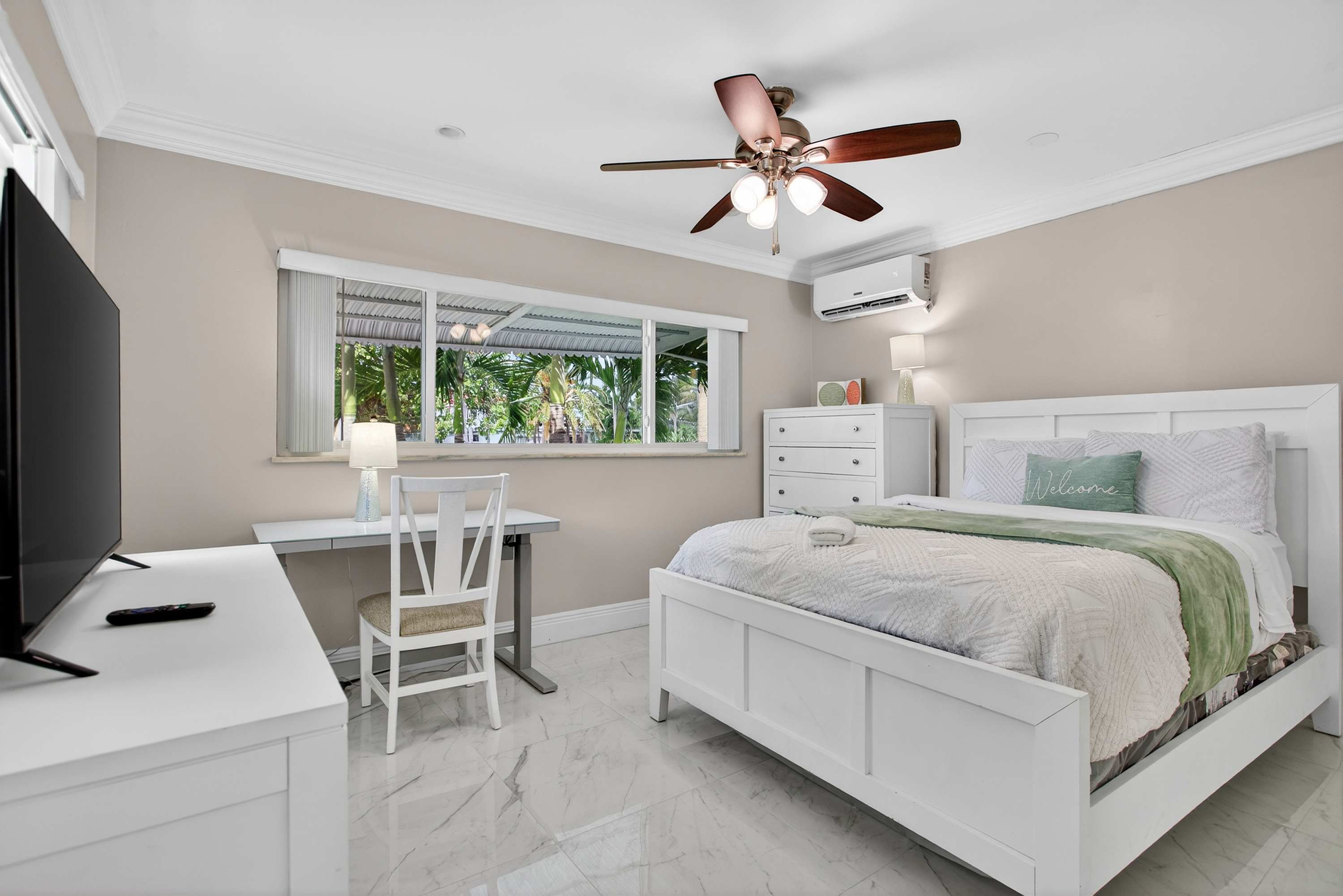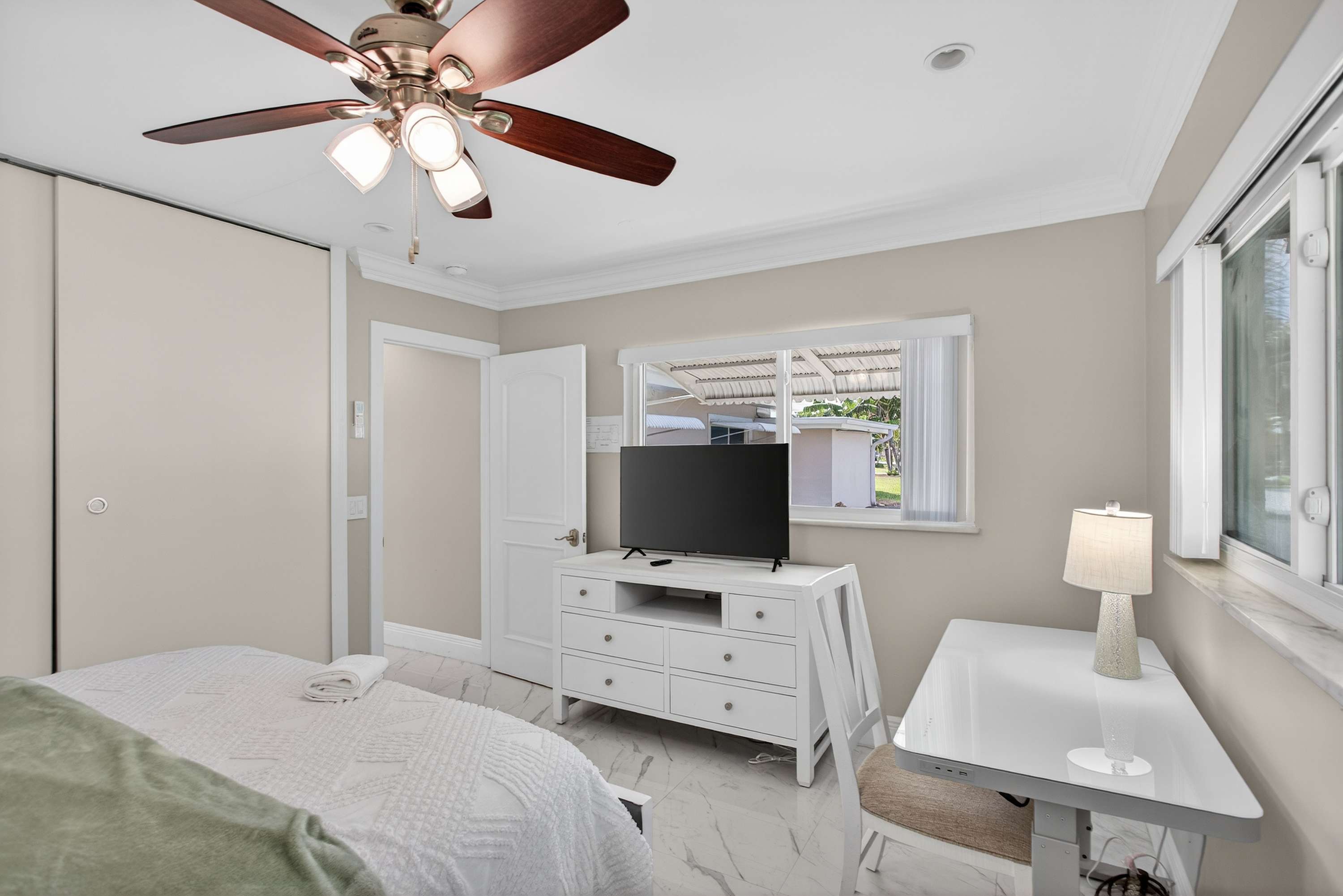 Bedroom #2 includes a queen size bed and a smart TV.