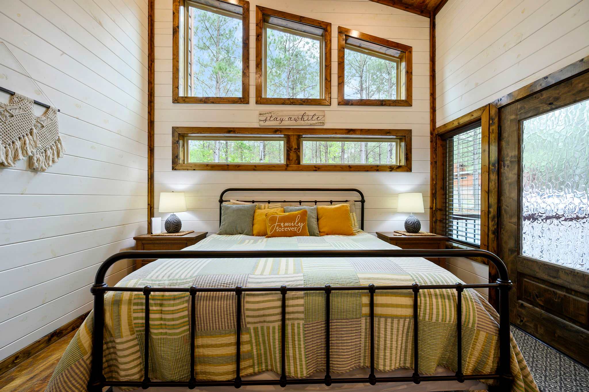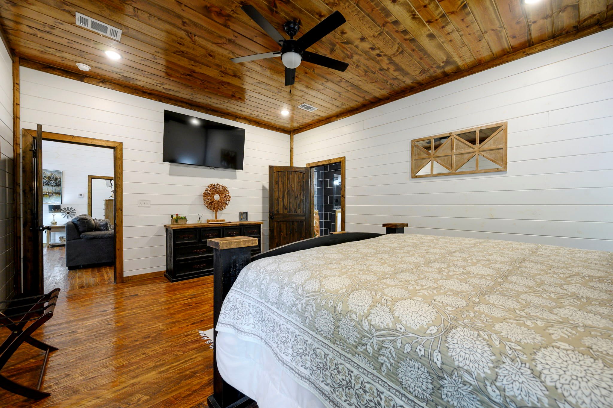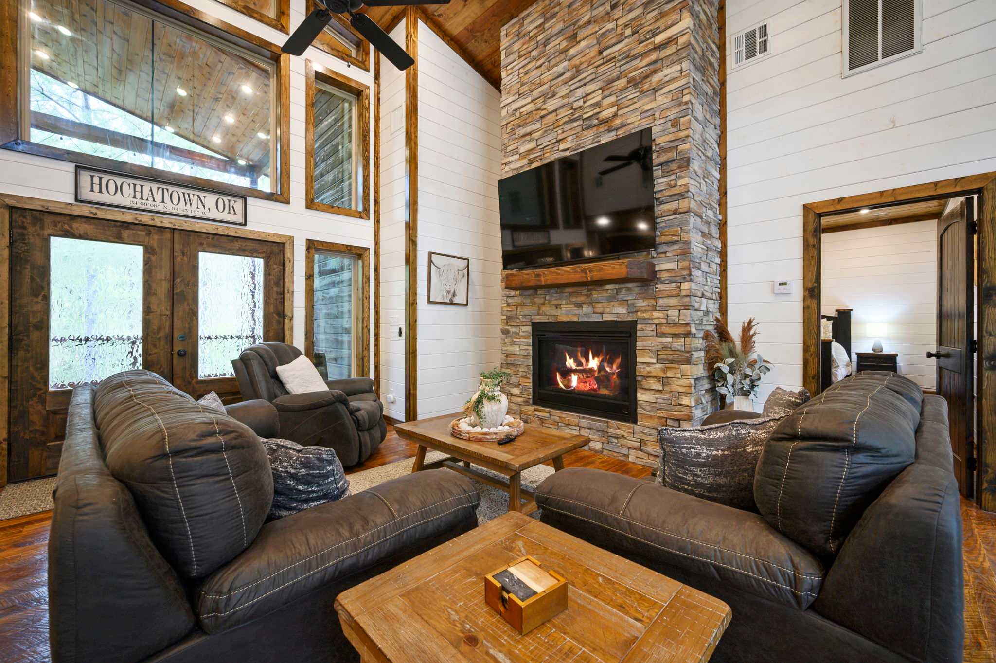 Tucked in a quiet wooded area slightly north of Hochatown, The Retreat at Red Fern offers a peaceful Broken Bow escape while still being close to Beavers Bend State Park, Broken Bow Lake, local wineries, restaurants, and outdoor adventures. Surrounded by trees, this farmhouse-style cabin delivers the perfect balance of seclusion and convenience, making it easy to spend your days hiking, boating, and exploring before returning to your own private retreat in the woods.