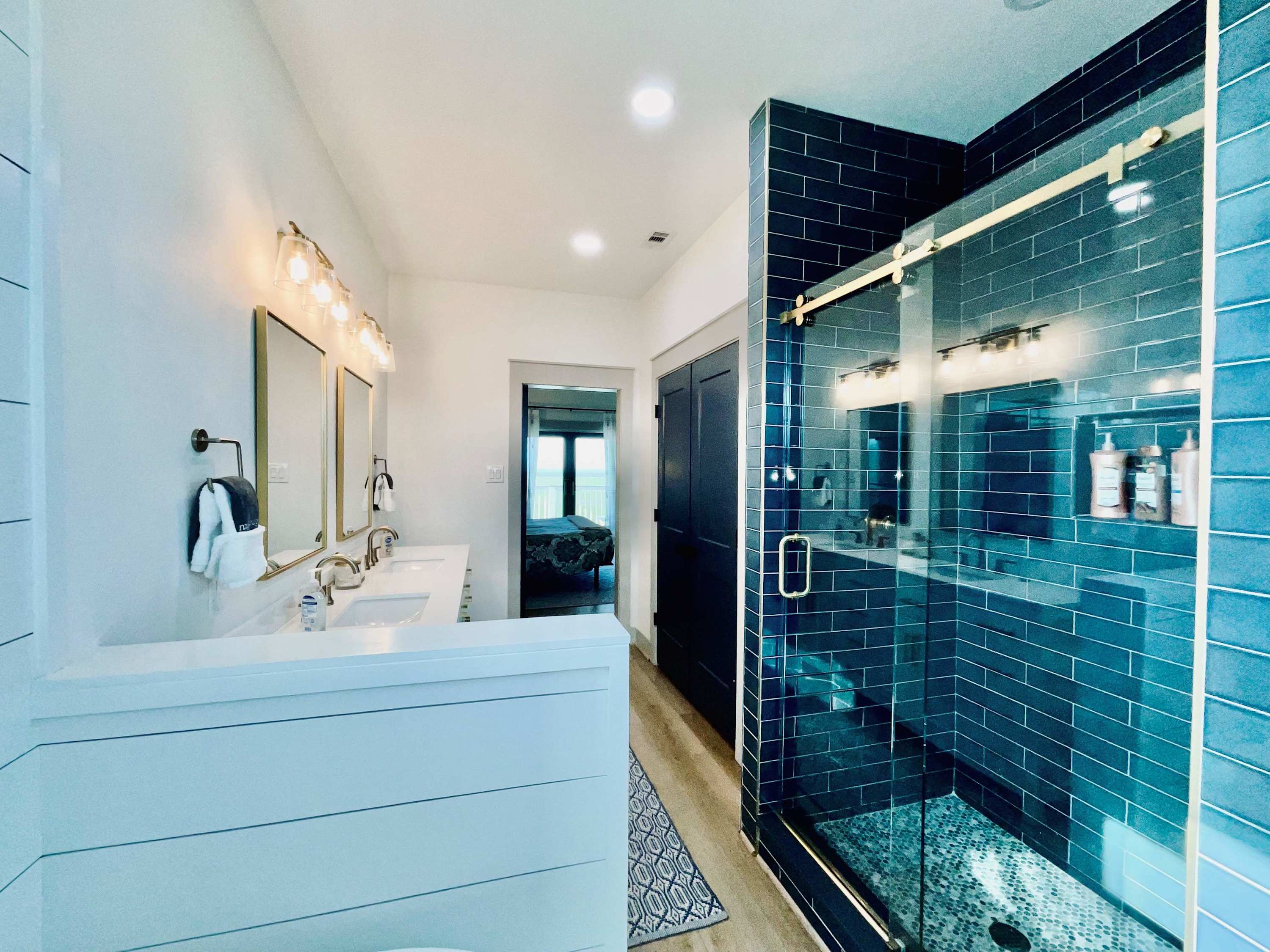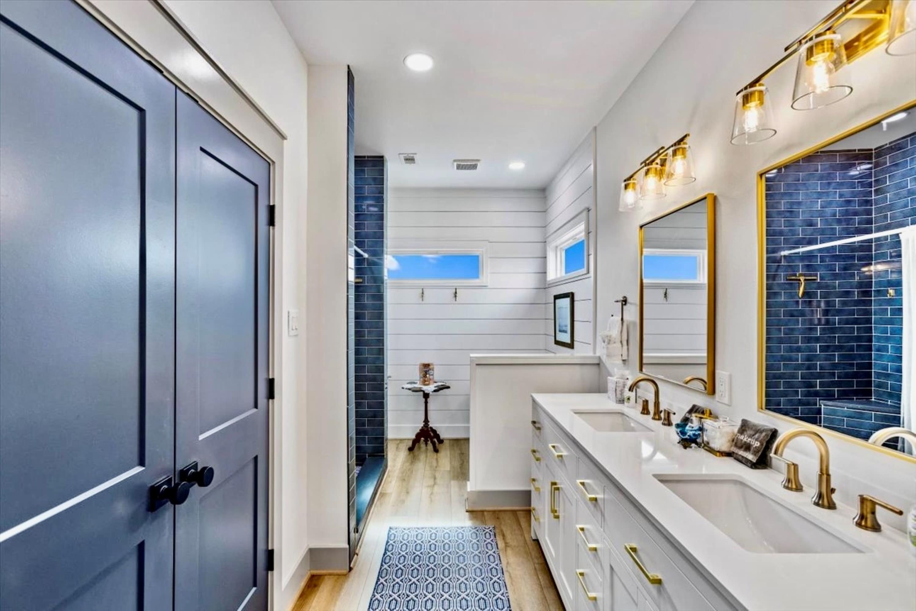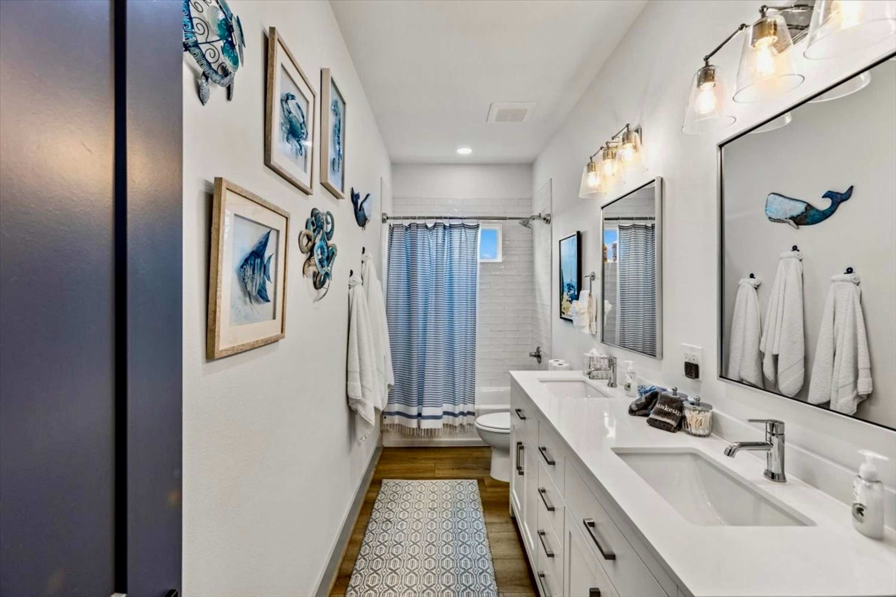 This home also includes a full guest bathroom with a dual vanity and a shower/tub combo.
