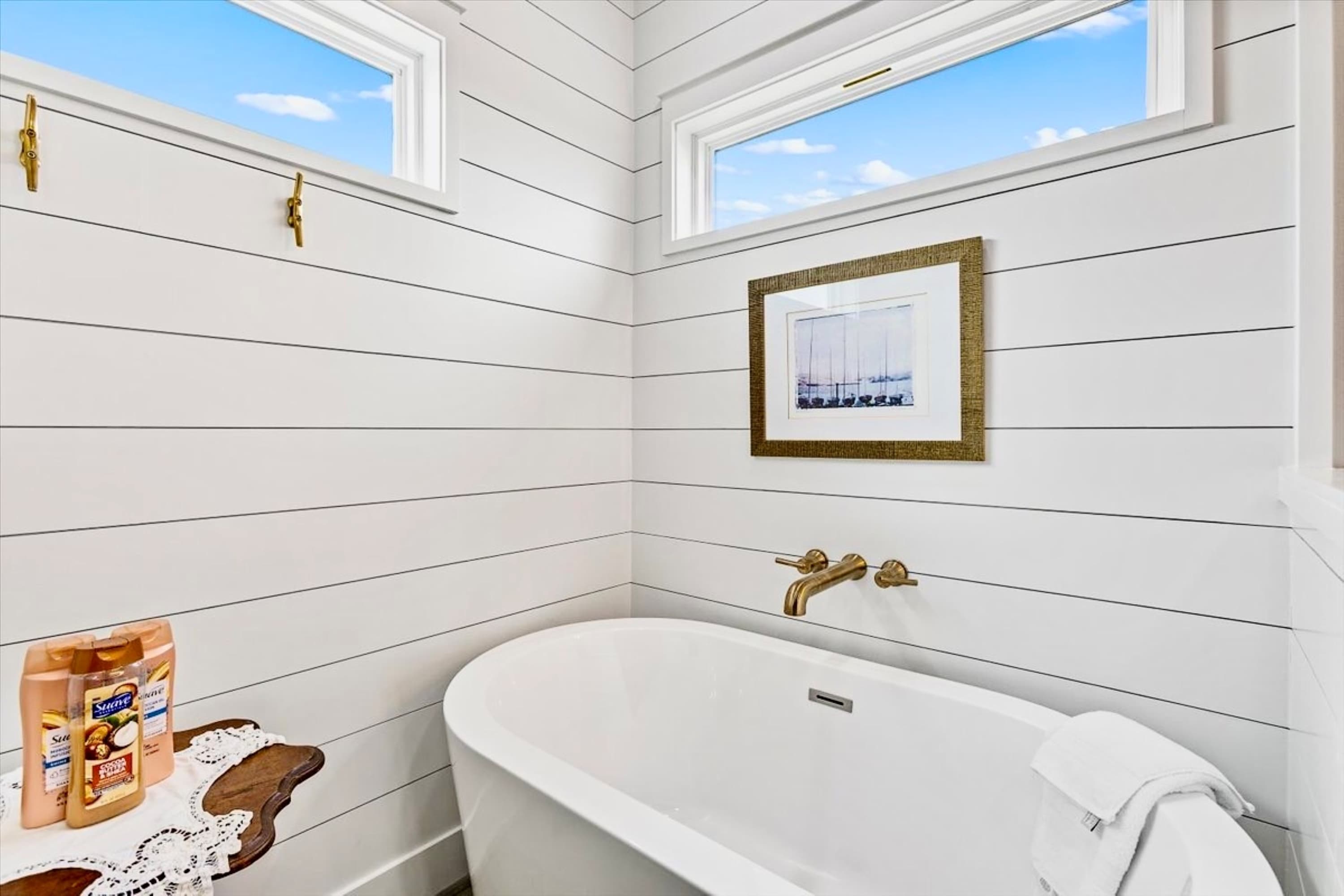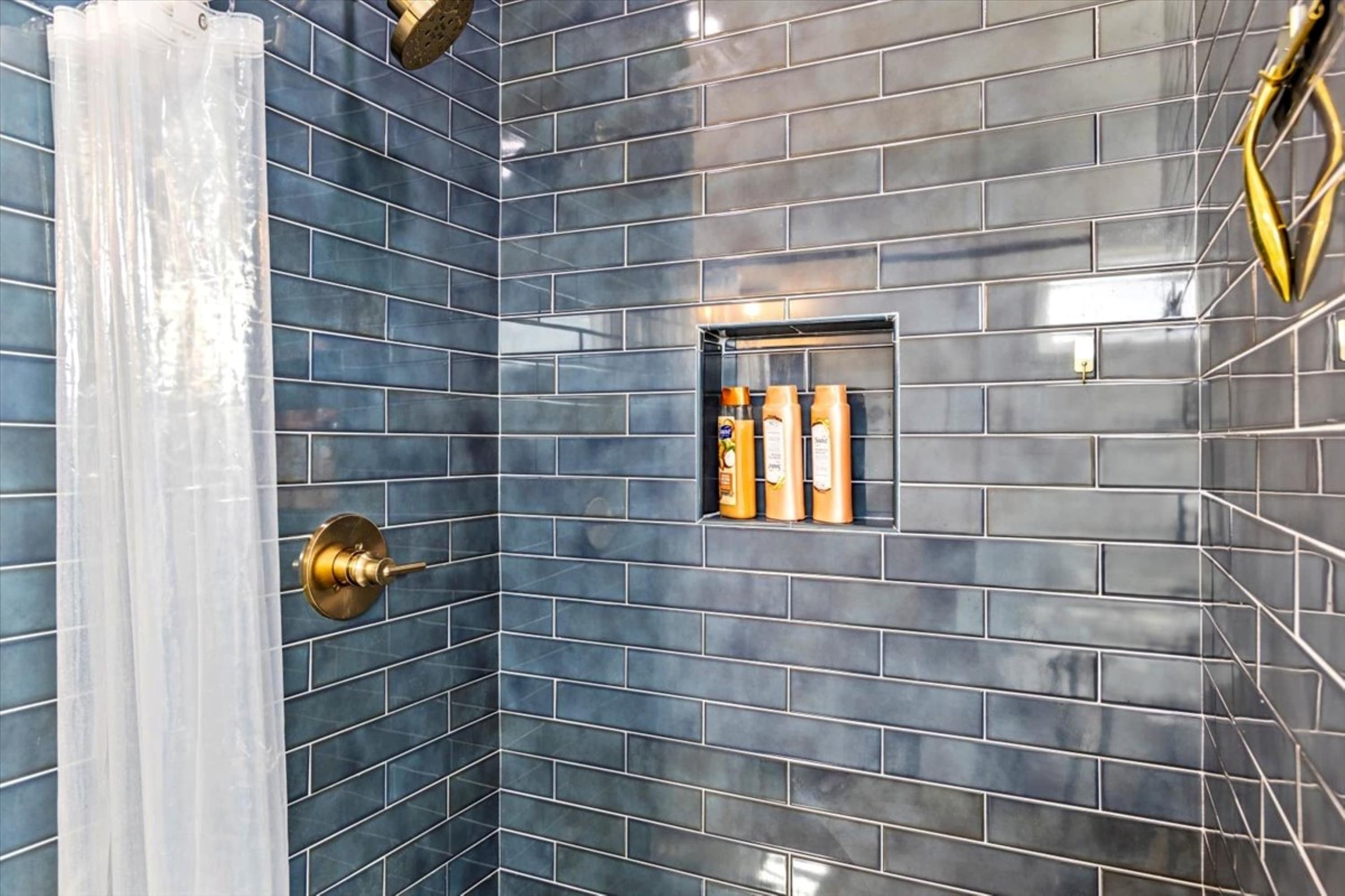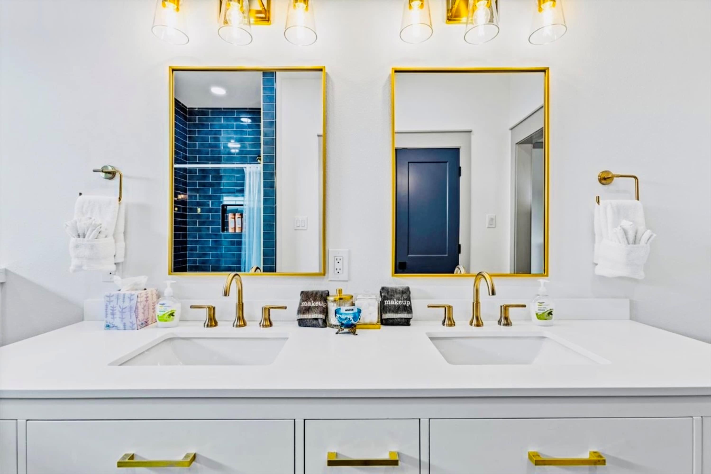 This home also includes a full guest bathroom with a dual vanity and a shower/tub combo.
